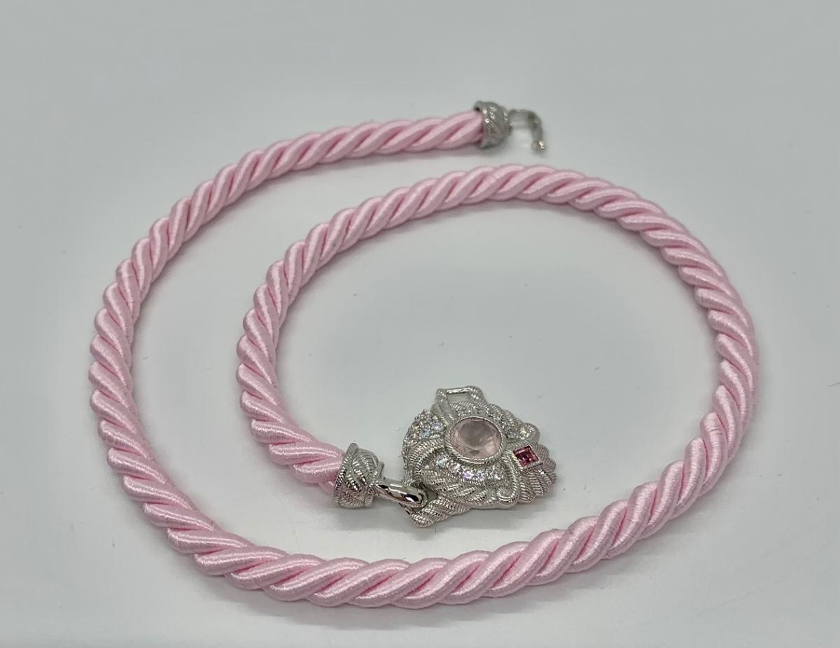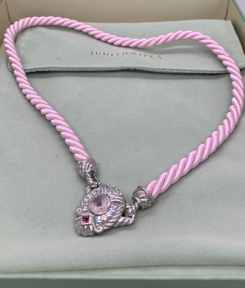 LOTJ136: New in box Judith Ripka Sterling Silver Rose Quartz Gemstone Necklace 18"