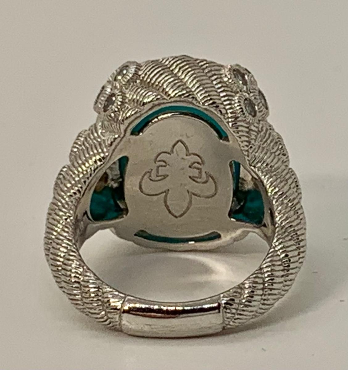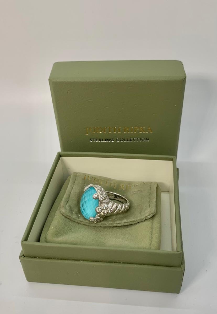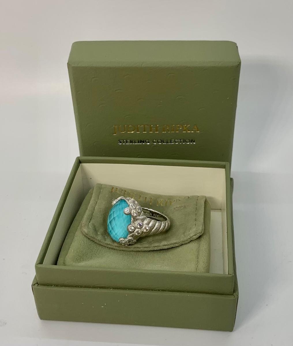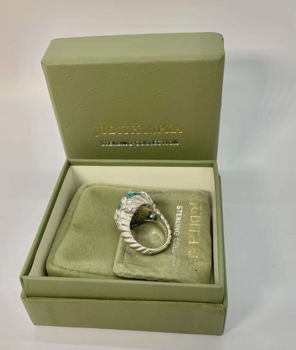 LOTJ143: New in box Judith Ripka Sterling Diamonique Doublet Turquoise Oval Ring size 5 1/2