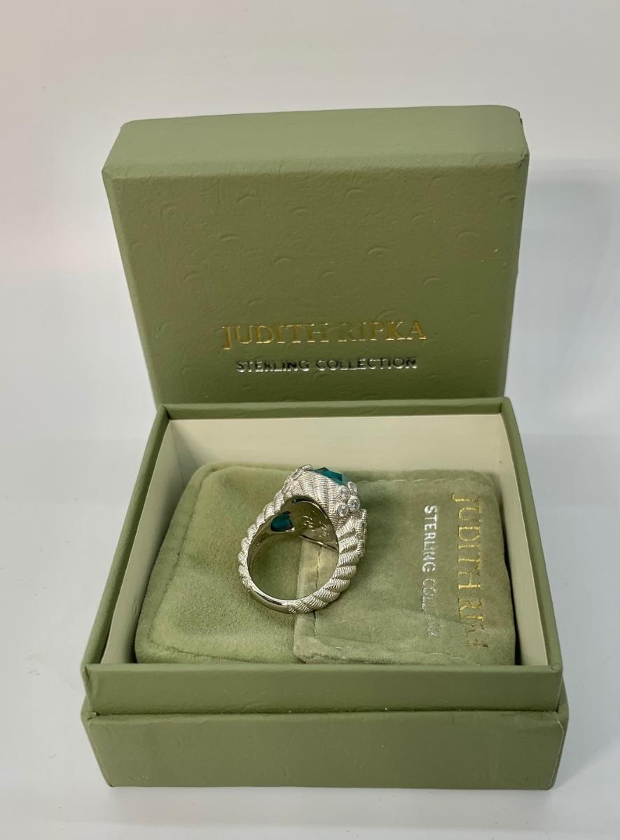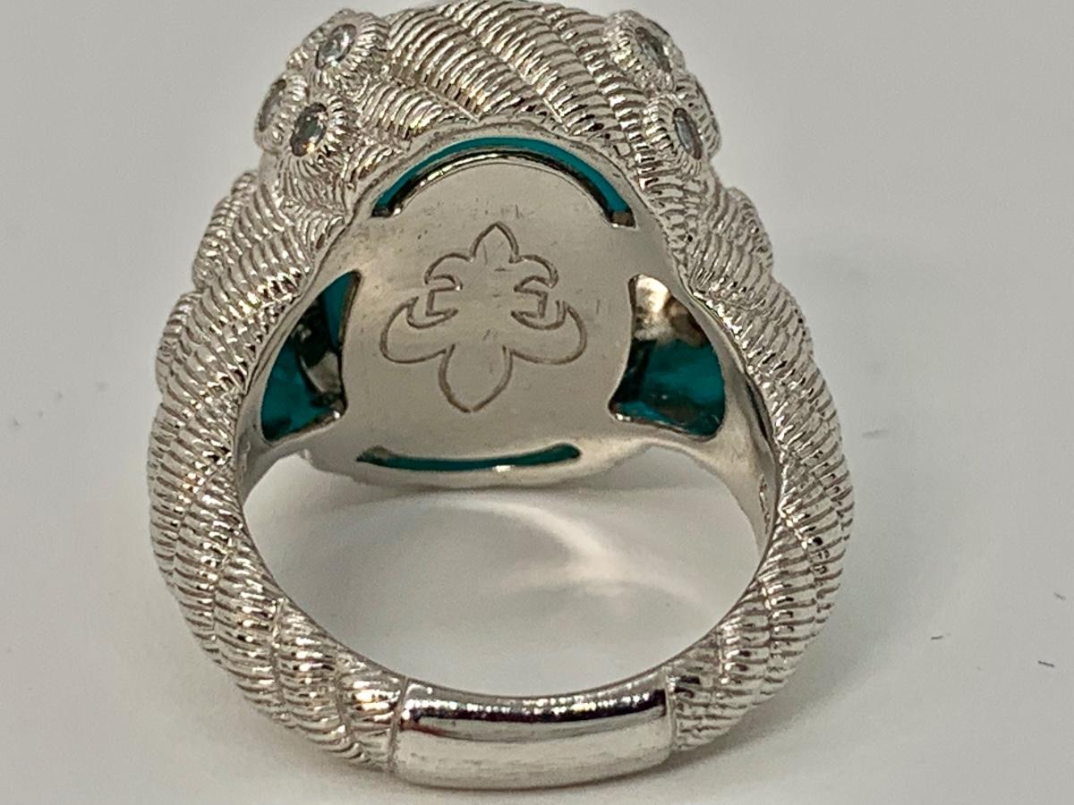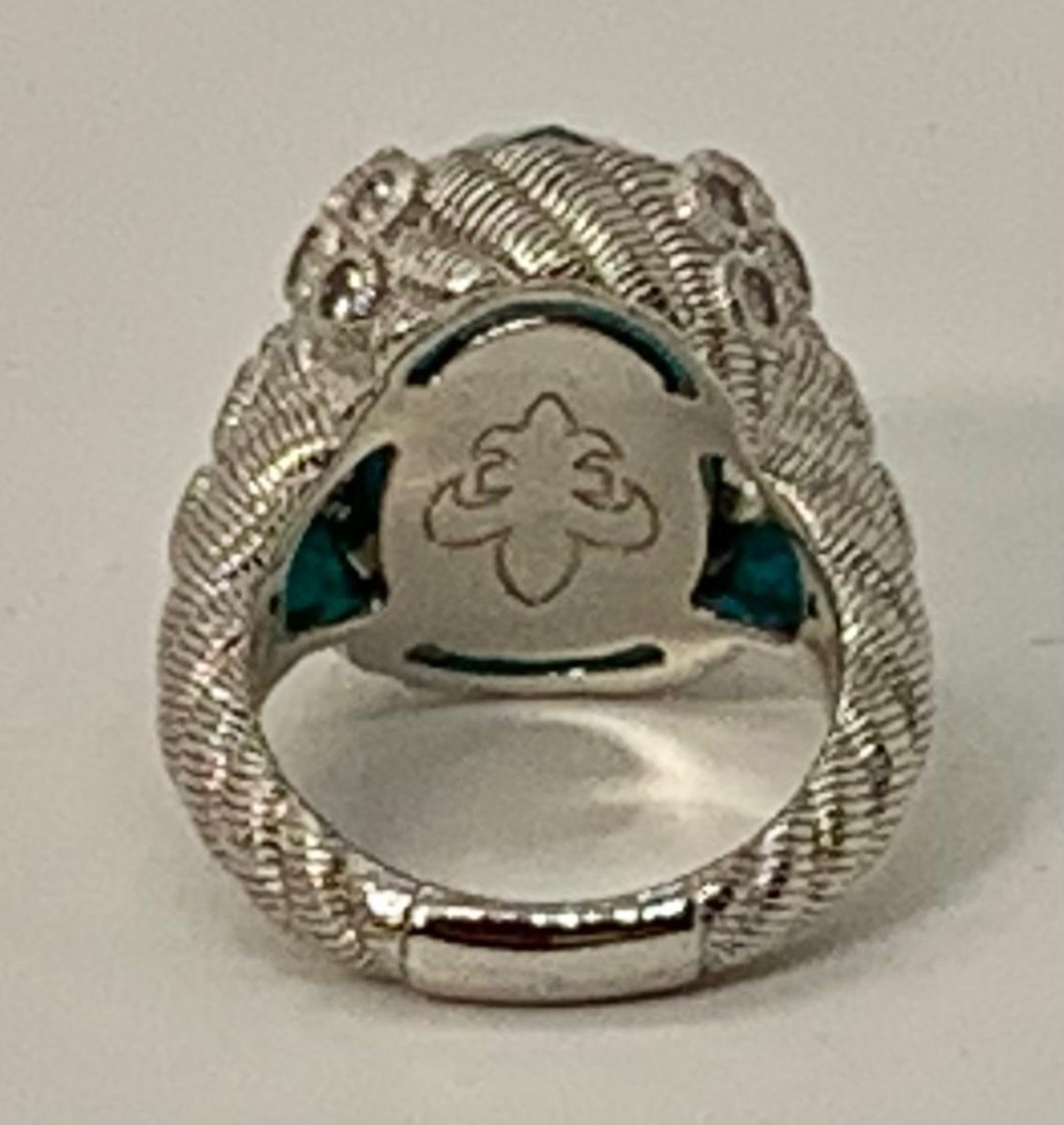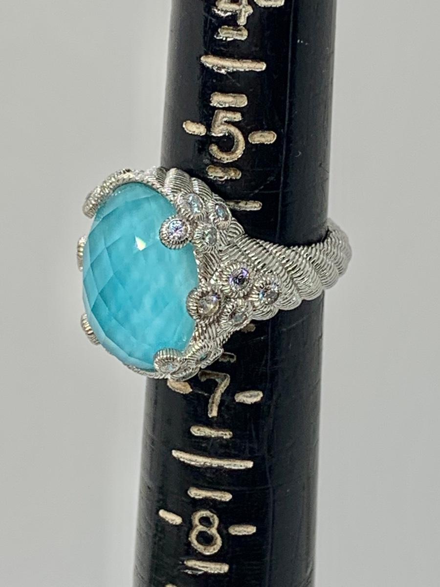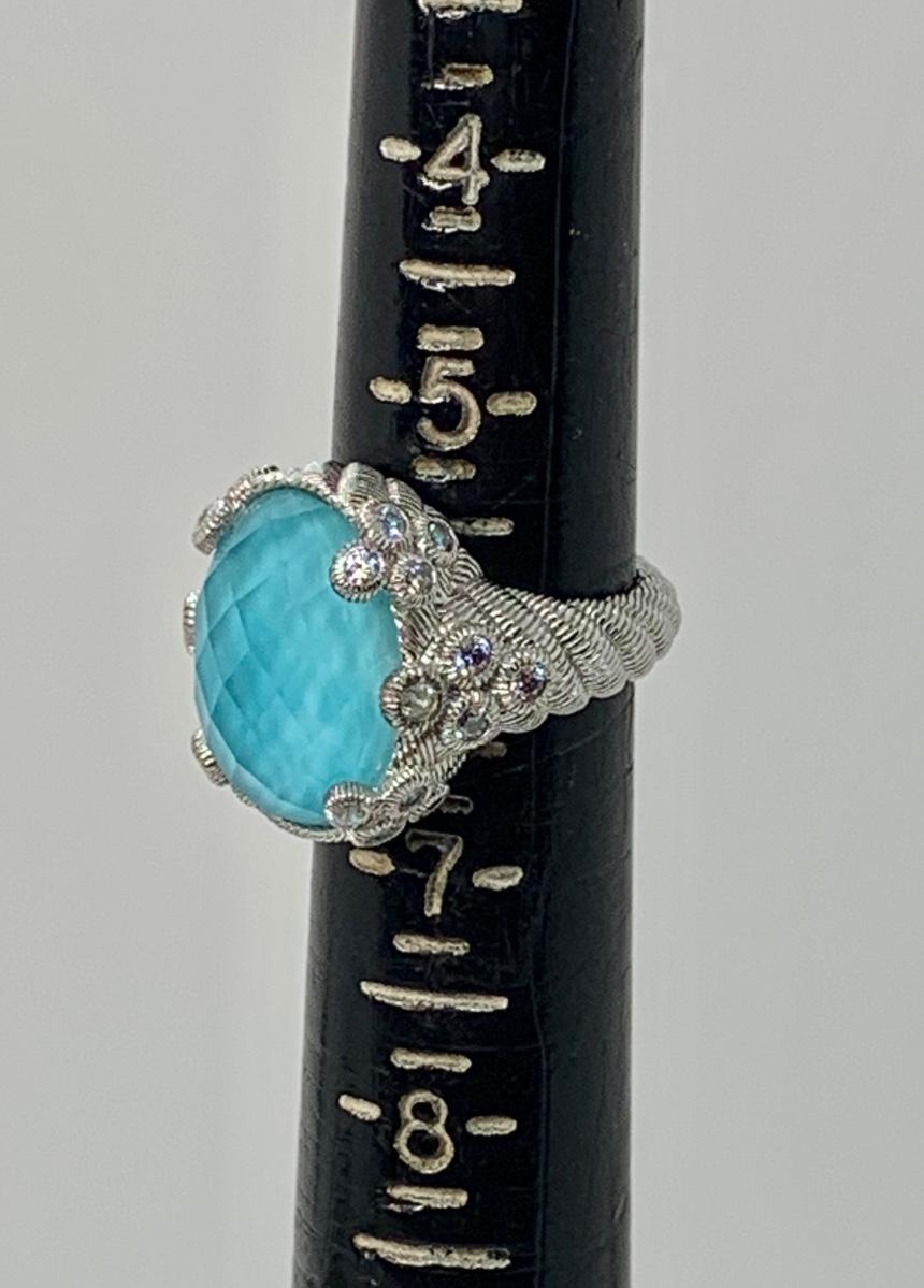 LOTJ143: New in box Judith Ripka Sterling Diamonique Doublet Turquoise Oval Ring size 5 1/2
