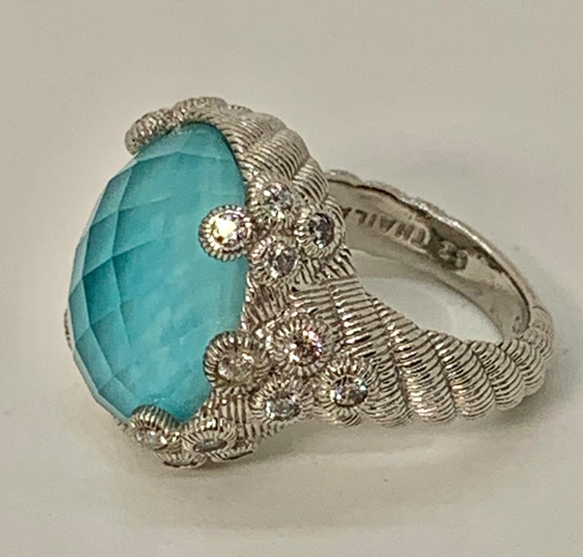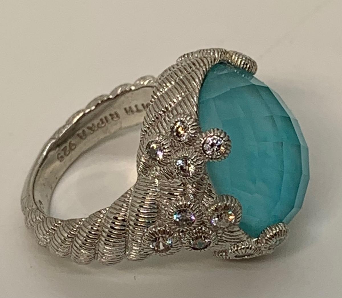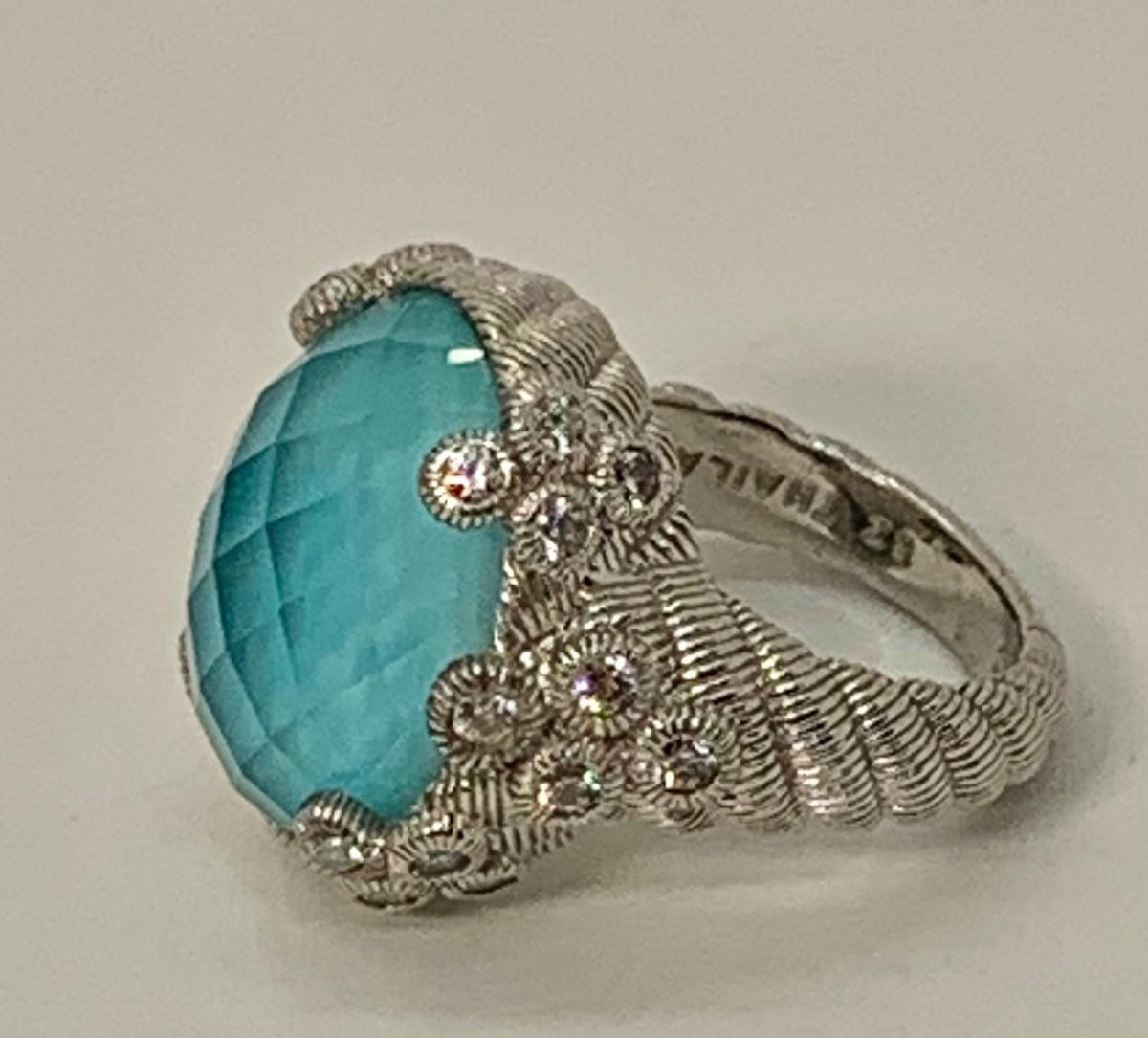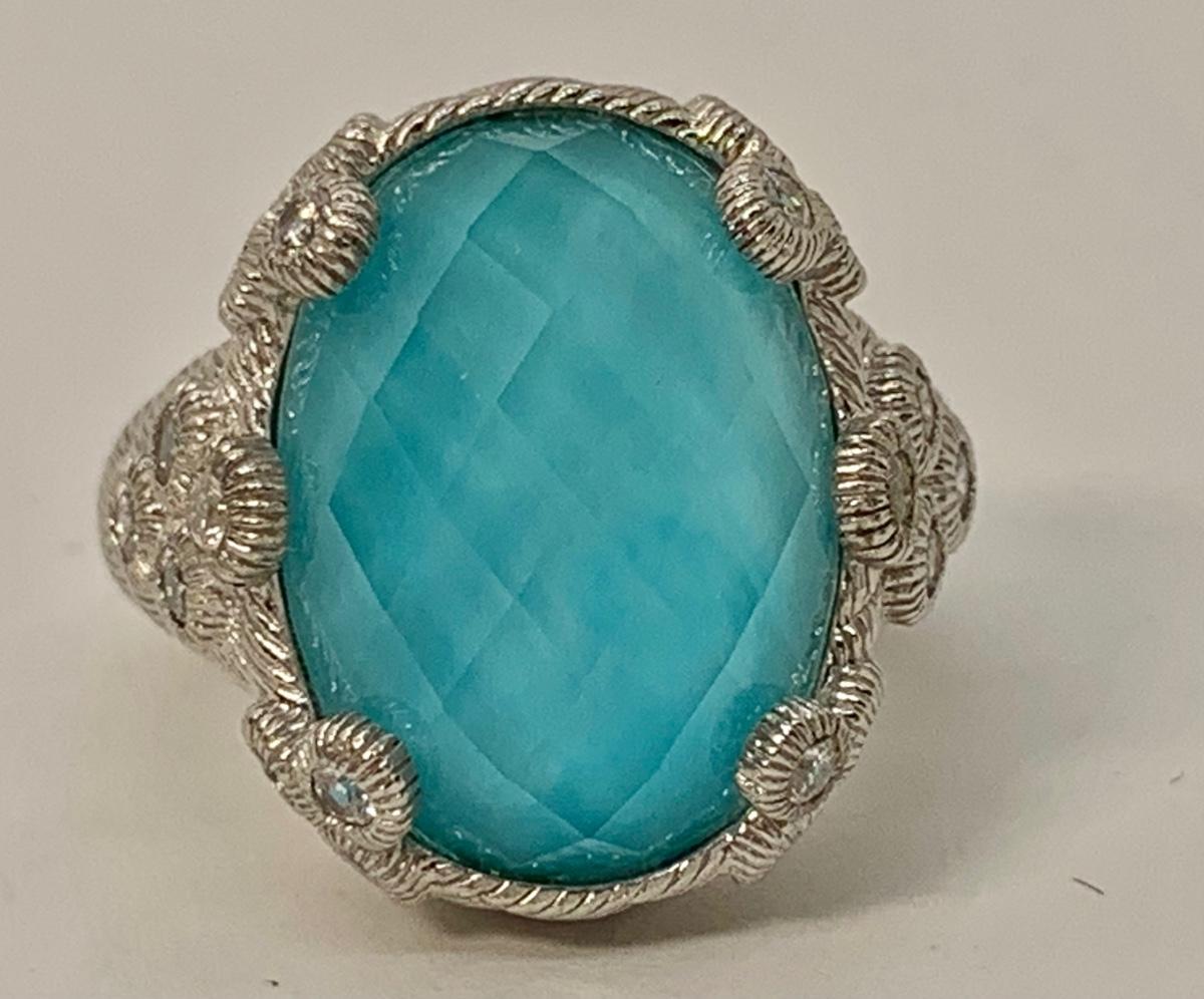 LOTJ143: New in box Judith Ripka Sterling Diamonique Doublet Turquoise Oval Ring size 5 1/2
