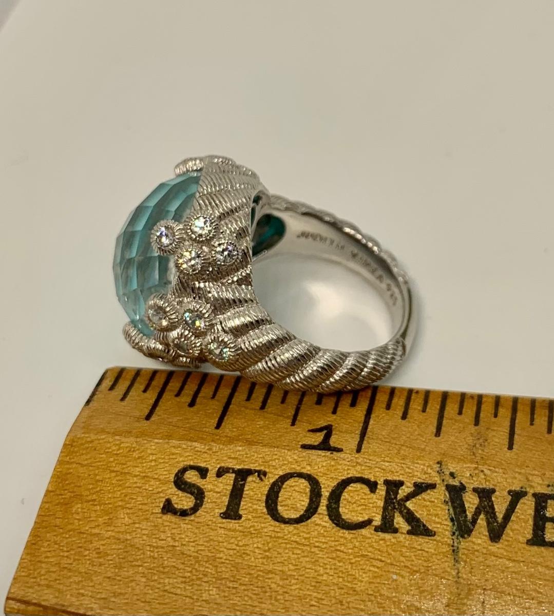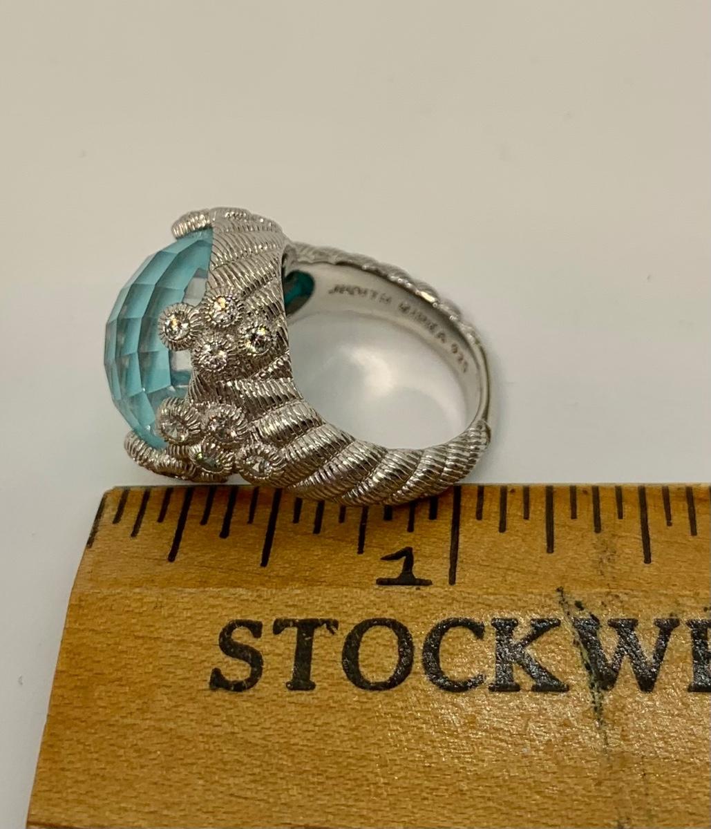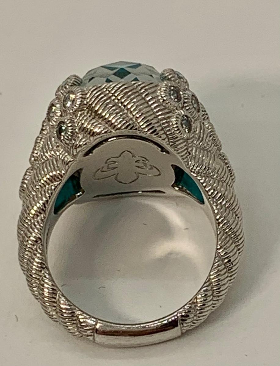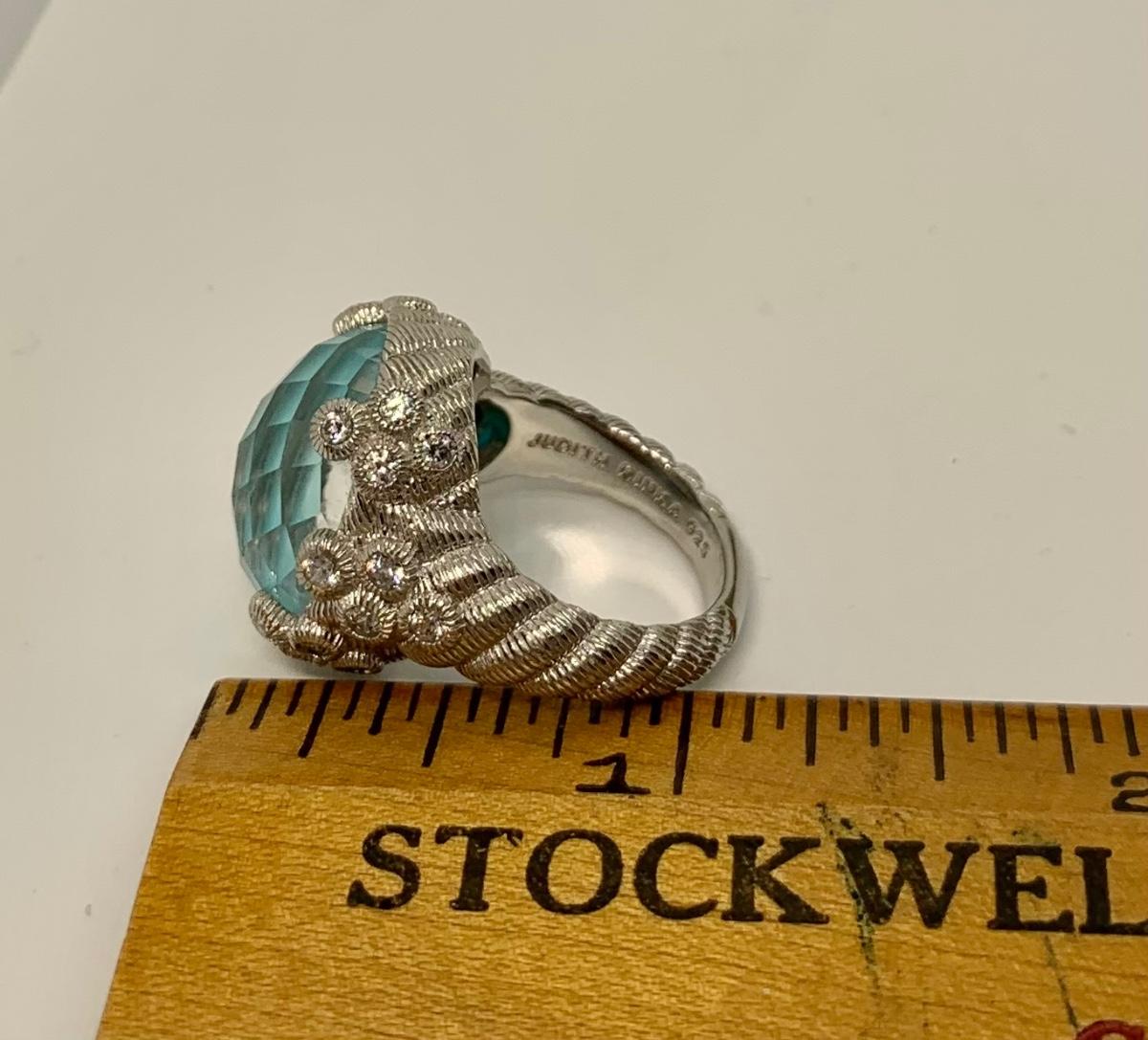 LOTJ143: New in box Judith Ripka Sterling Diamonique Doublet Turquoise Oval Ring size 5 1/2