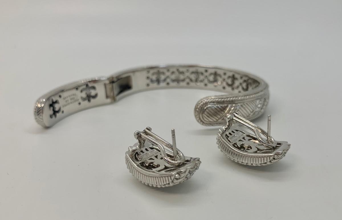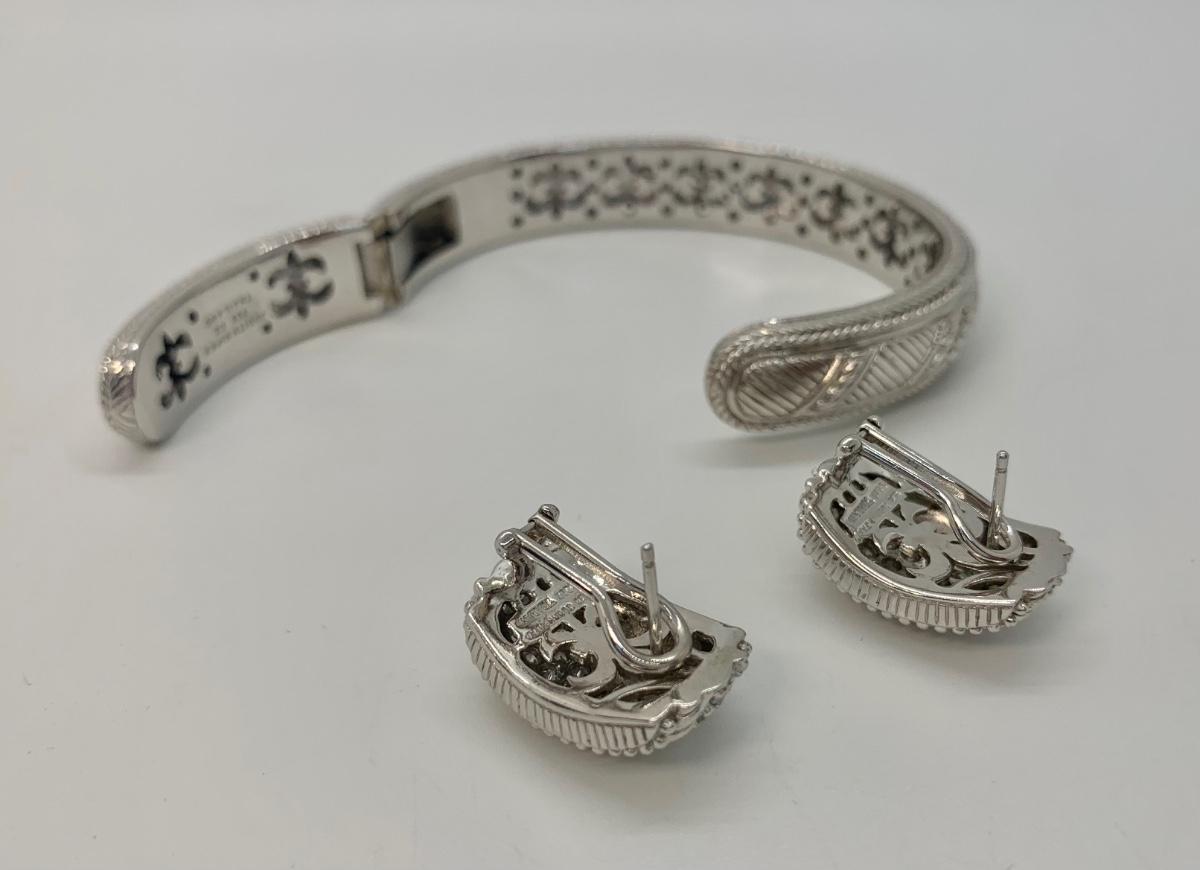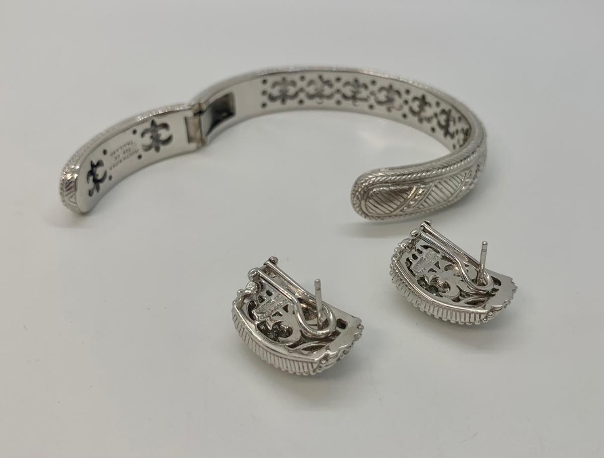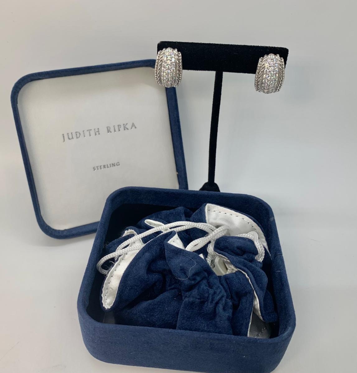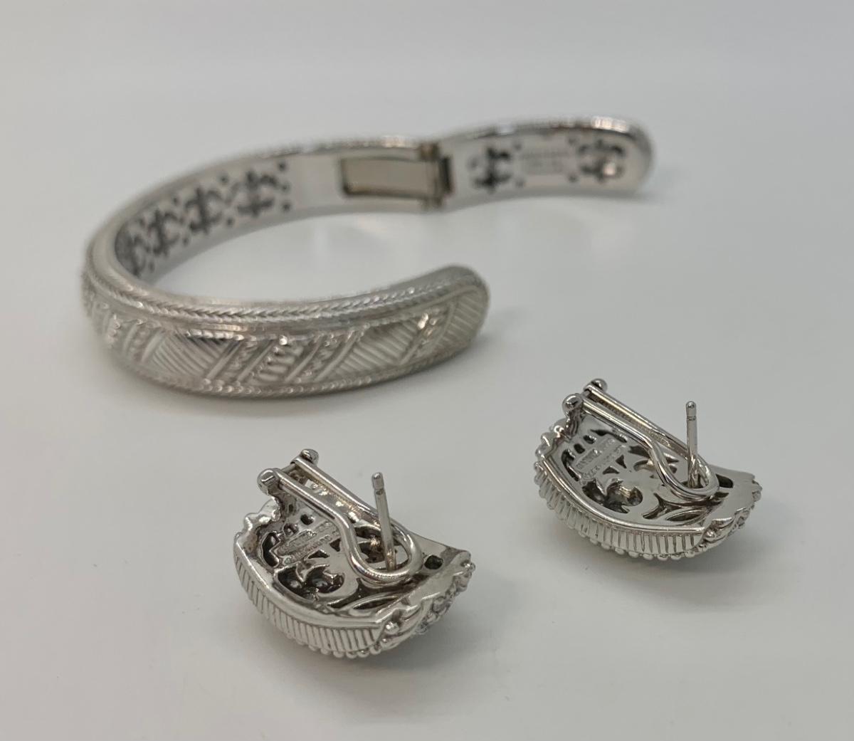 LOTJ144: New in box Judith Ripka and Diamonique Sterling Bangle Bracelet and Pierced Earring