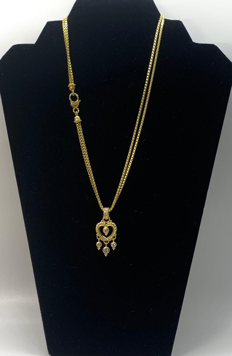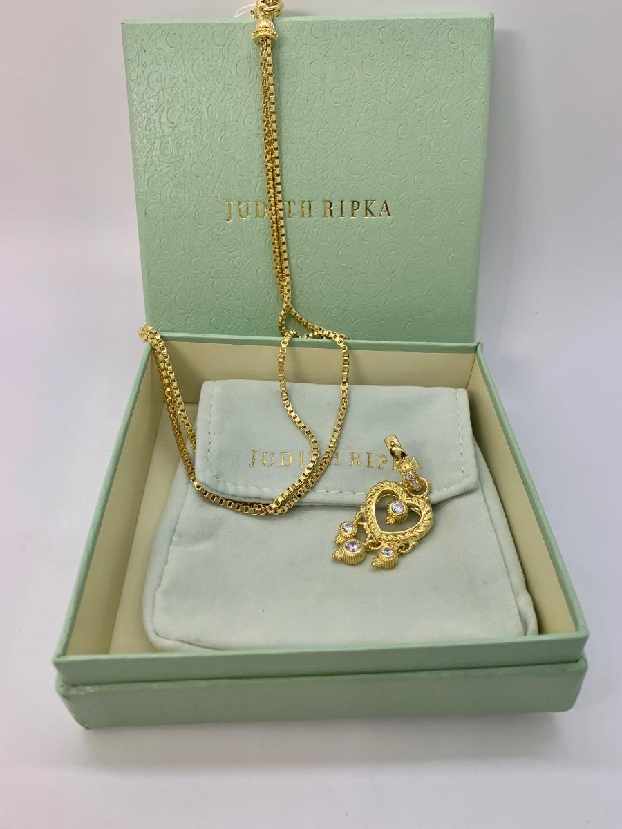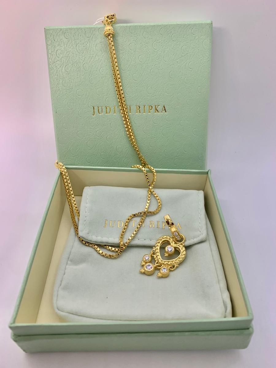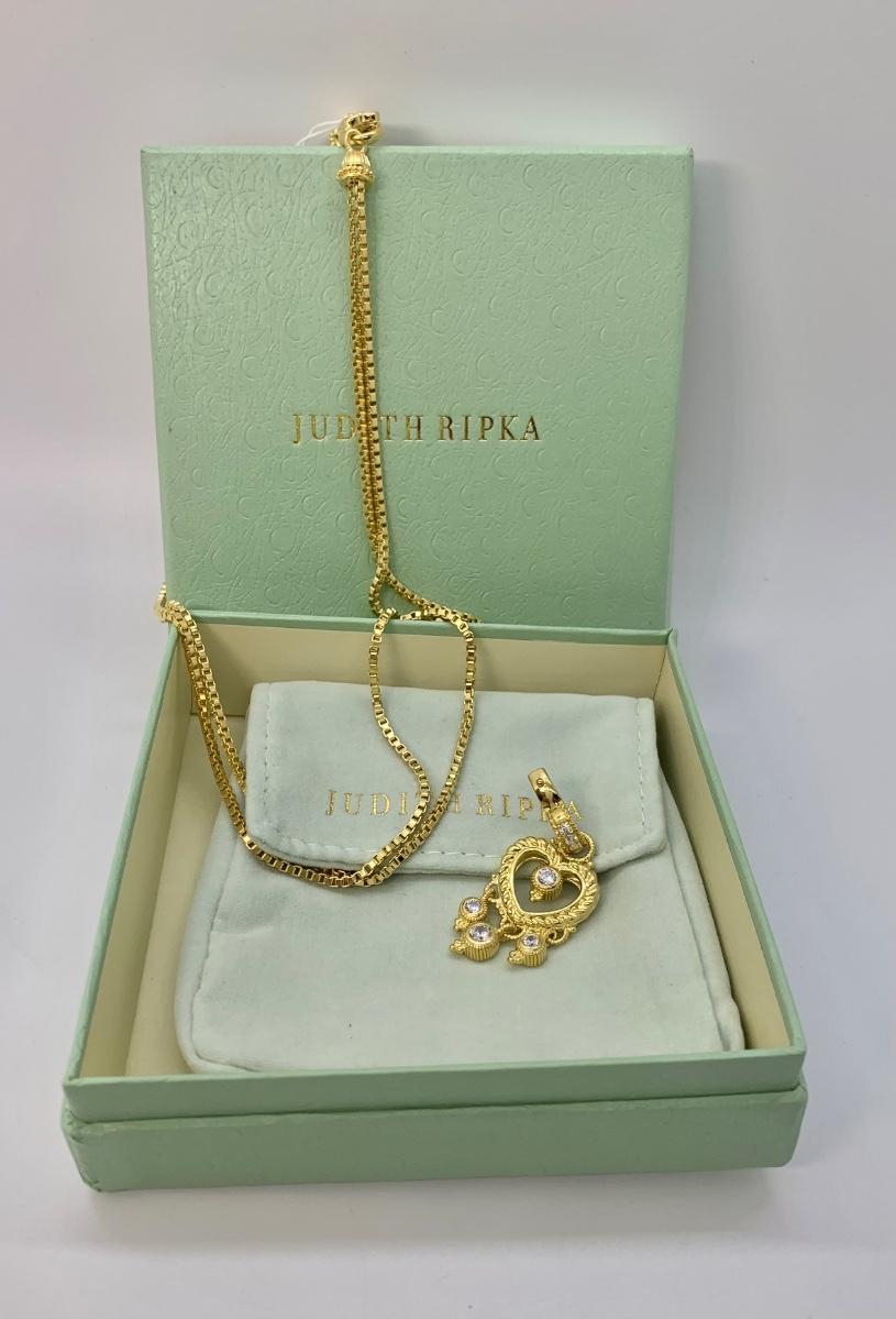 LOTJ146: New in box Judith Ripka Diamonique Gold Vermeil Sterling Silver 44" Double Strand Box Chain and Heart Enhancer/Pendant