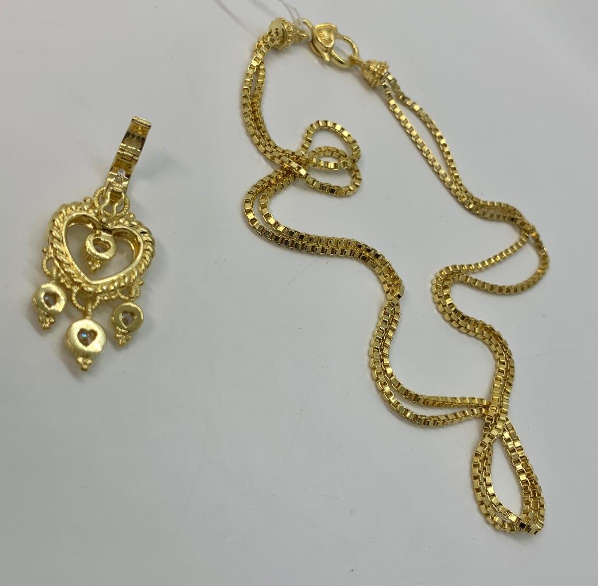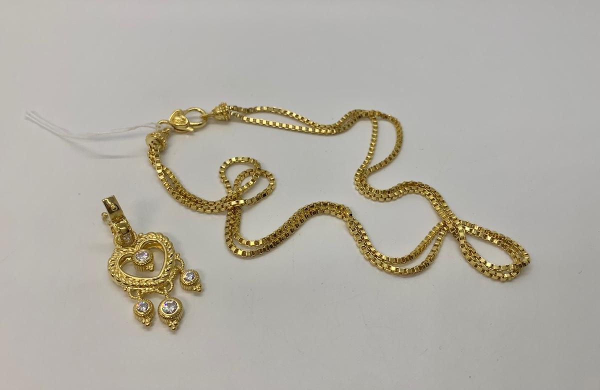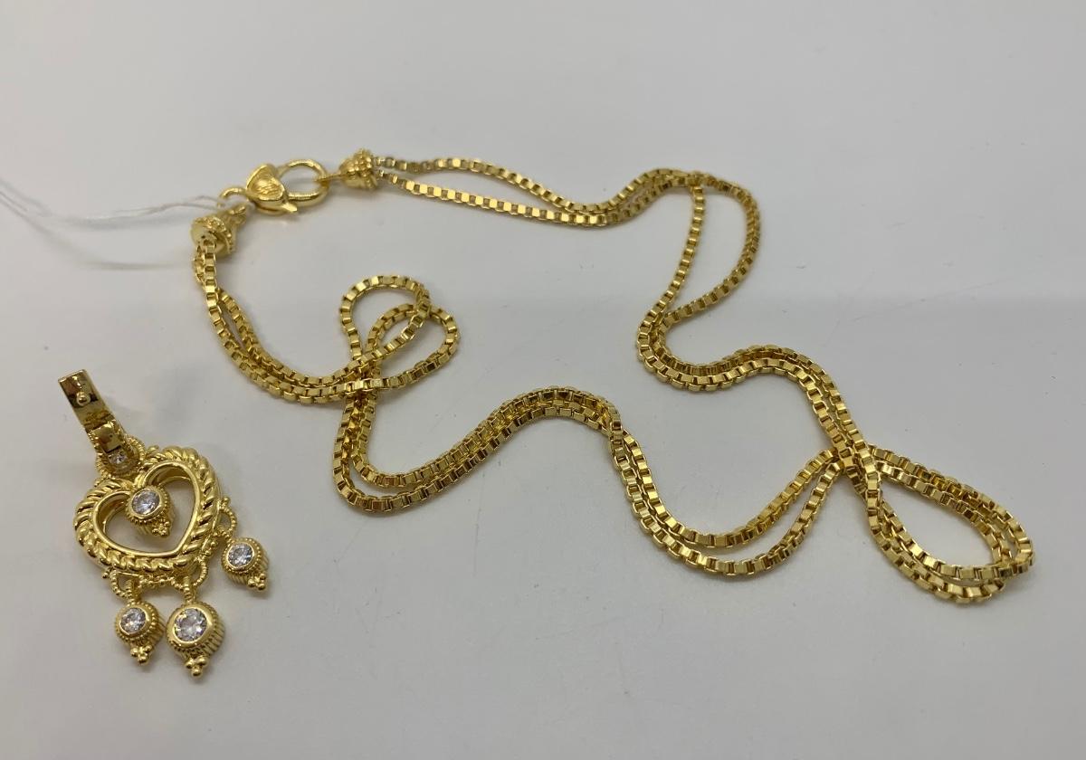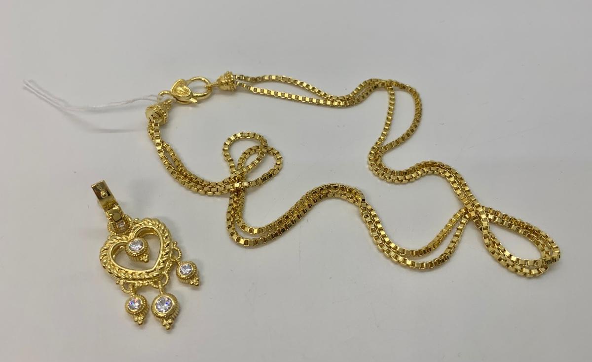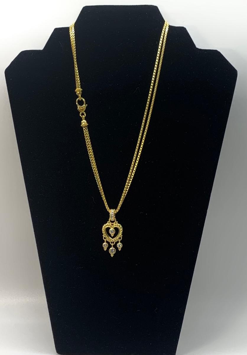 LOTJ146: New in box Judith Ripka Diamonique Gold Vermeil Sterling Silver 44" Double Strand Box Chain and Heart Enhancer/Pendant