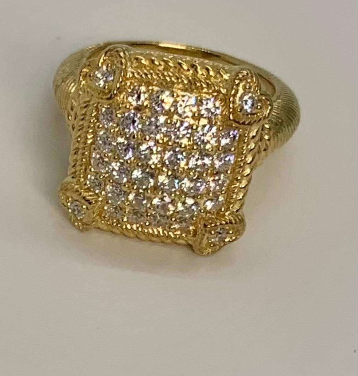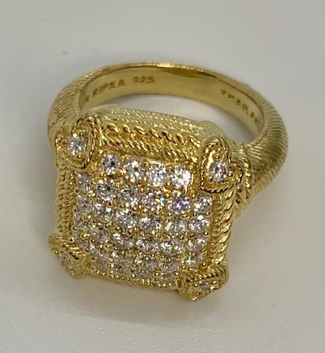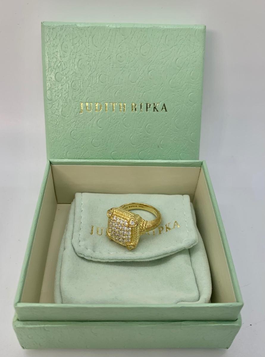 LOTJ148: New in Box Judith Ripka Diamonique Gold Vermeil Sterling Silver Pave CZ Ring Size 5
