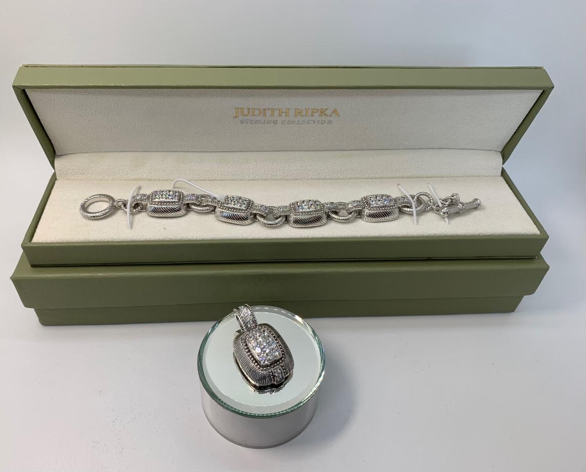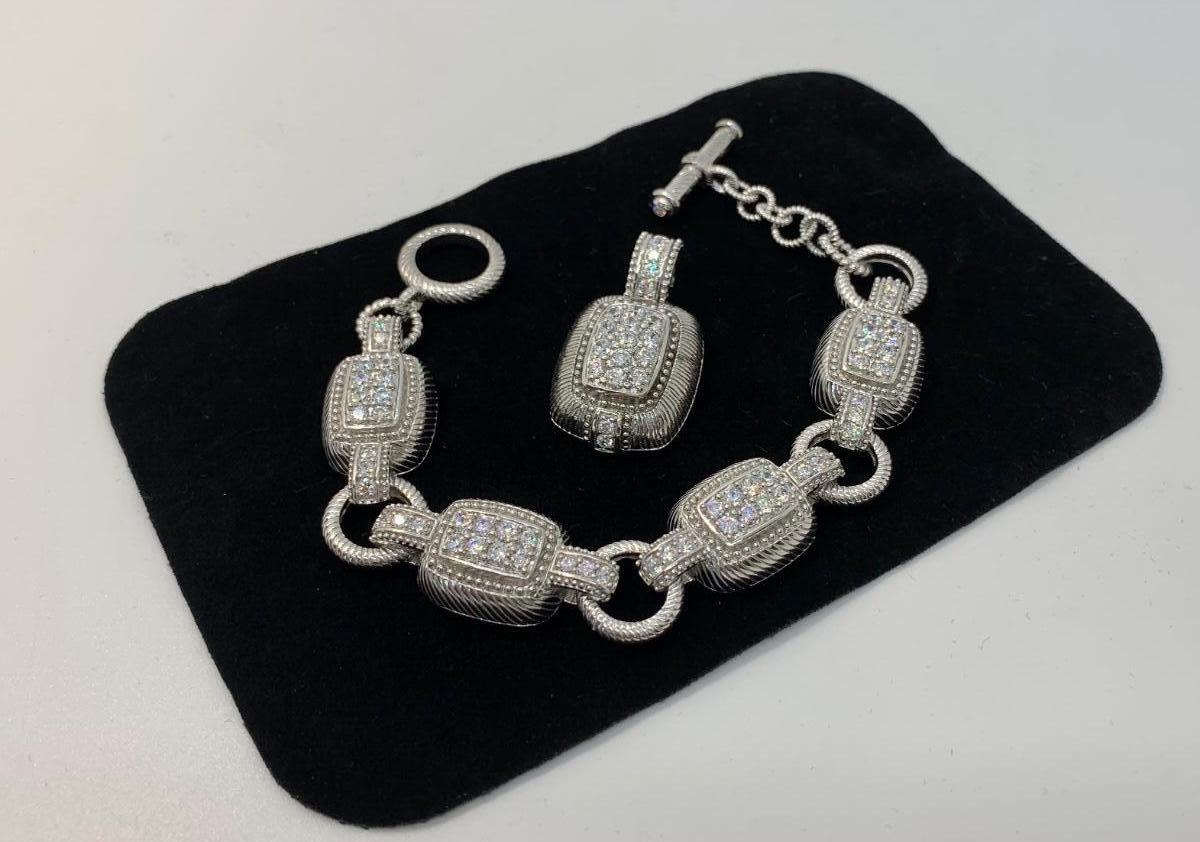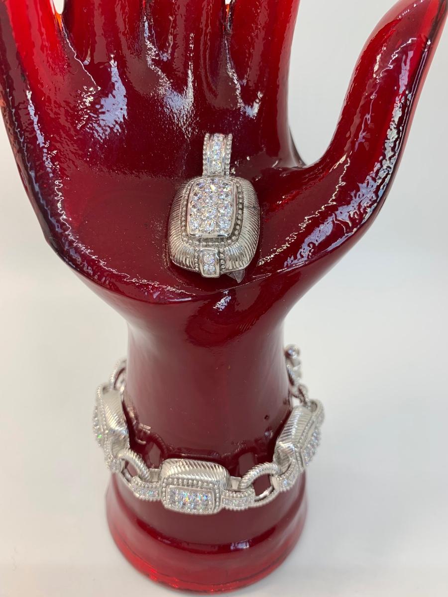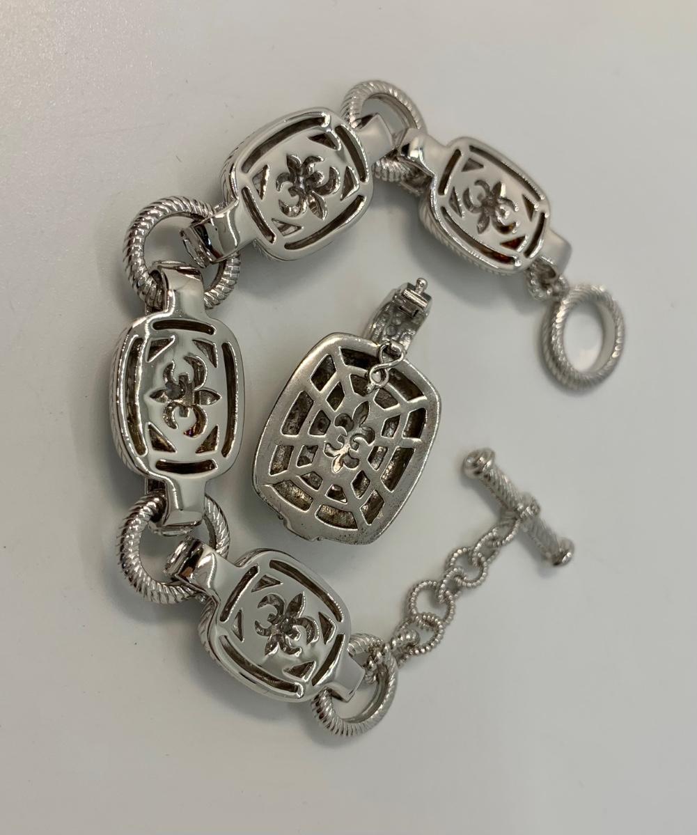LOTJ150: New in Box Judith Ripka Sterling Diamonique 7.5" Link Bracelet and Matching Enhancer/Pendant