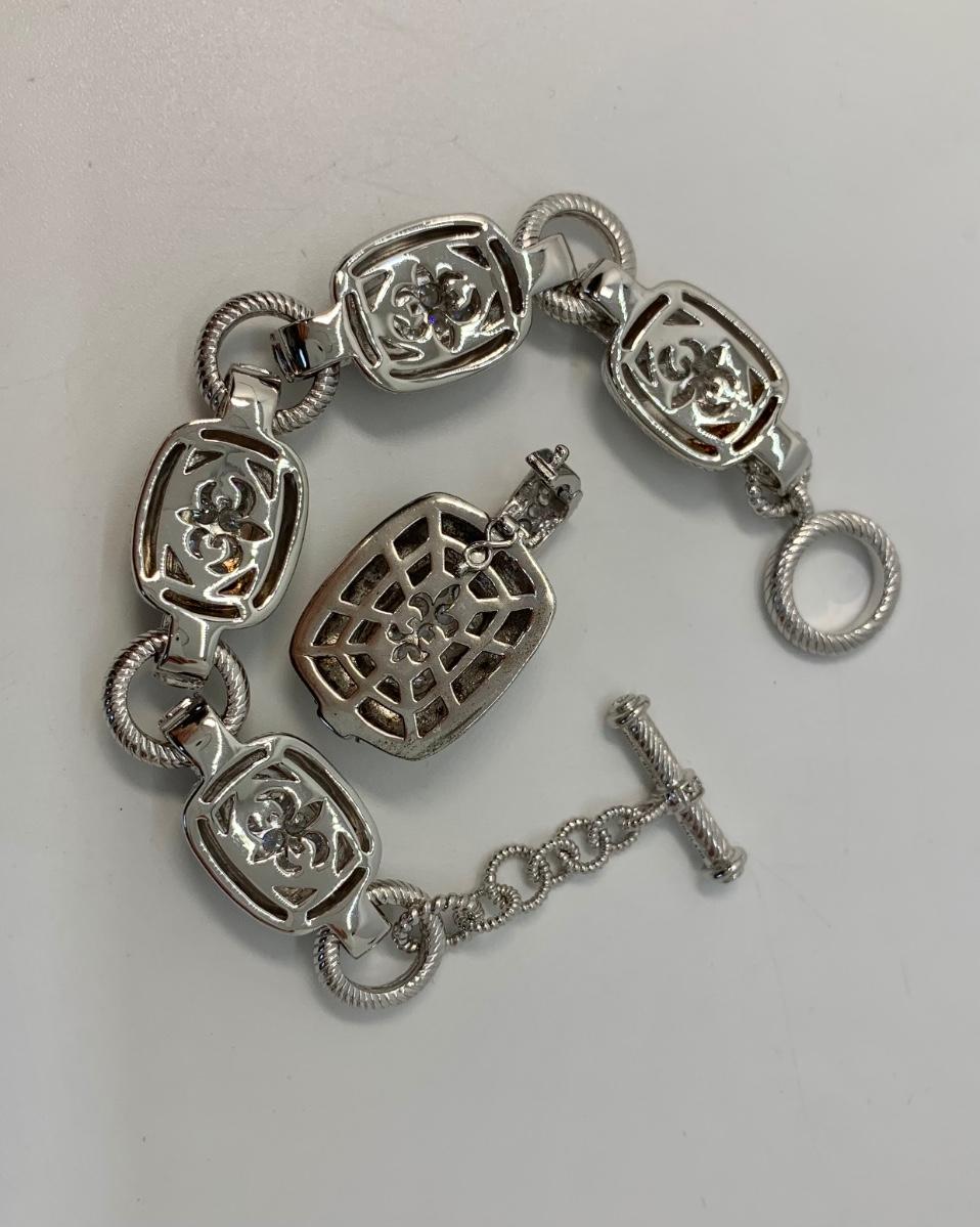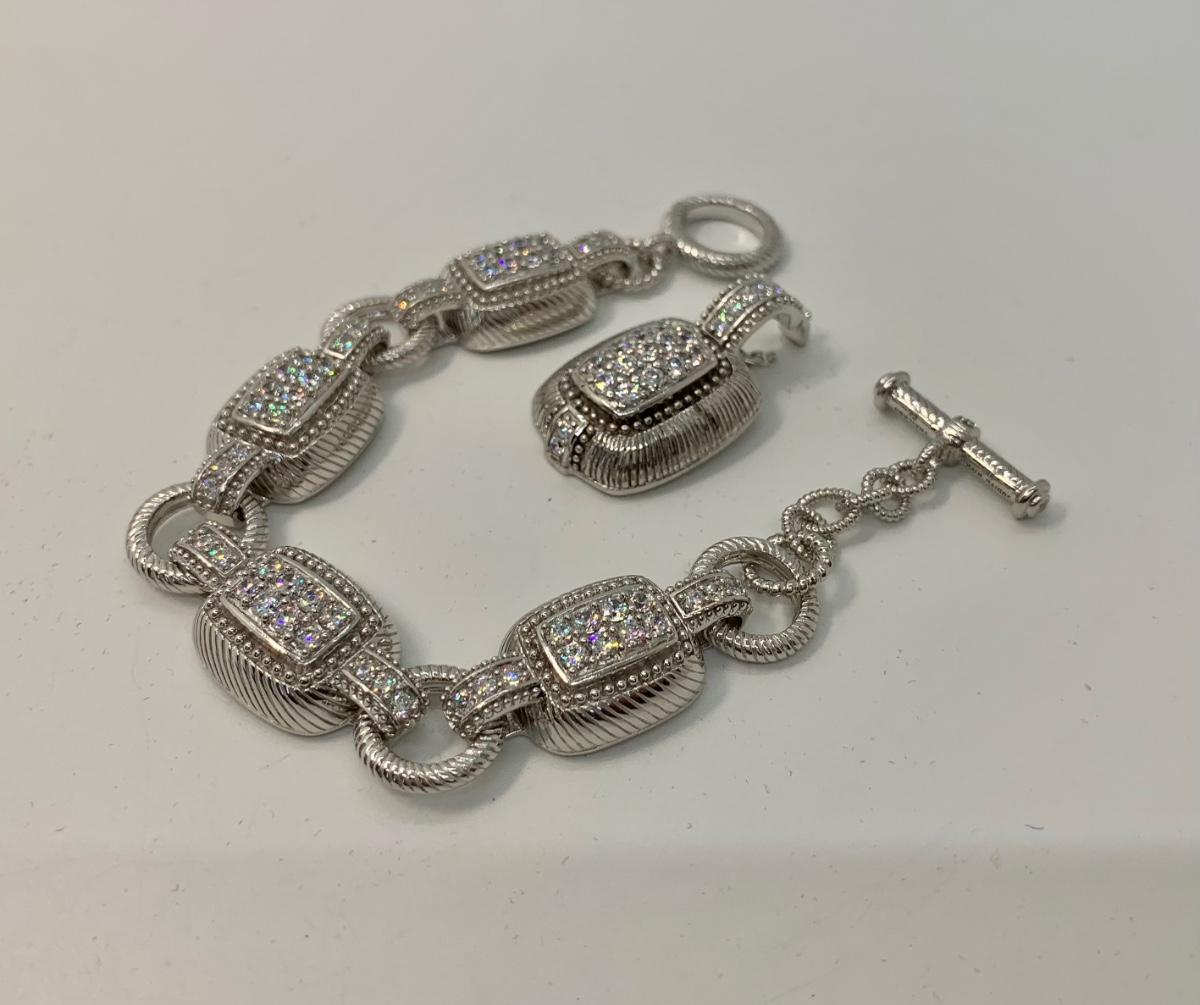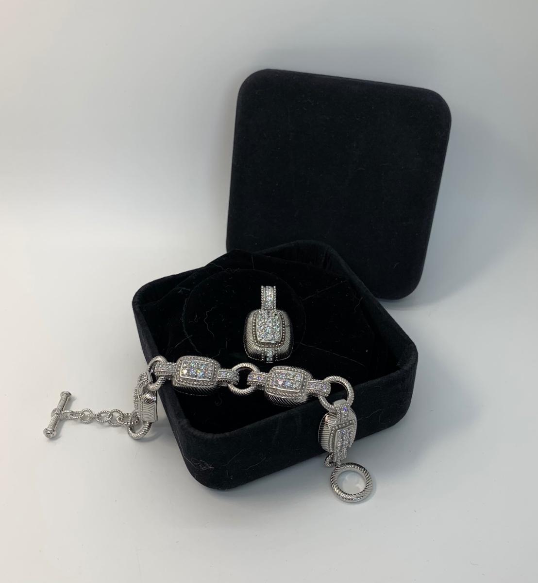 LOTJ150: New in Box Judith Ripka Sterling Diamonique 7.5" Link Bracelet and Matching Enhancer/Pendant