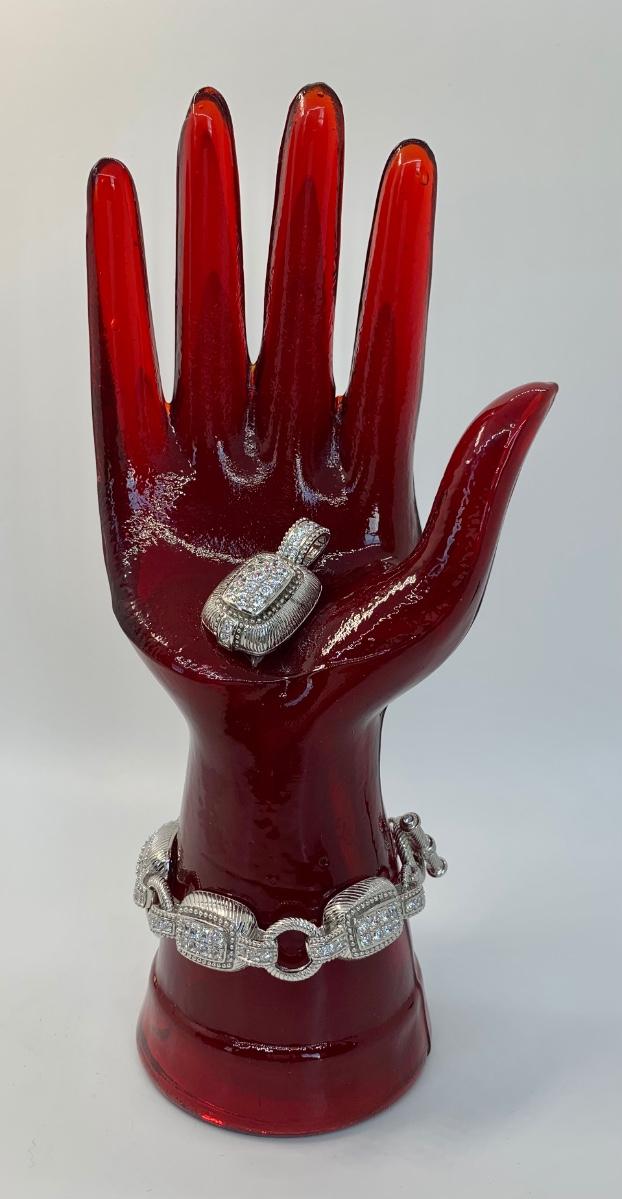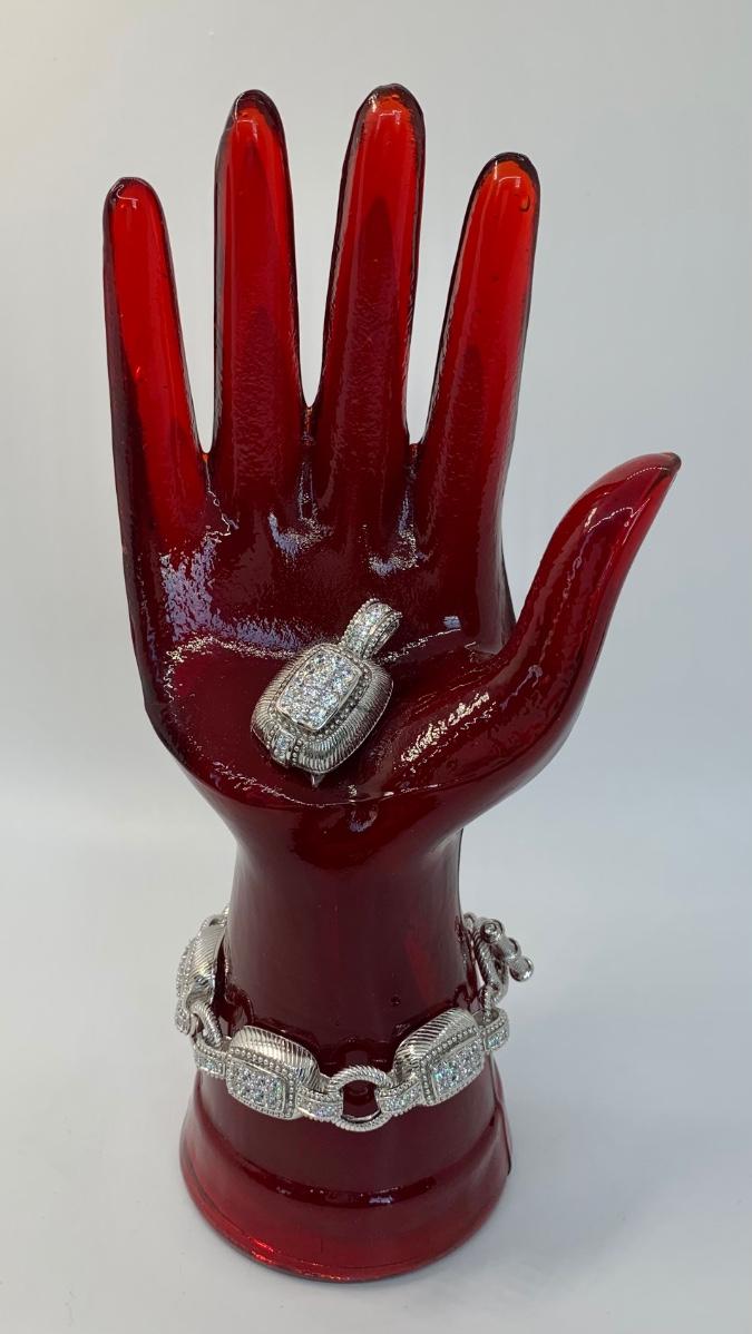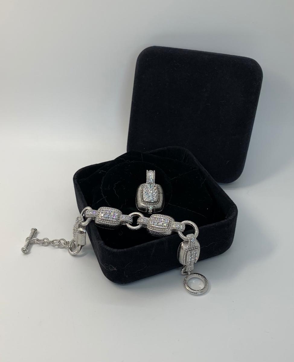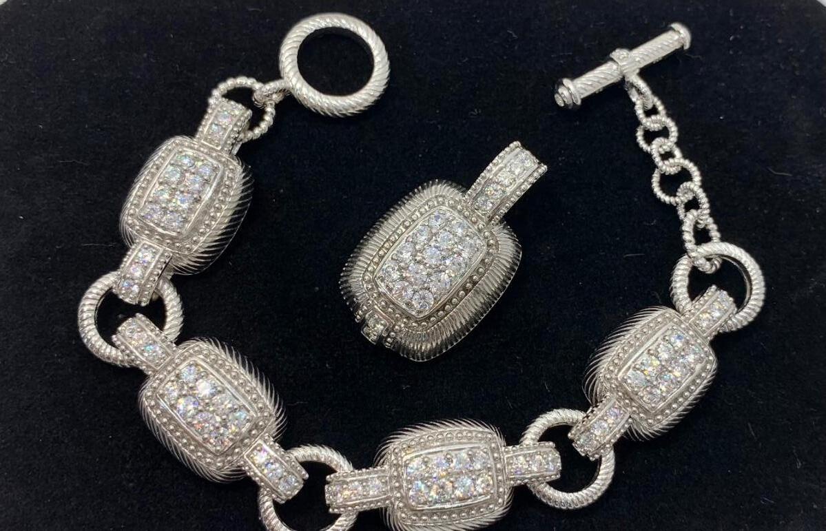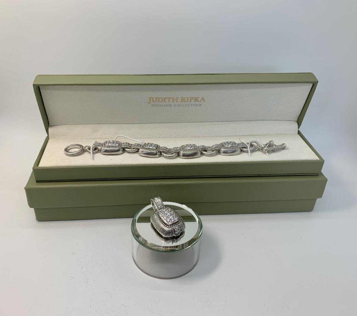 LOTJ150: New in Box Judith Ripka Sterling Diamonique 7.5" Link Bracelet and Matching Enhancer/Pendant
