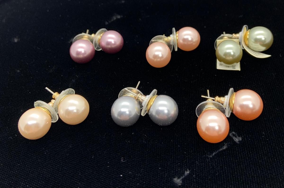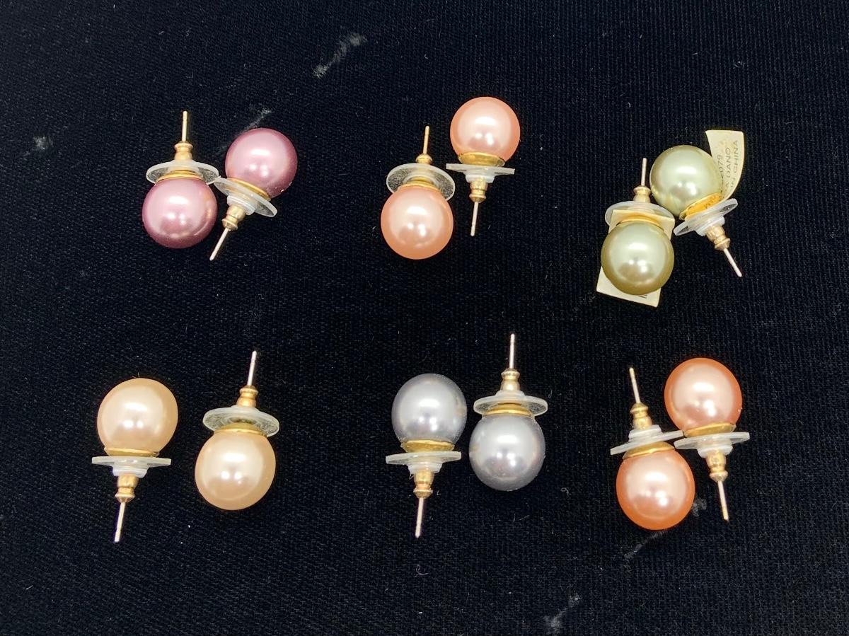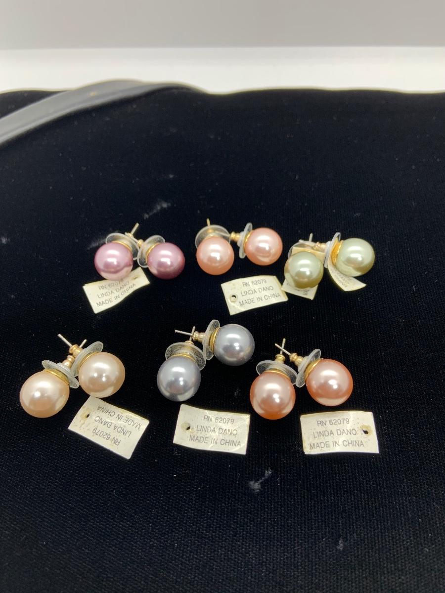 LOTJ22: Linda Dano set of 6 pairs of Simulated Pearls Pierced Studs multiple colors