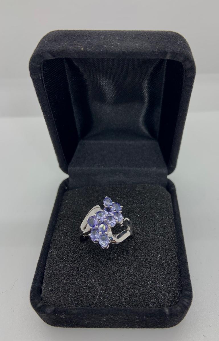 LOTJ23: Tanzanite tw 1.25 ct Waterfall Design Sterling Silver Ring Sz. 6