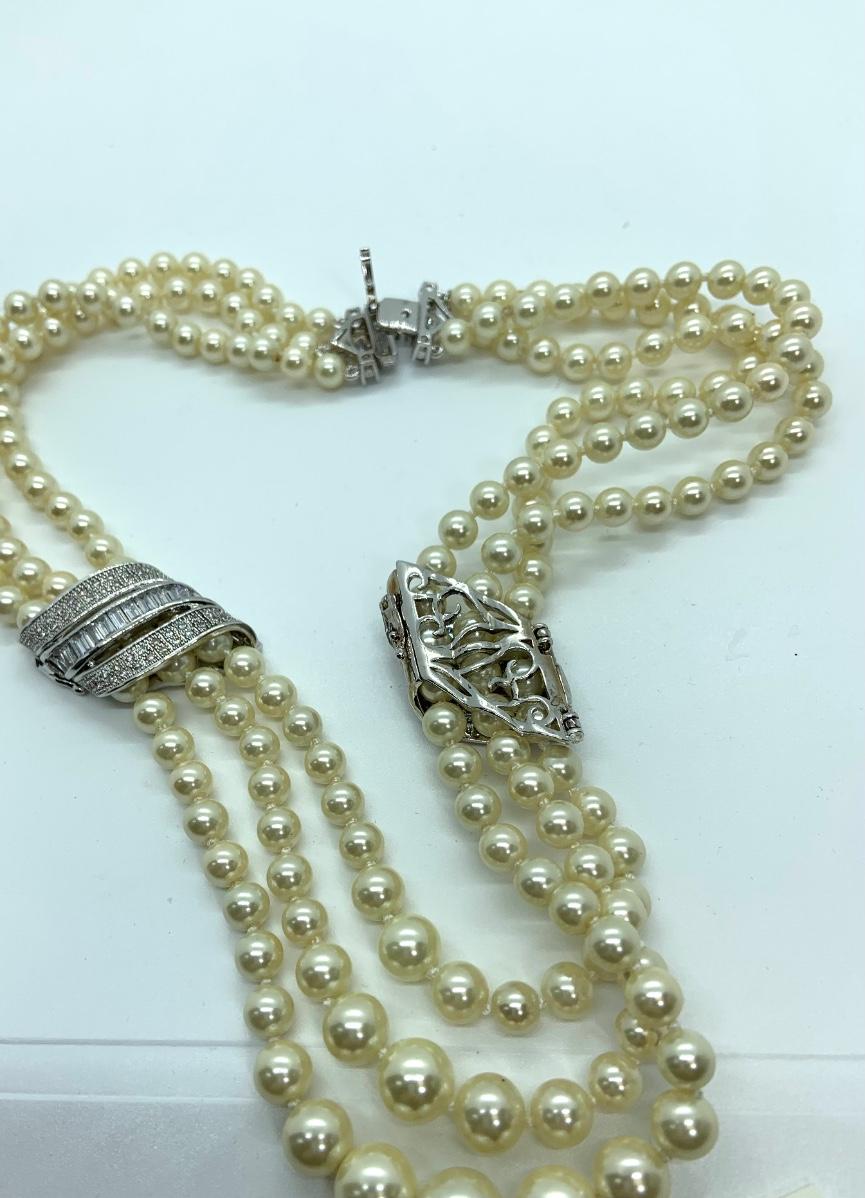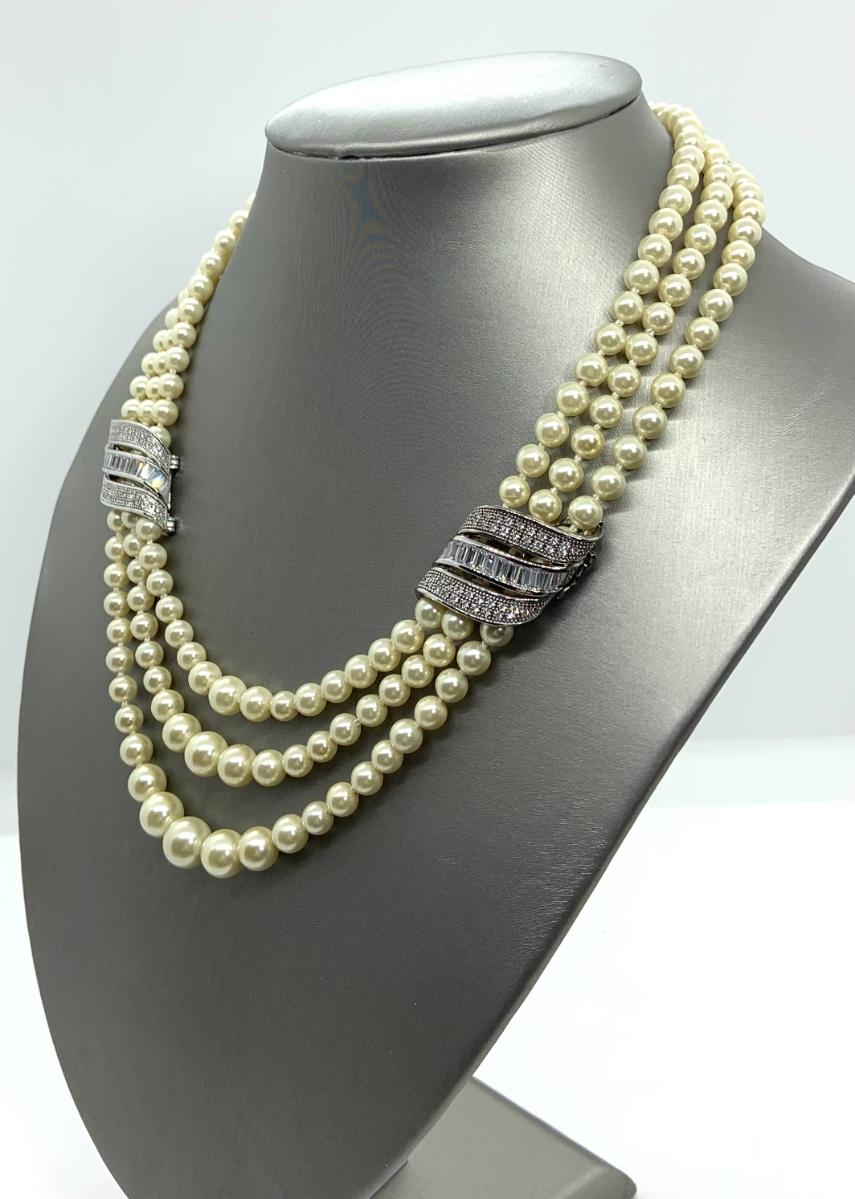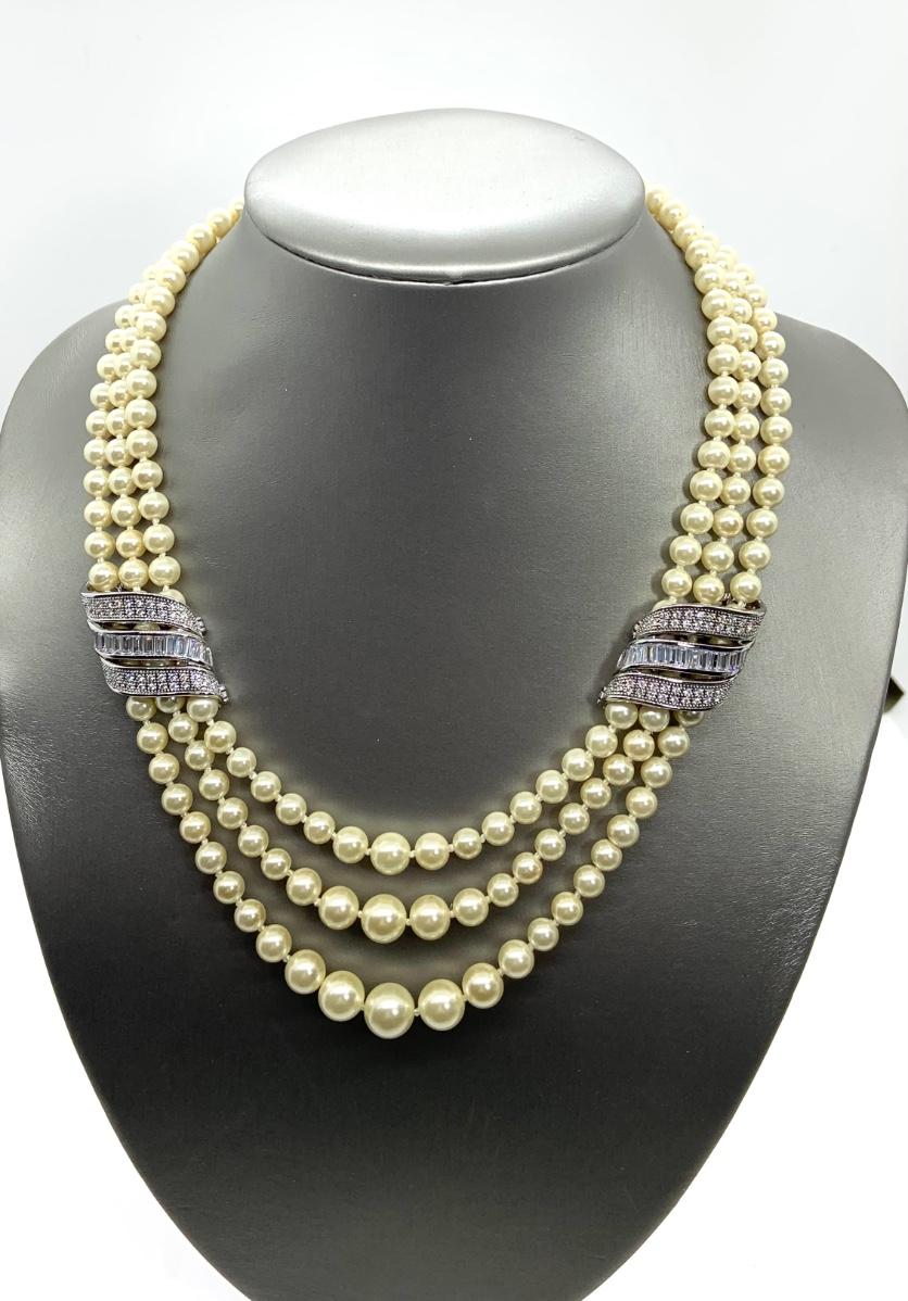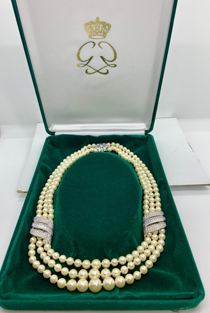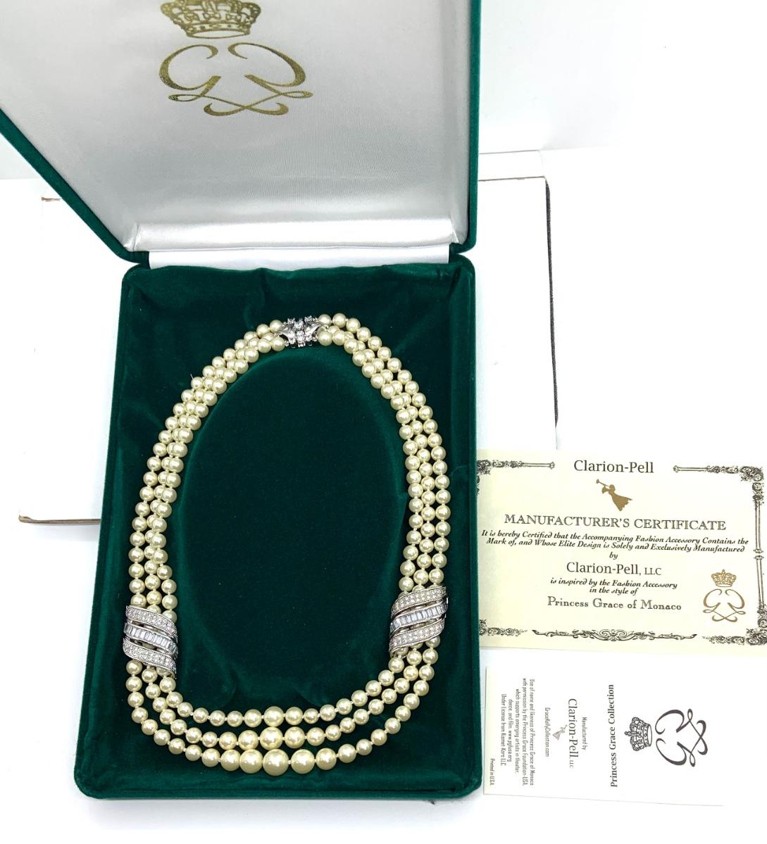 LOTJ28: New in Box Clarion-Pell Grace Kelly Collection 3 strand Simulated Pearl Necklace 17"
