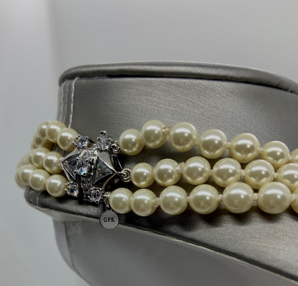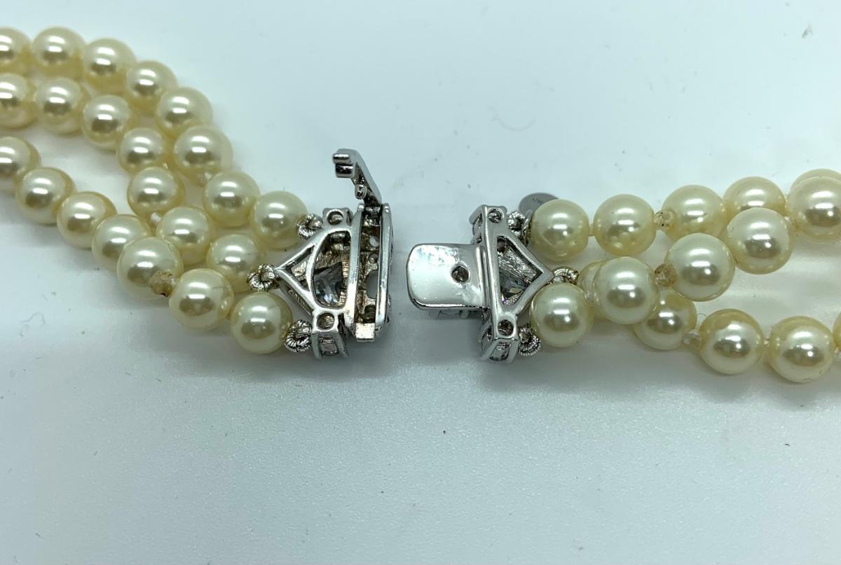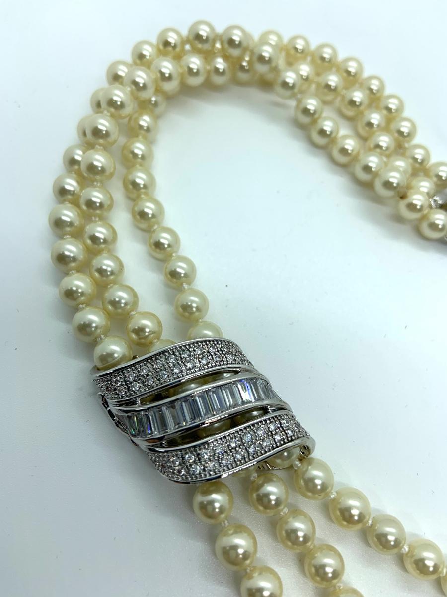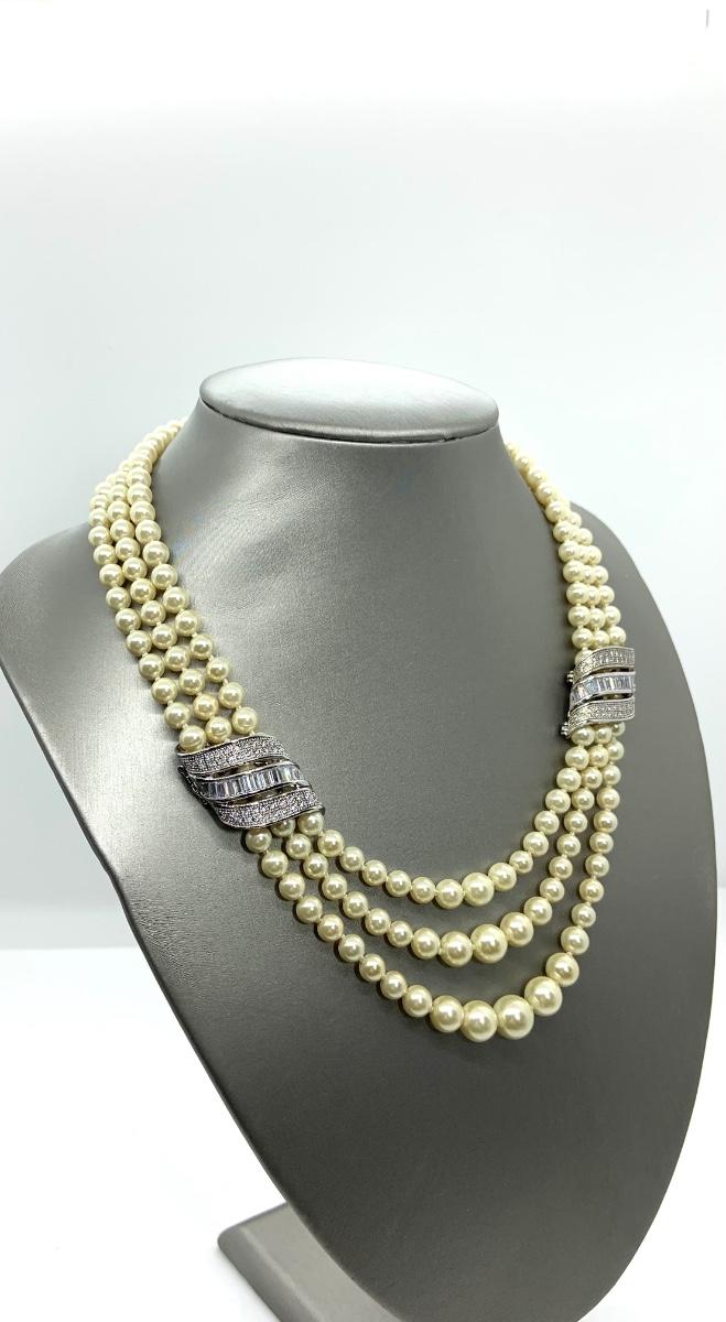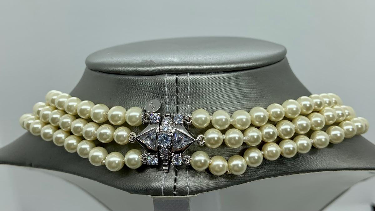 LOTJ28: New in Box Clarion-Pell Grace Kelly Collection 3 strand Simulated Pearl Necklace 17"
