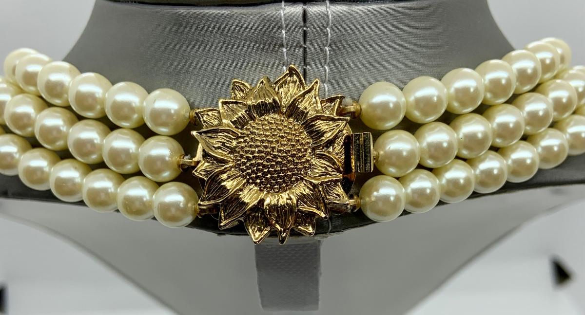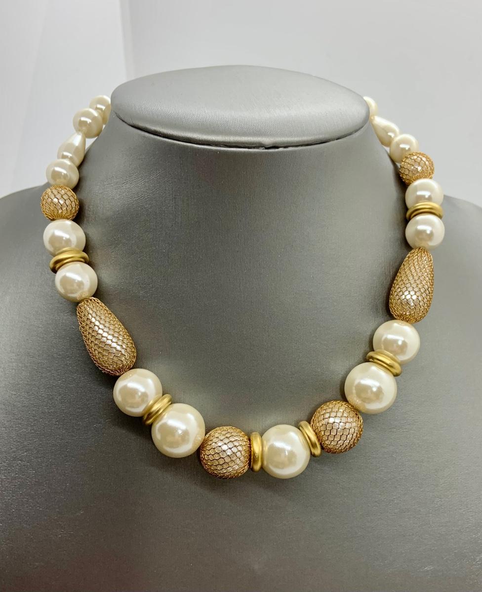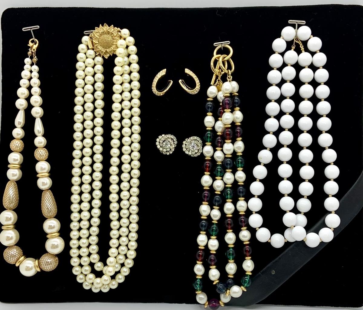 LOTJ29: Costume lot two pair pierced earrings and 4 Necklaces-Anne Klein 17", Sunflower Clasp 17", white/goldtone 16" and 30" White beads