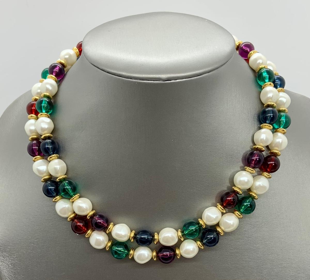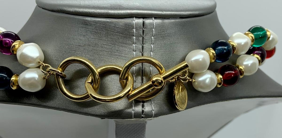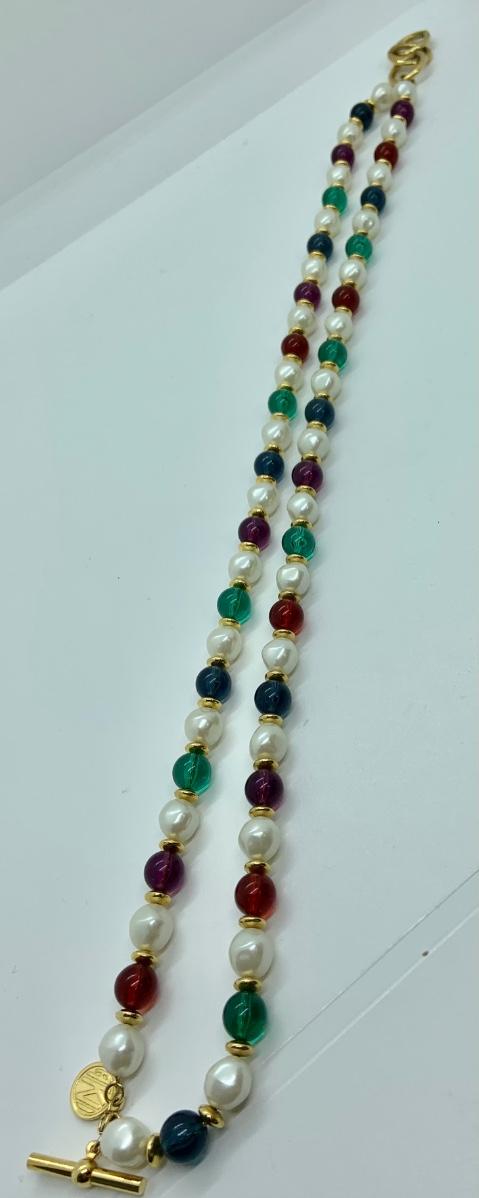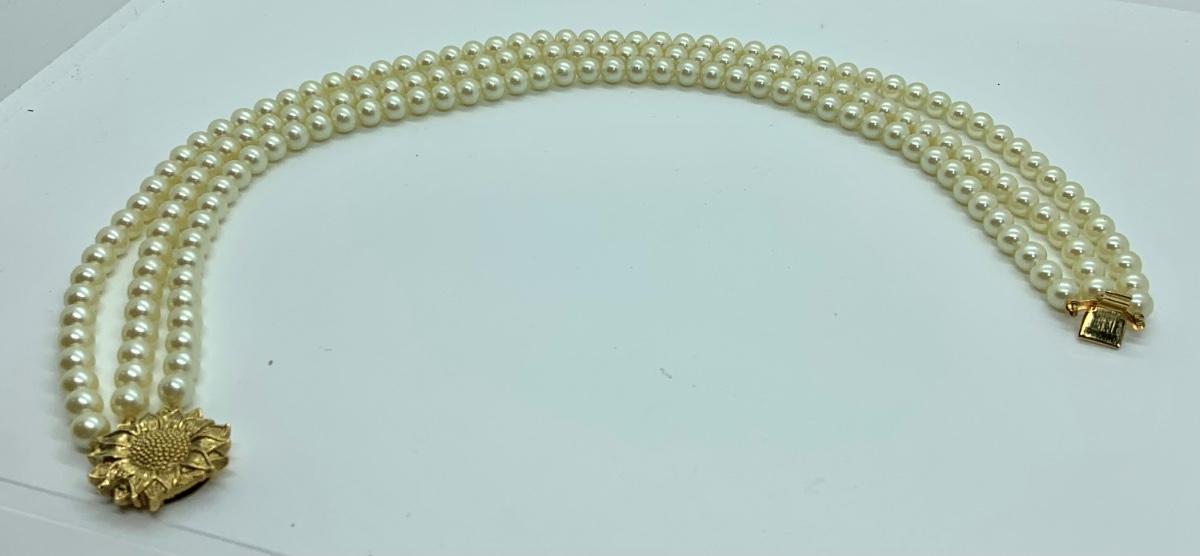 LOTJ29: Costume lot two pair pierced earrings and 4 Necklaces-Anne Klein 17", Sunflower Clasp 17", white/goldtone 16" and 30" White beads