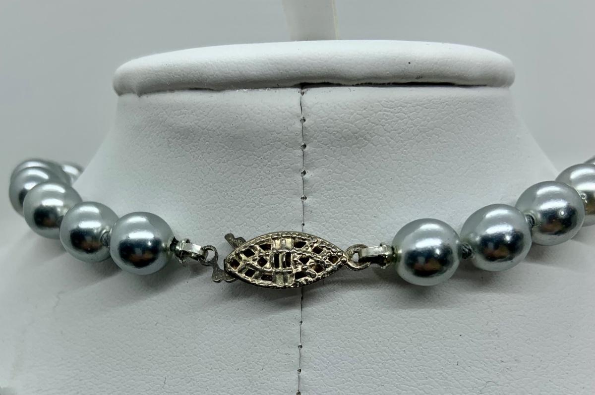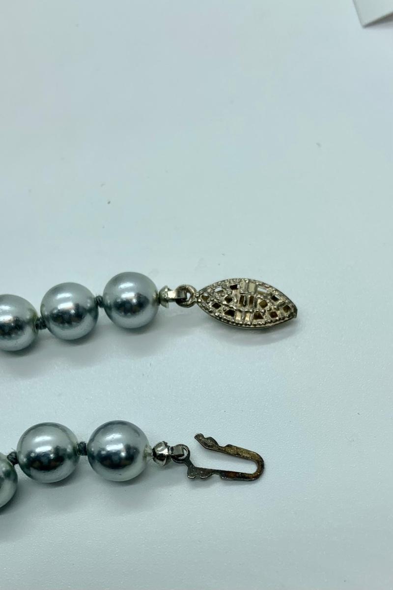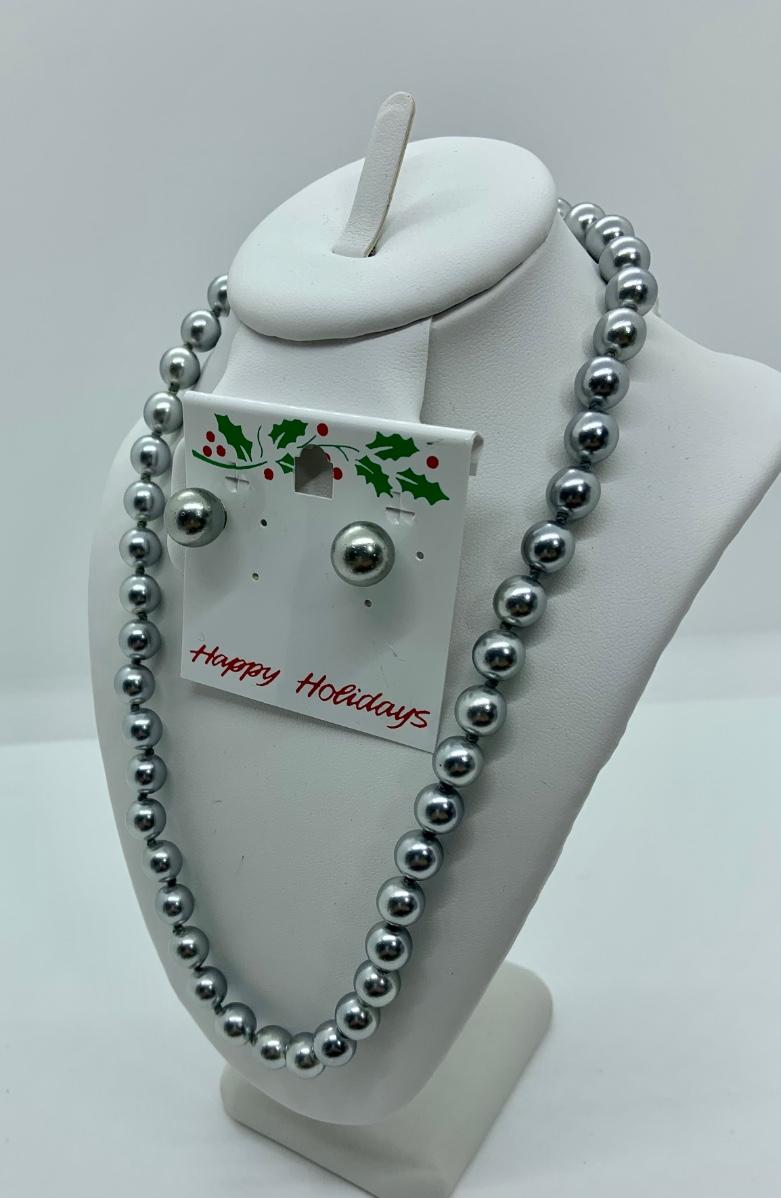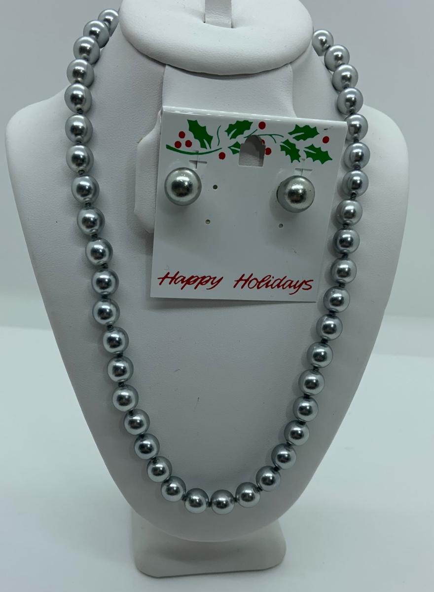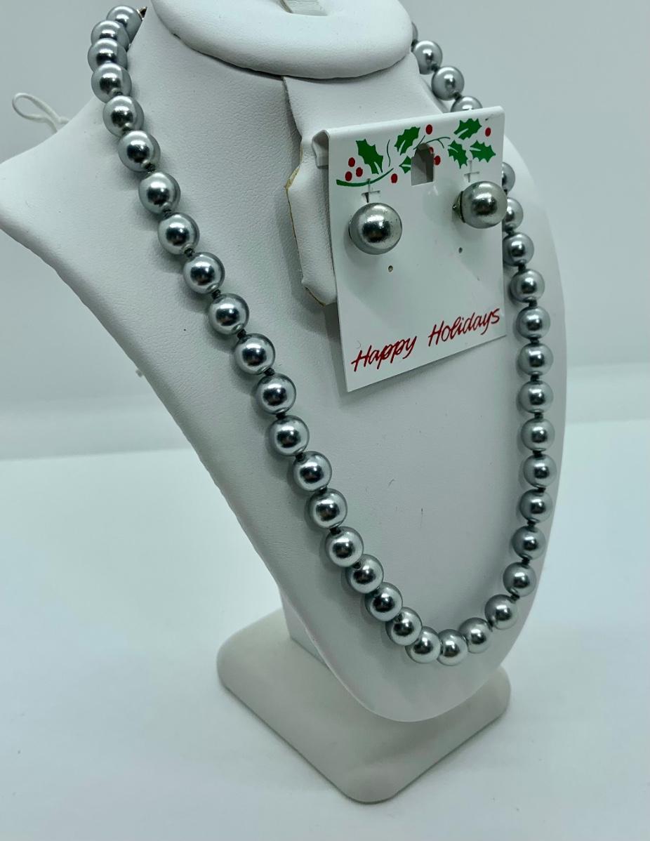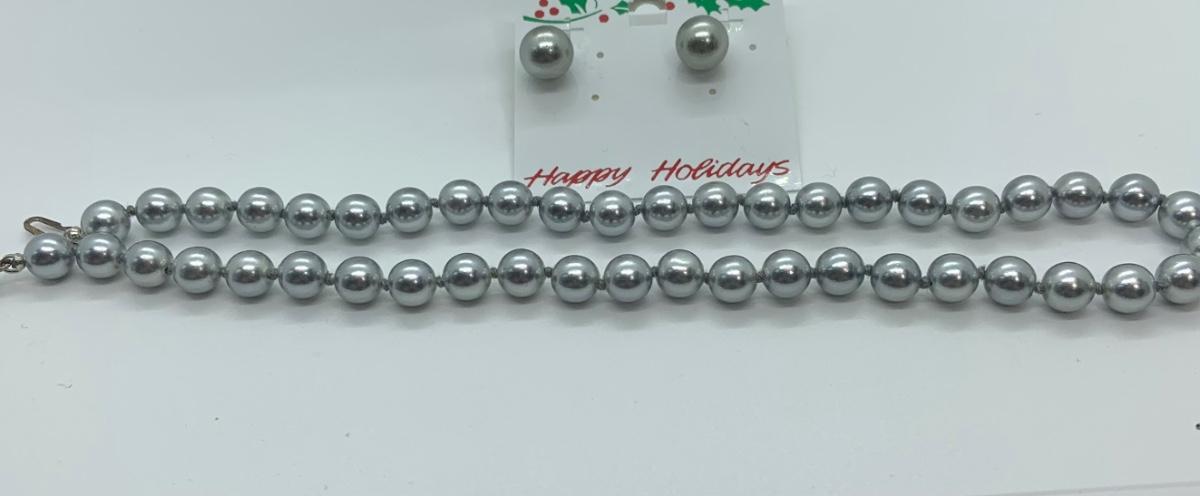LOTJ30: Silvery Grey Faux Pearl 17" necklace and pierced earring set Look like new