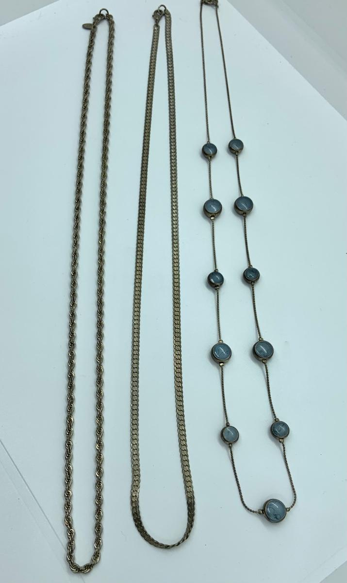 LOTJ31: Three Silvertone Costume Necklaces - one is signed Maggie Lawrence All are 30" Long
