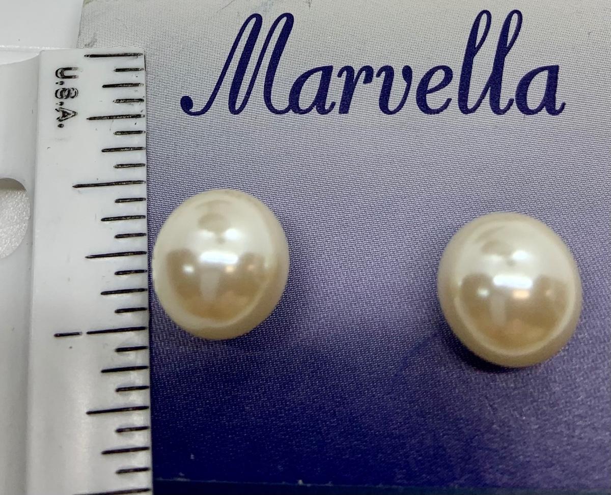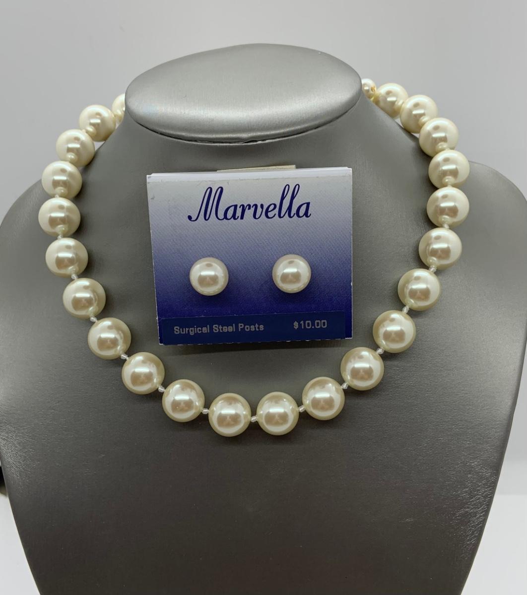 LOTJ38: Marvella Costume faux pearls 19" strand and matching pierced earrings