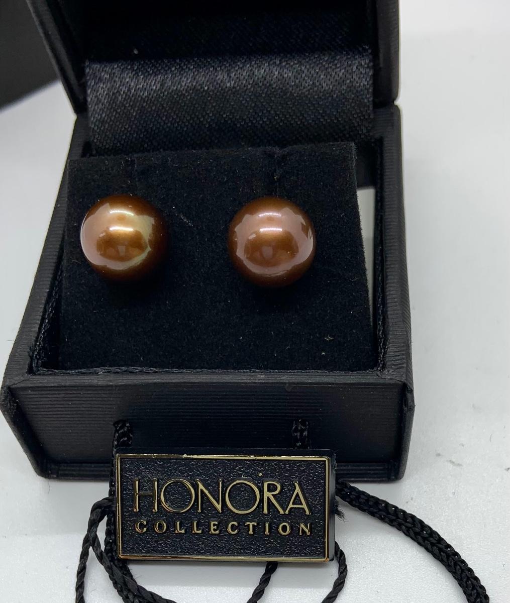 LOTJ39: New in box Honora 14k gold Cultured Pearl Pierced Earrings