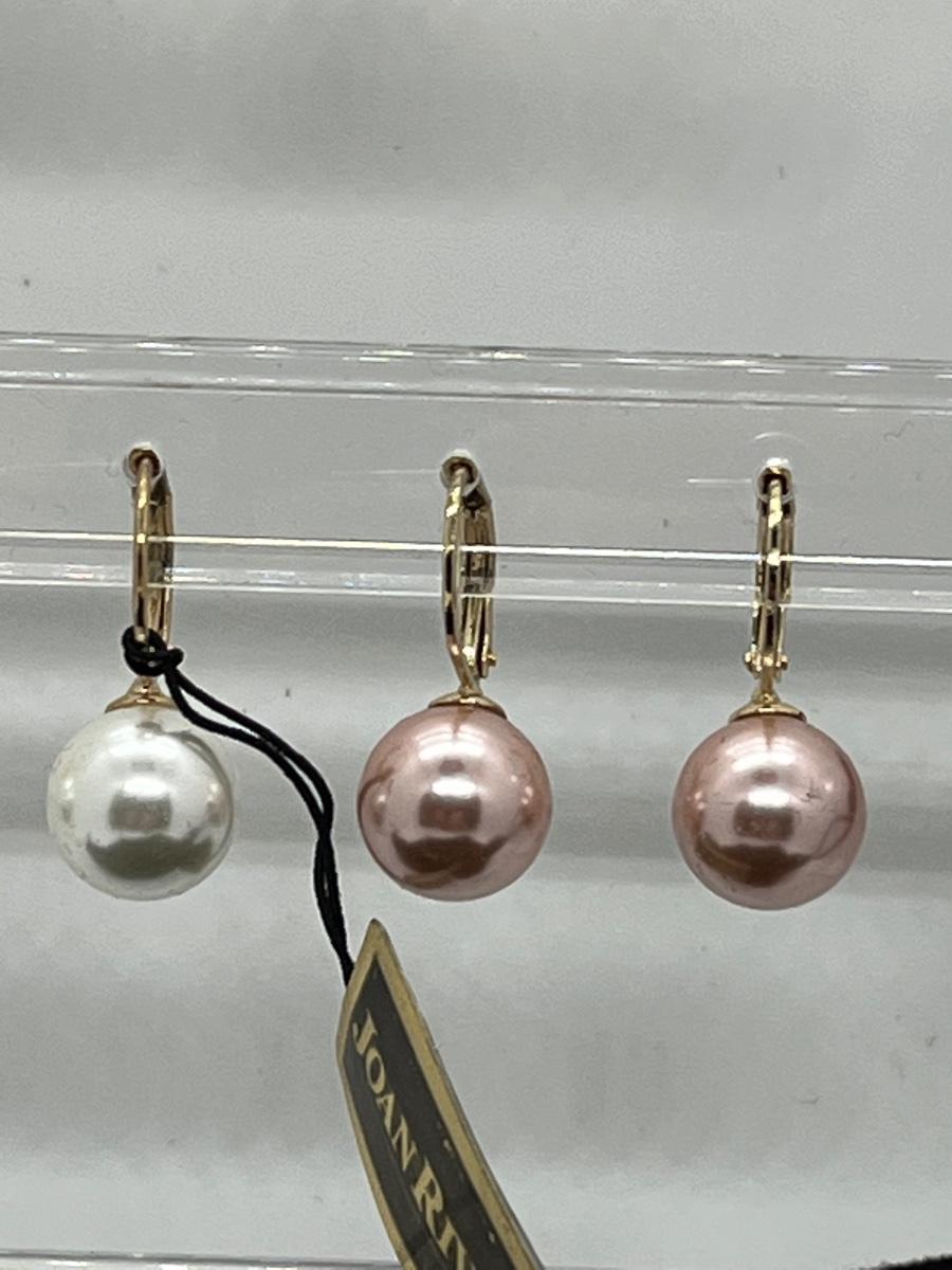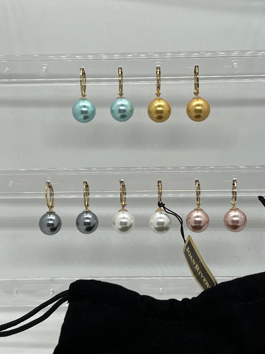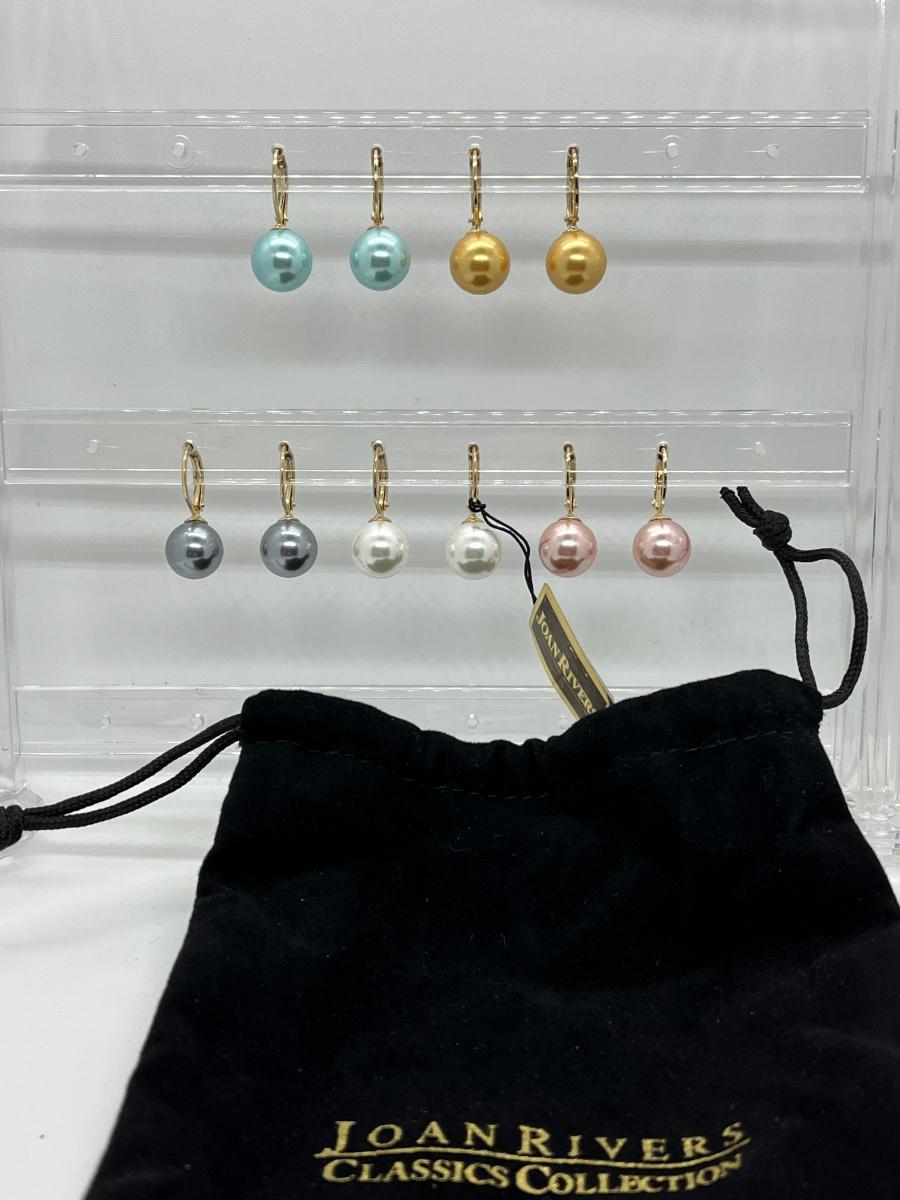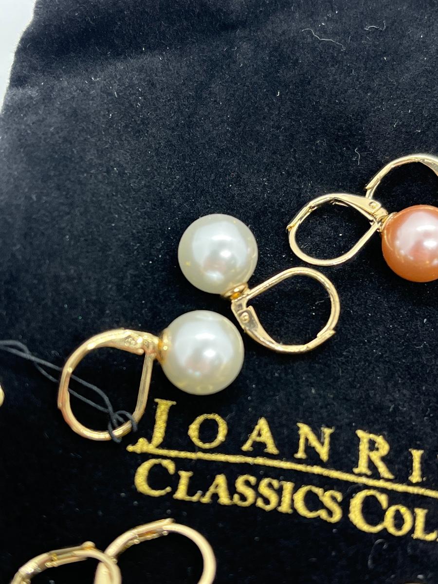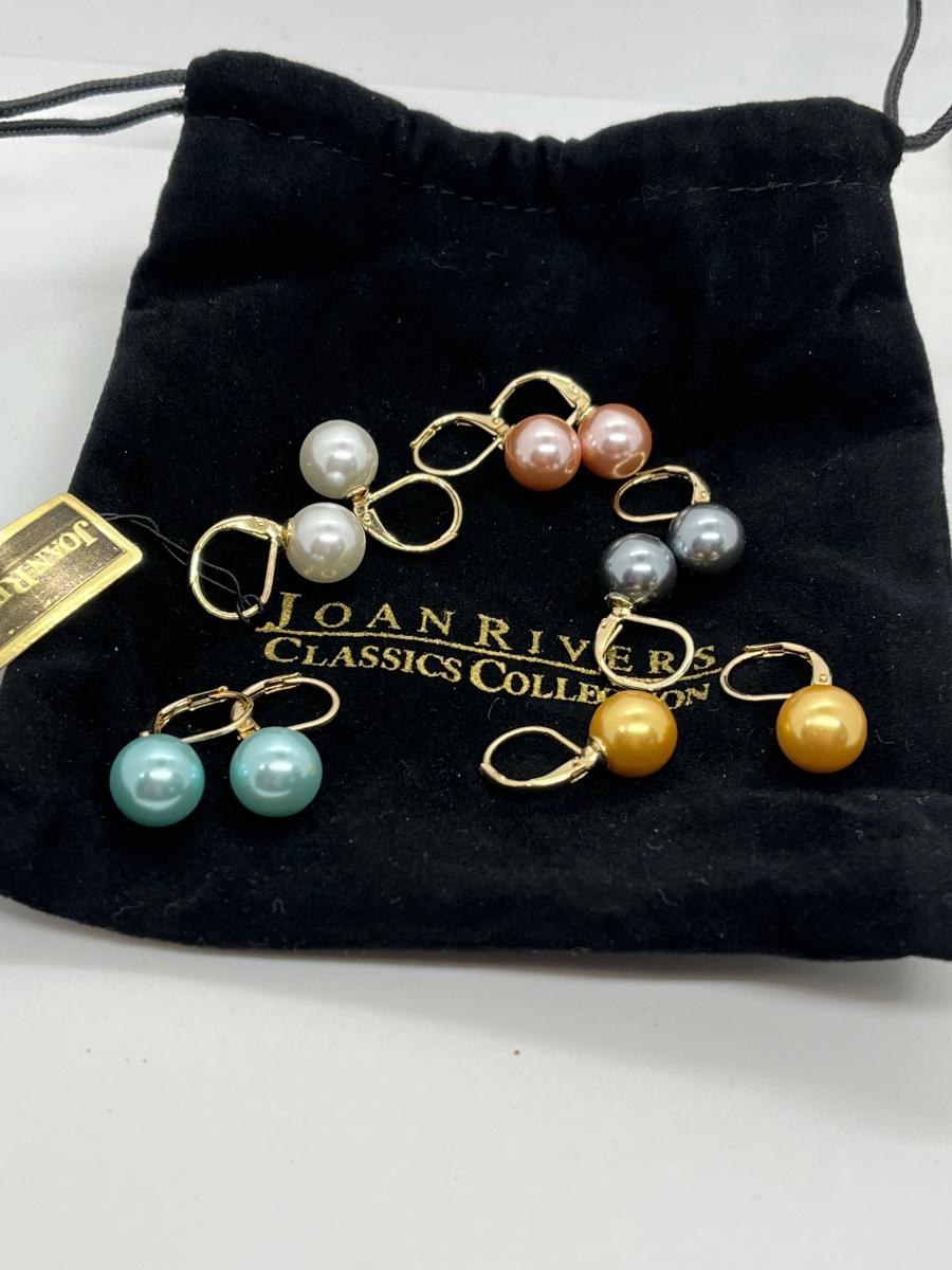 LOTJ: New in box Set of  5 pairs Joan Rivers Simulated Pearl gold tone lever back pierced earrings
