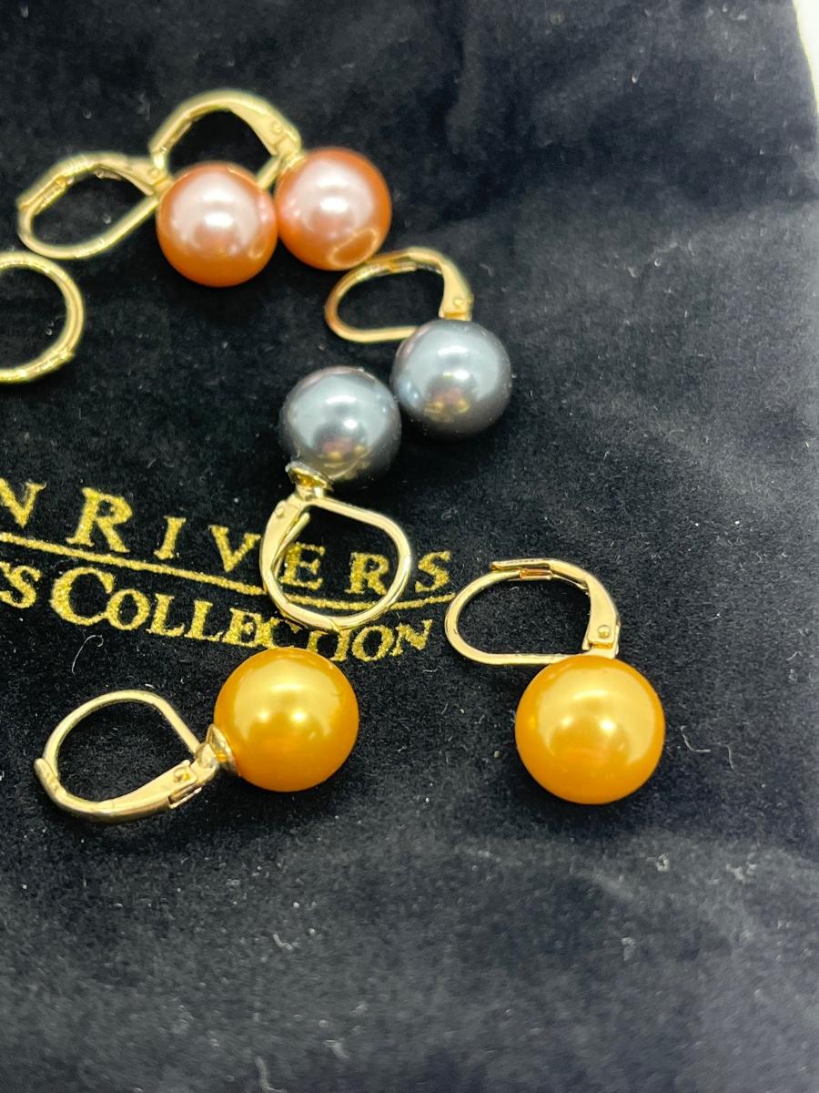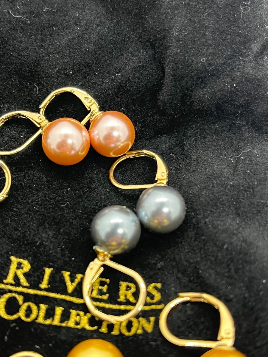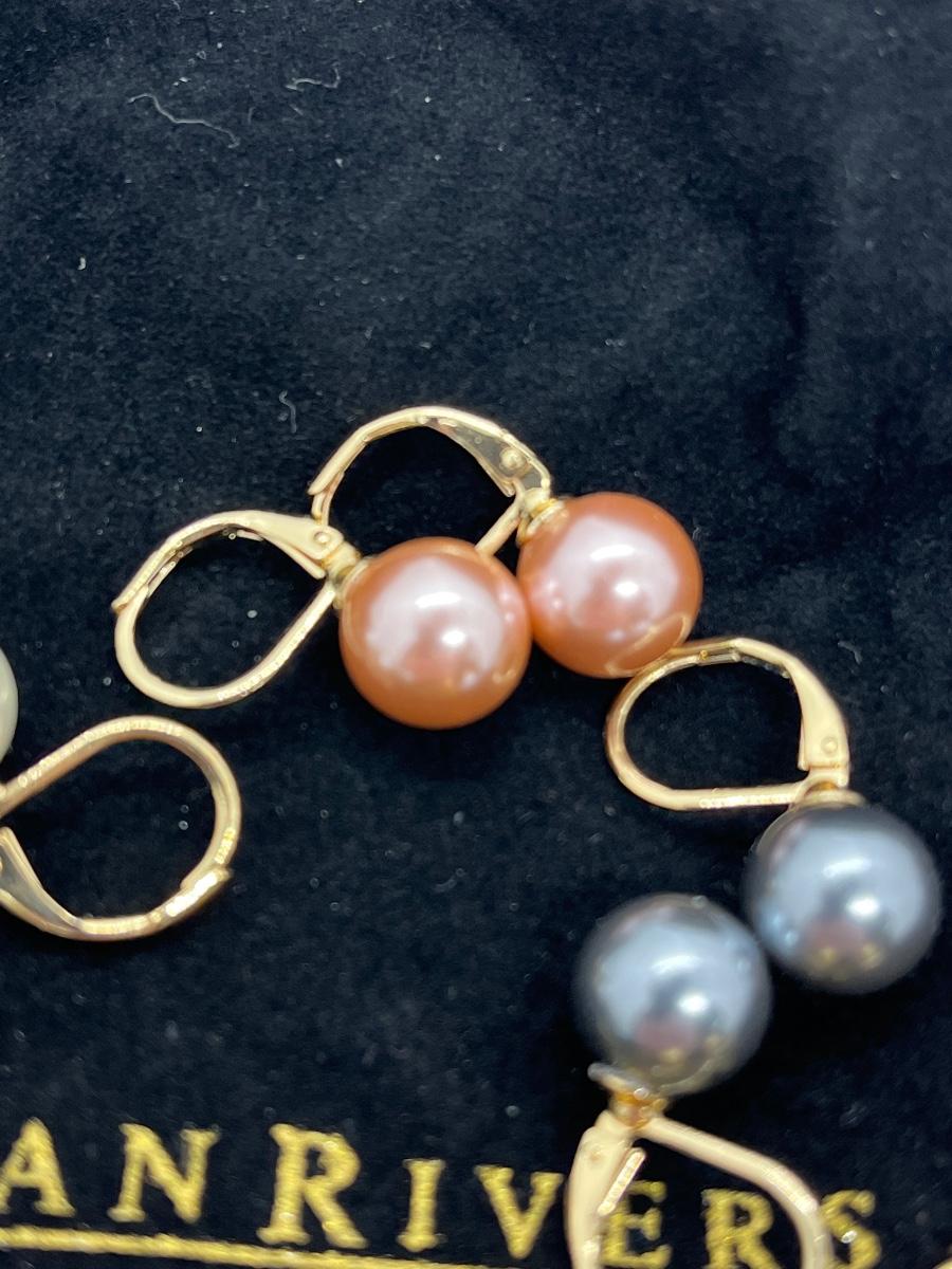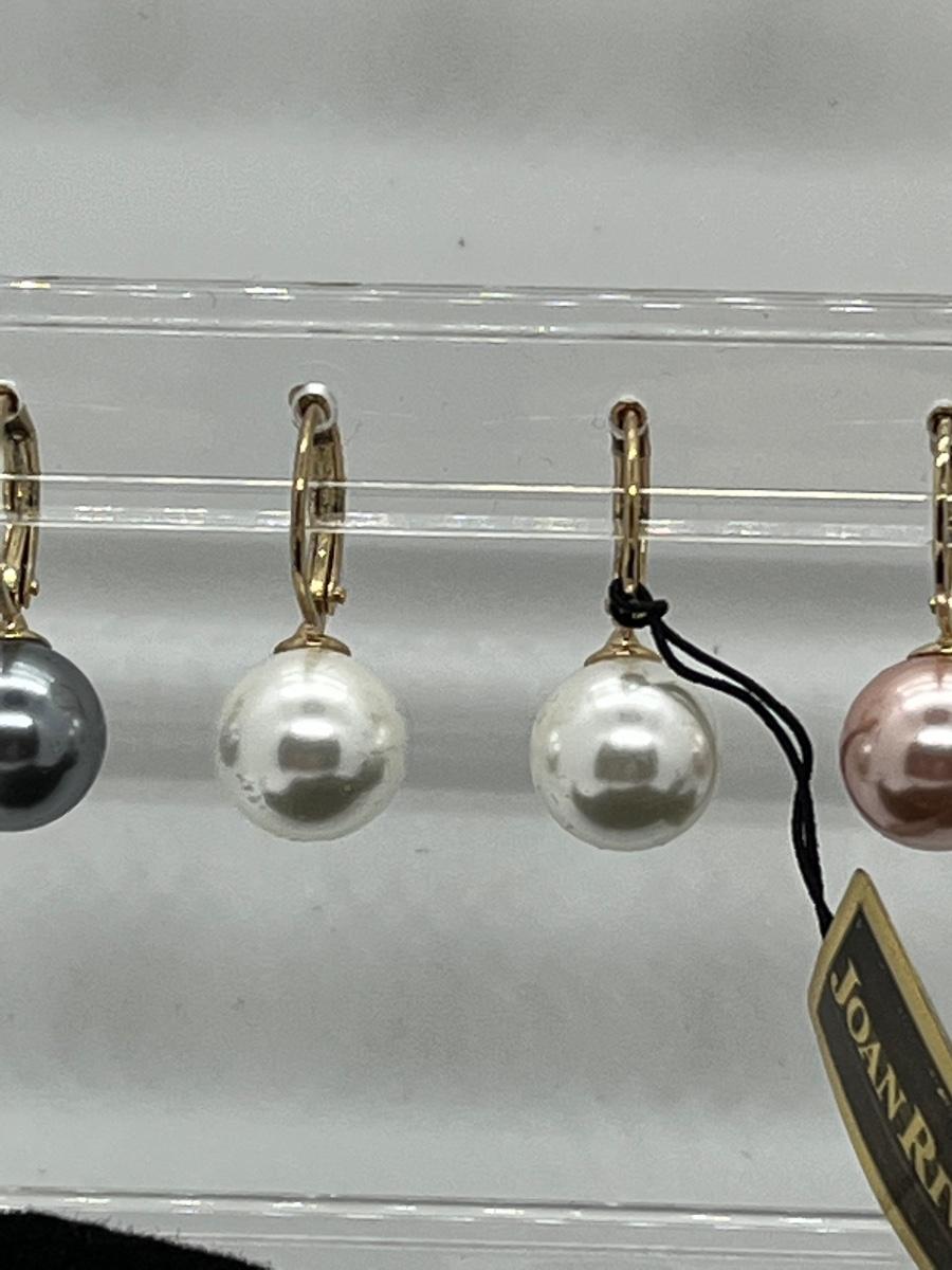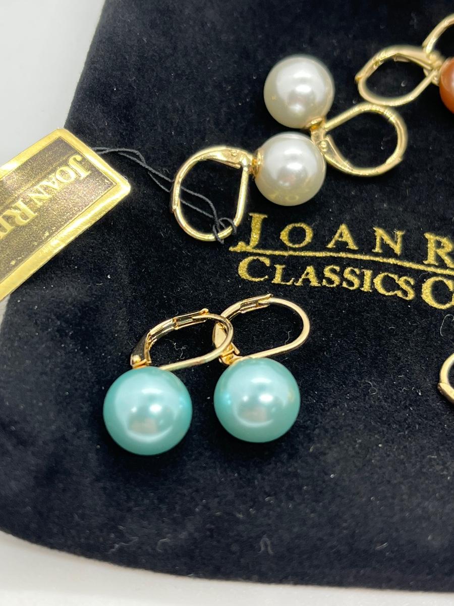 LOTJ: New in box Set of  5 pairs Joan Rivers Simulated Pearl gold tone lever back pierced earrings