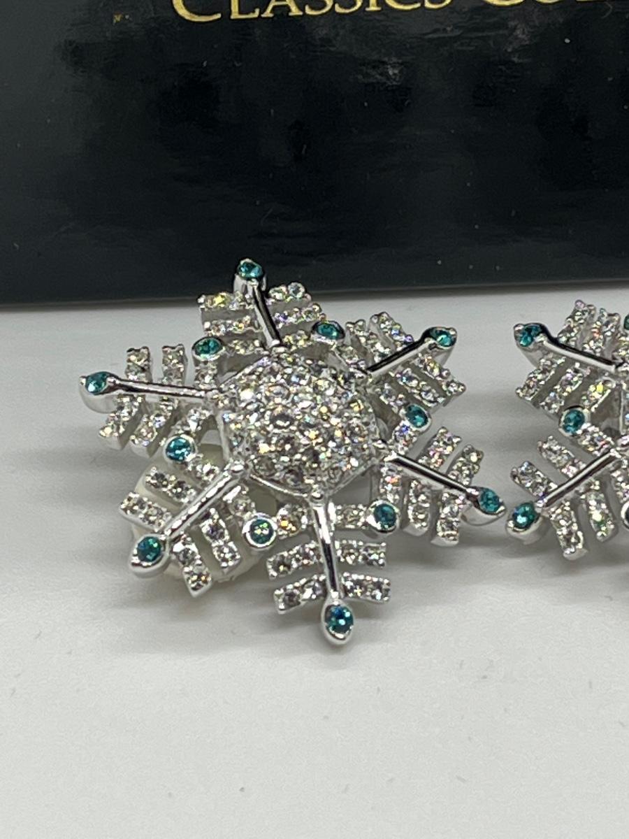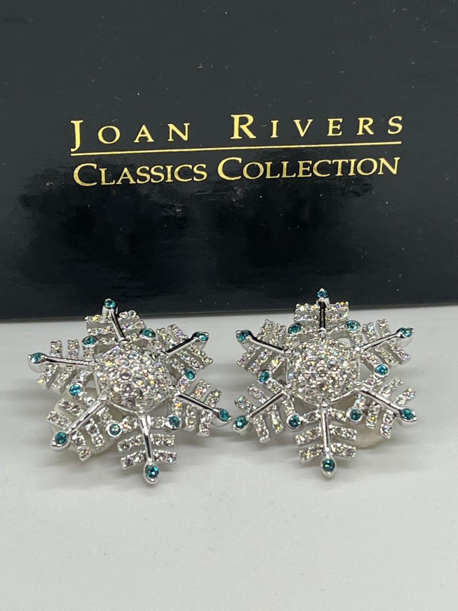 LOTJ43: New in Box Joan Rivers Classic Collection Delicate Crystal Snowflake Clip-on Earrings See lot 40 for matching necklace