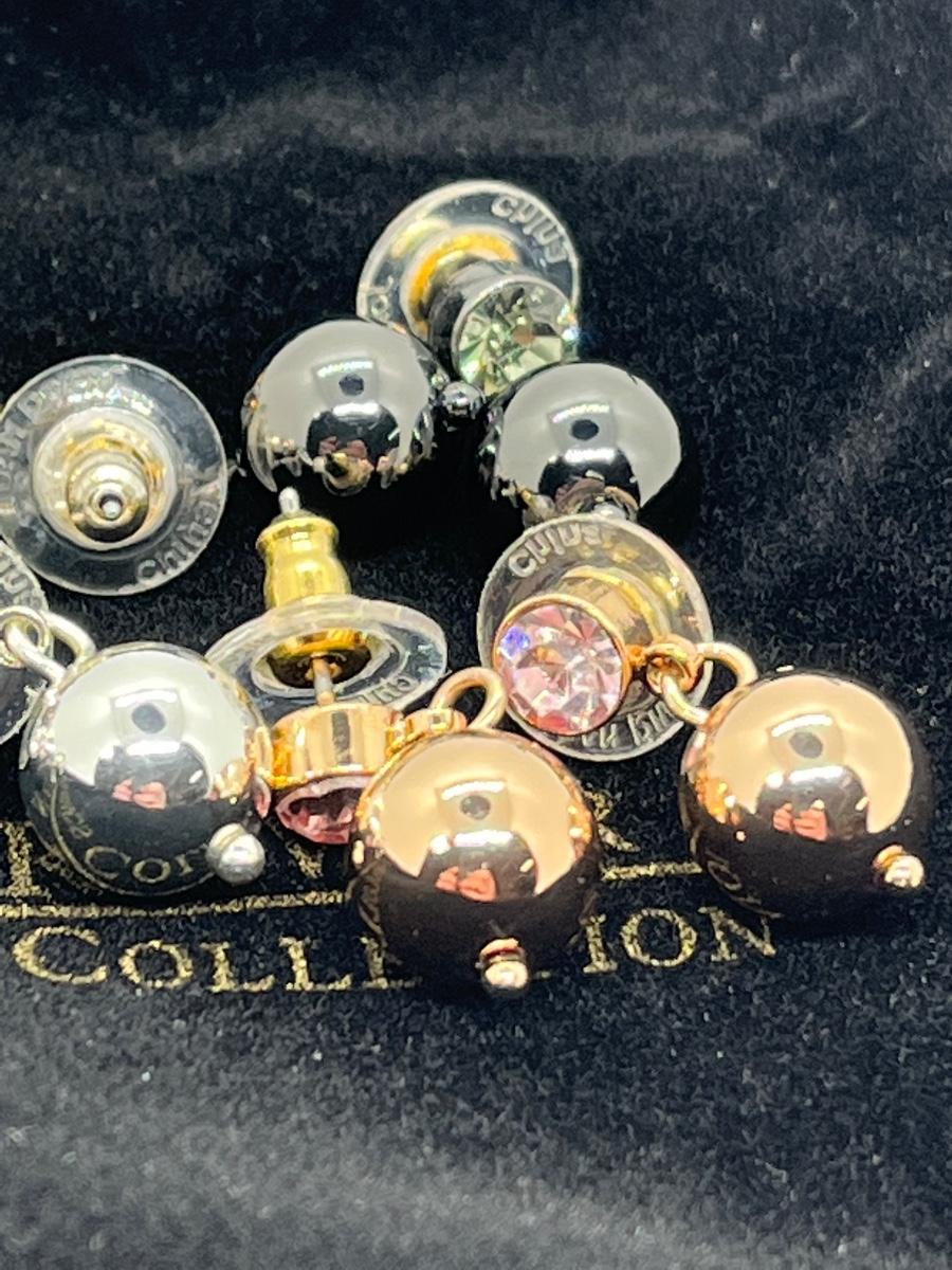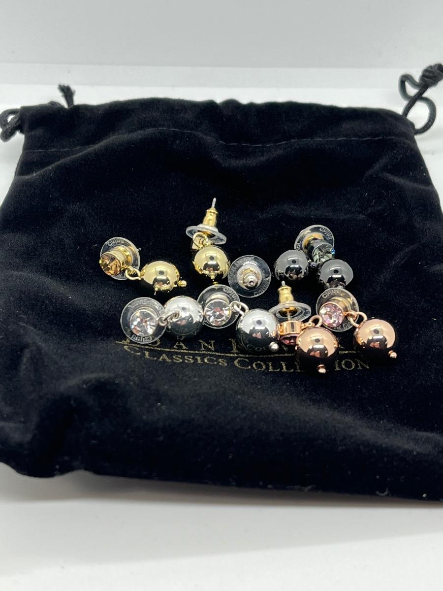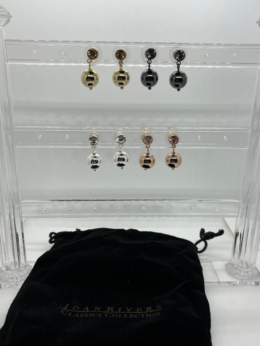 LOTJ45: New in box Joan Rivers Classics Collection Set of Four Pierced Metallic Drop Earrings with Crystal Posts