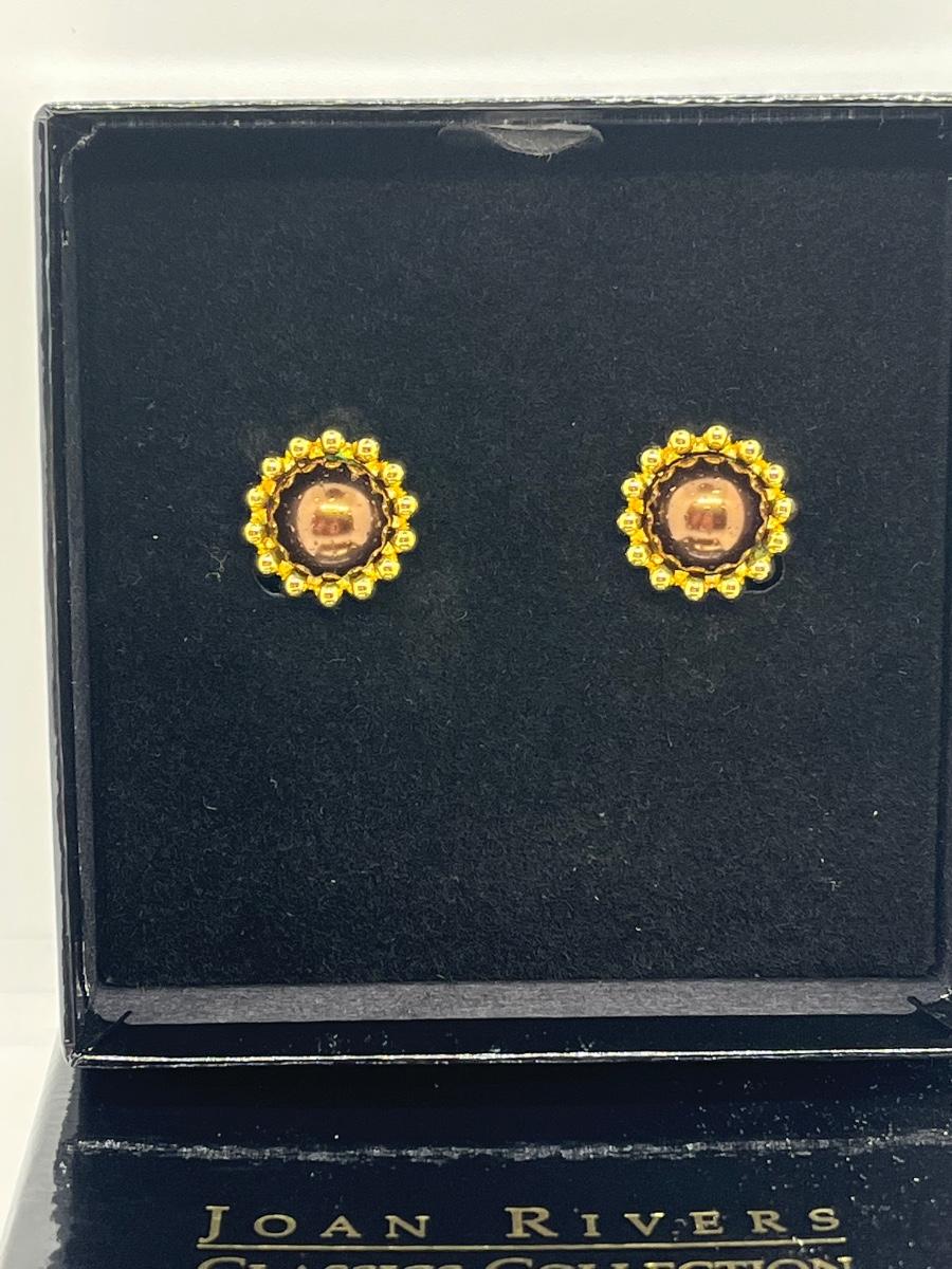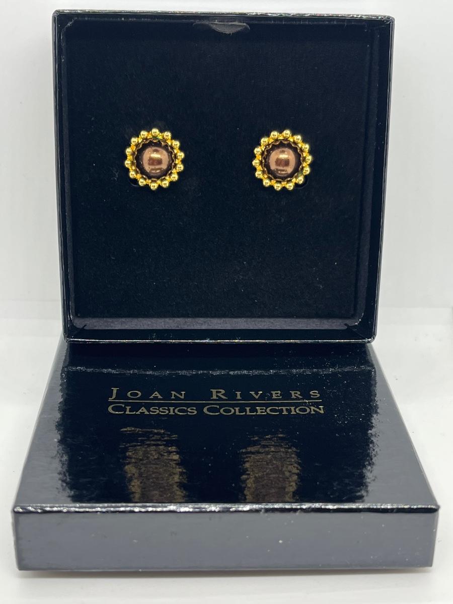 LOTJ47: New in box Joan Rivers Simulated Pearl Brown clip-on Earrings