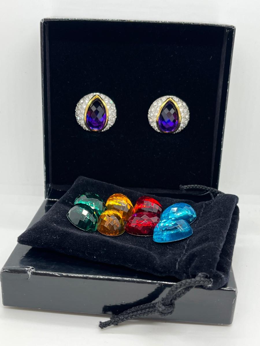 LOTJ50: New in box Joan Rivers Classics Collection Changeable Evening Pierced Clip Caged Earrings