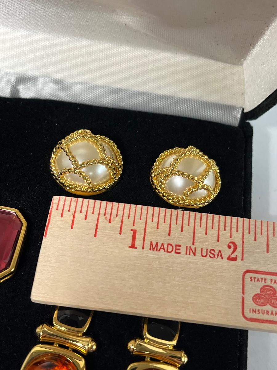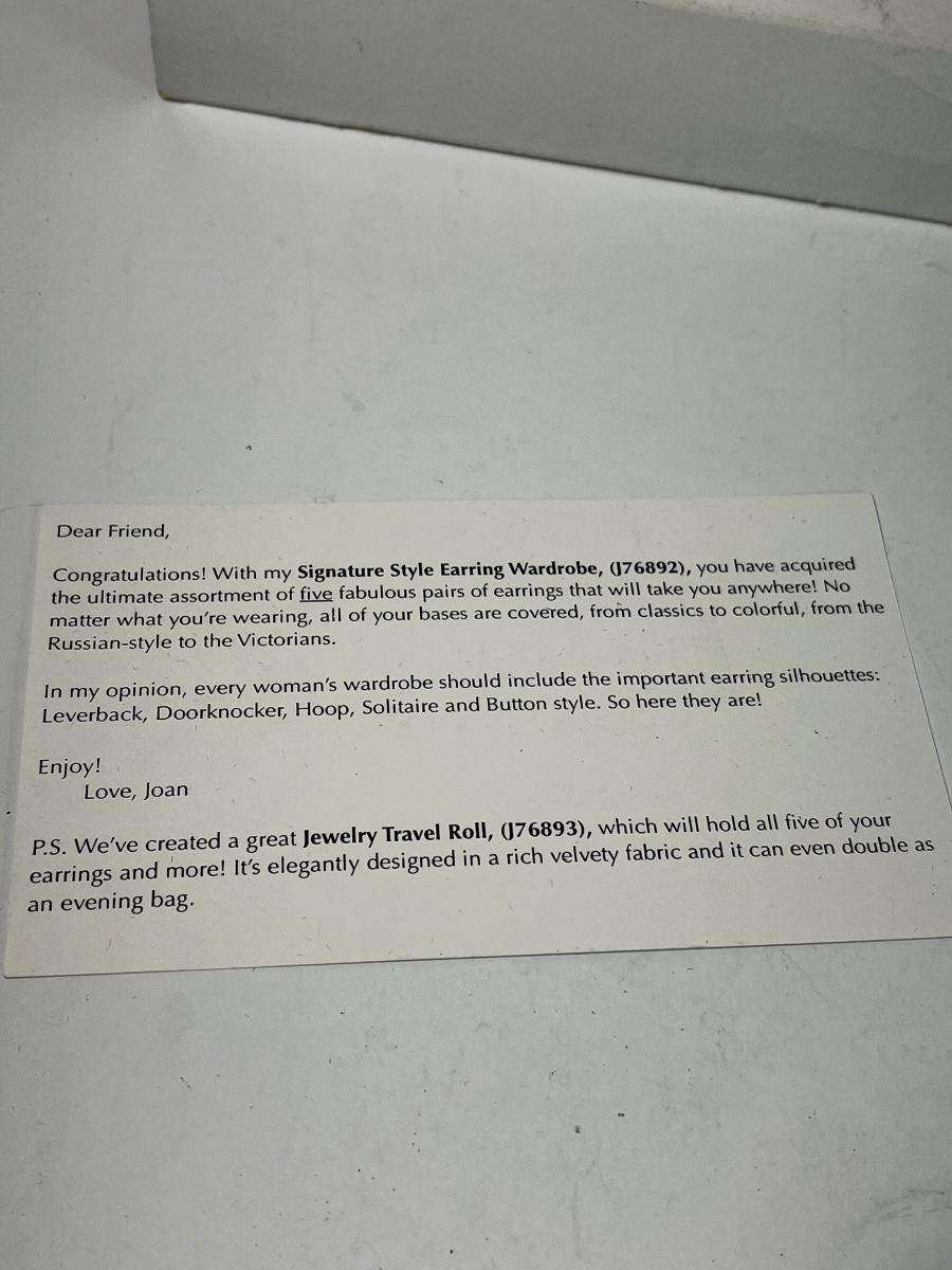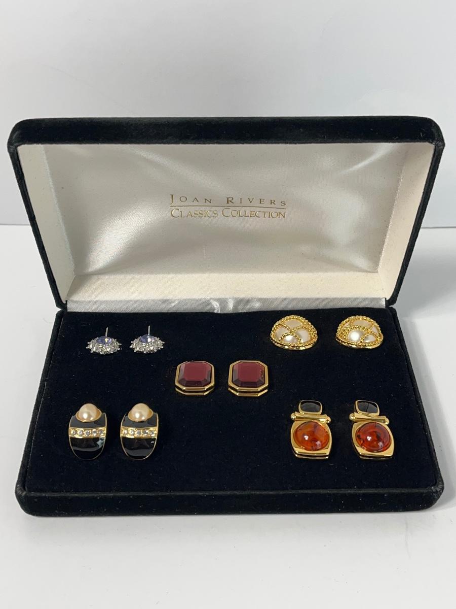 LOTJ57: New in box Joan Rivers Signature Style Earring Wardrobe- 5 Pair Pierced Earrings- Lever Back-Door knocker-Hoop-Solitaire and Button style