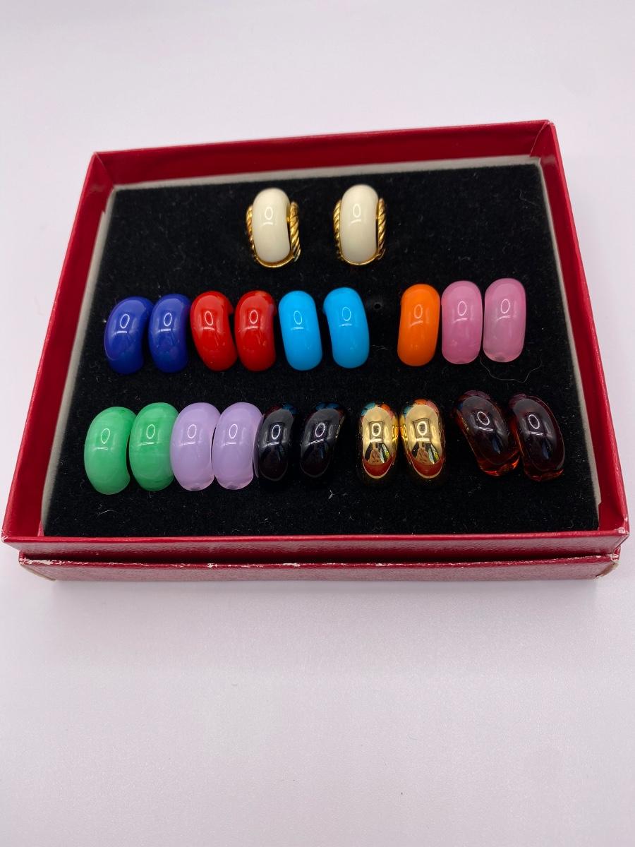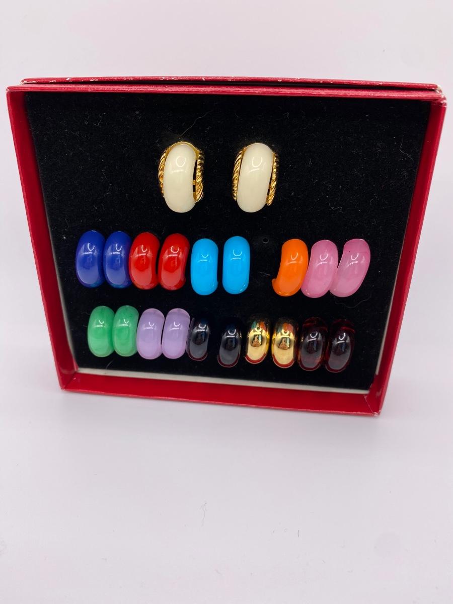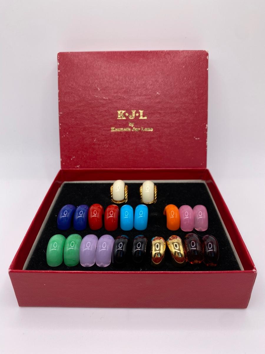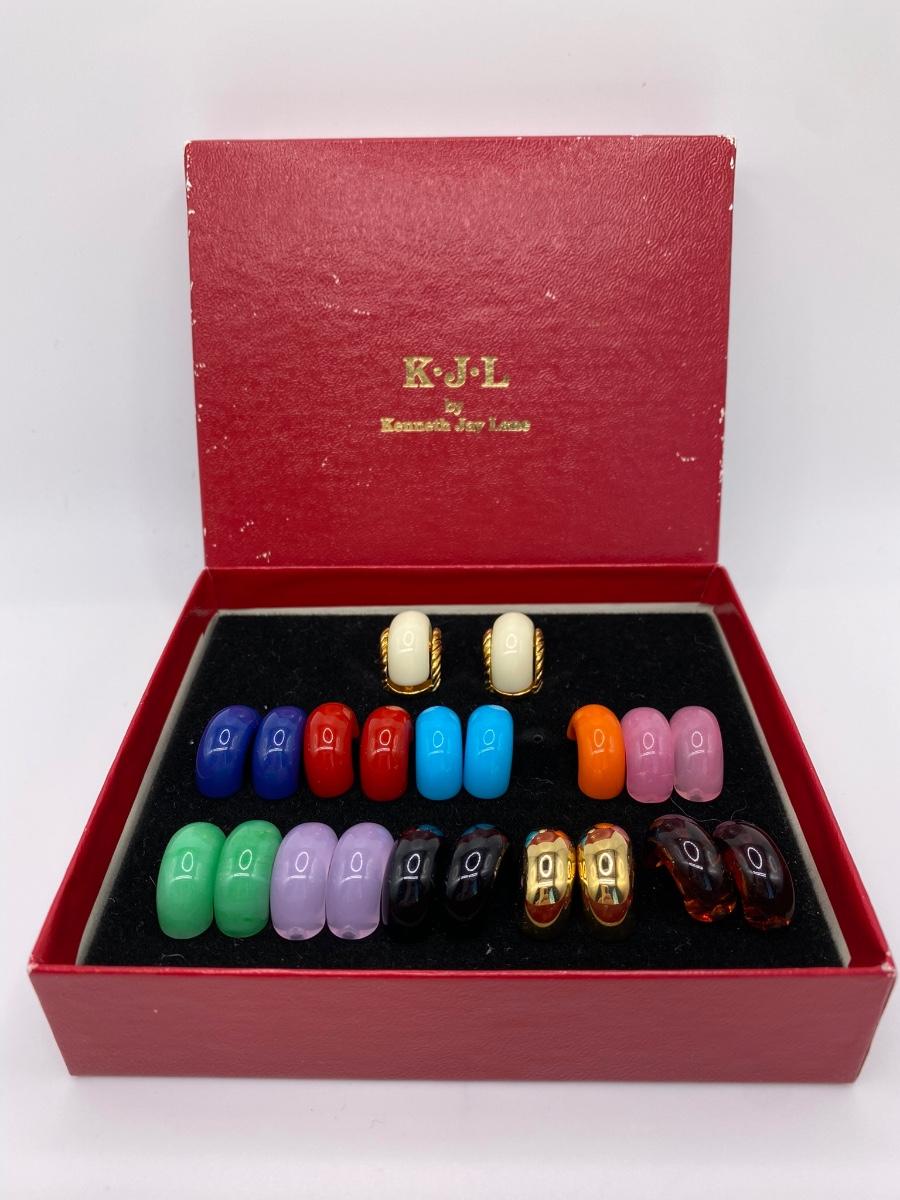 LOTJ62: New in Box KJL by Kenneth Jay Lane Multicolor Changeable Pierced Goldtone Earrings