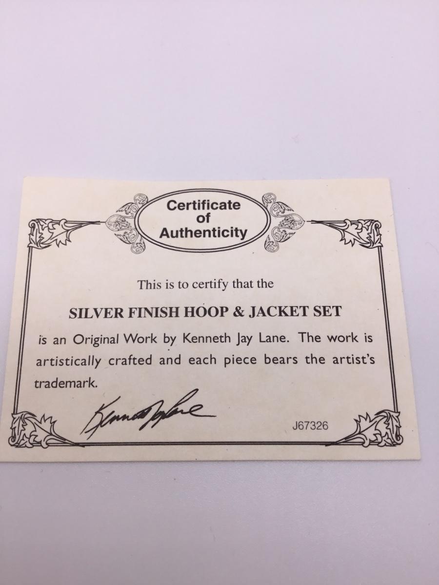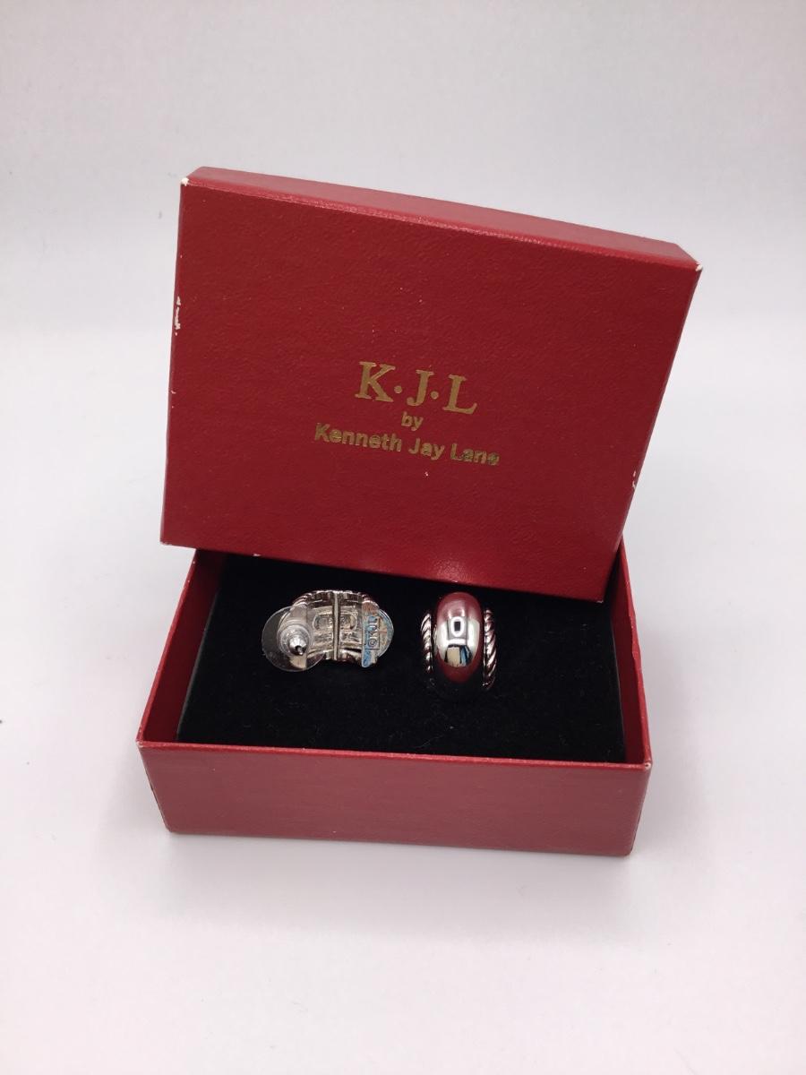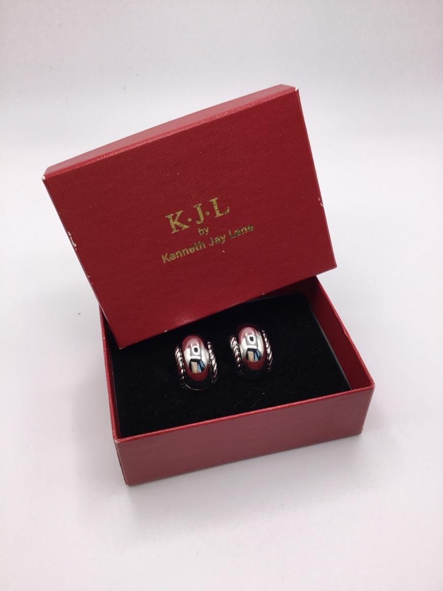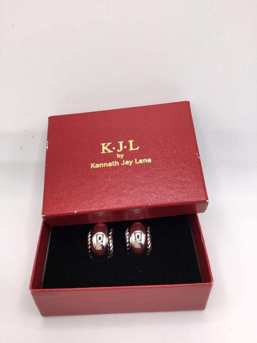 LOTJ65: New in box KJL by Kenneth Jay Lane Silvertone Pierced Earrings  Screenshot Screenshot