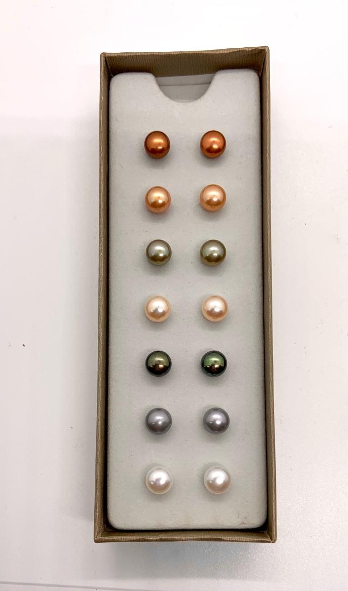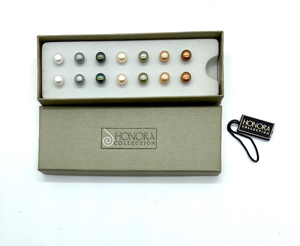 LOTJ82: New in box Honora Sterling and Cultured Pearl Button Stud Earrings- Seven pair variety of colors