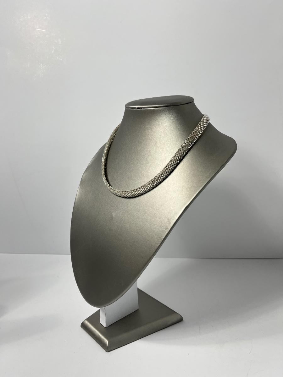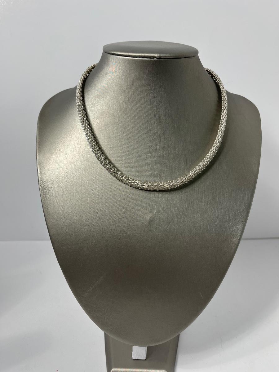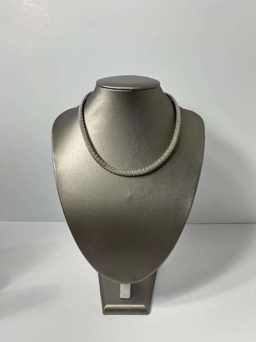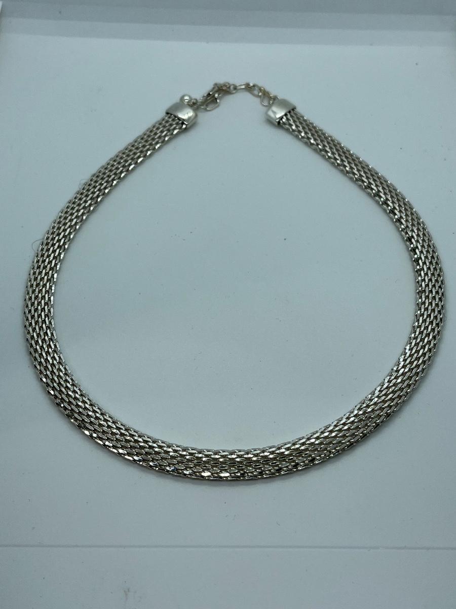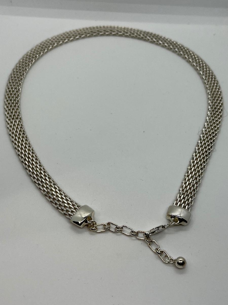 LOTJ96: New in box Thick 39g Sterling Silver Domed Mesh Adjustable Collar Necklace 16"-18"