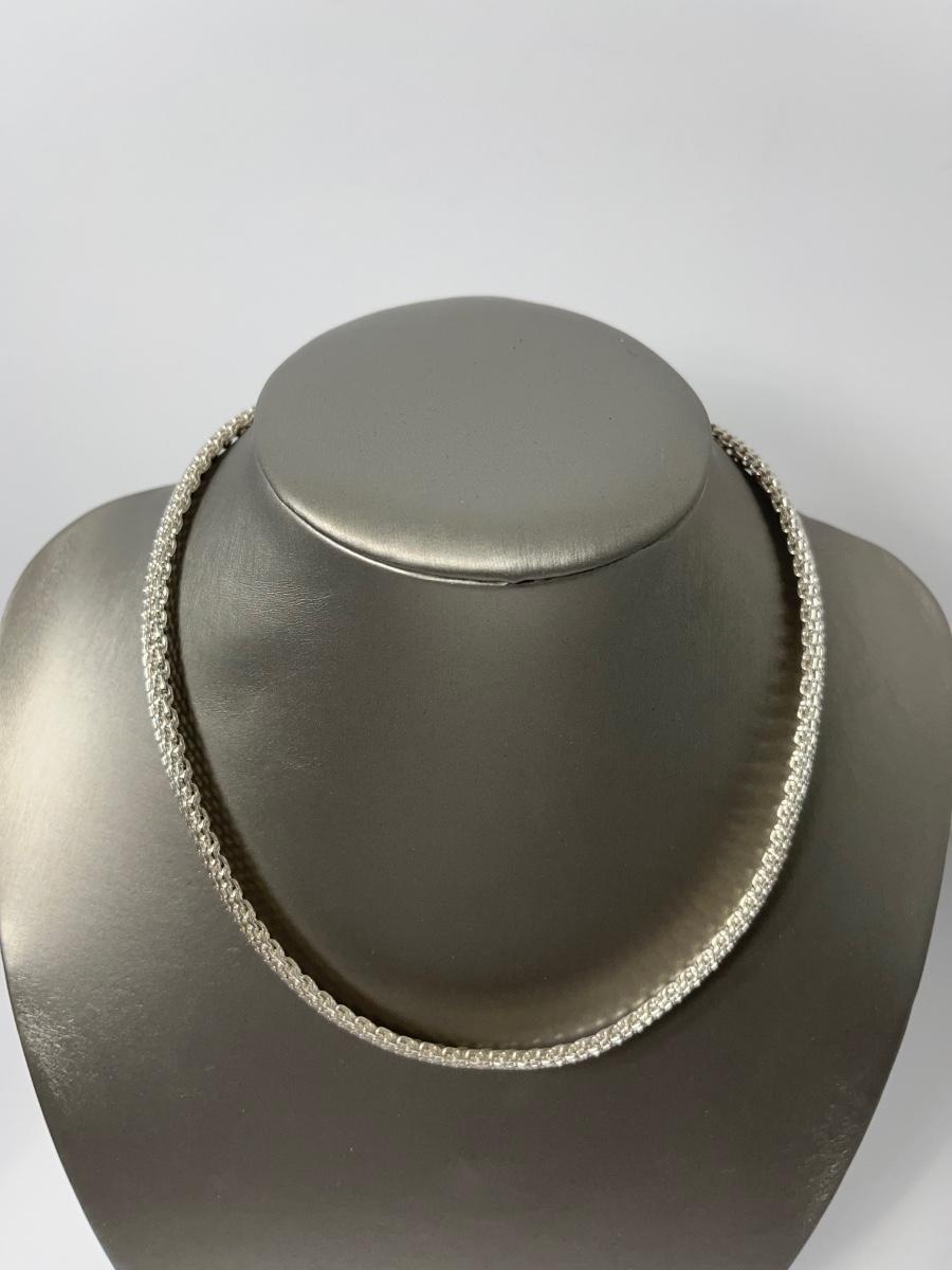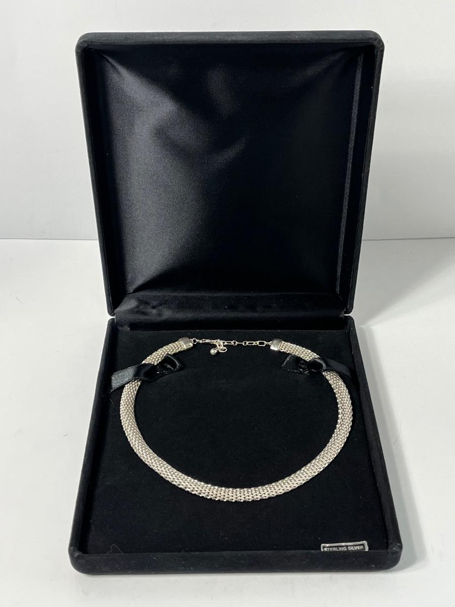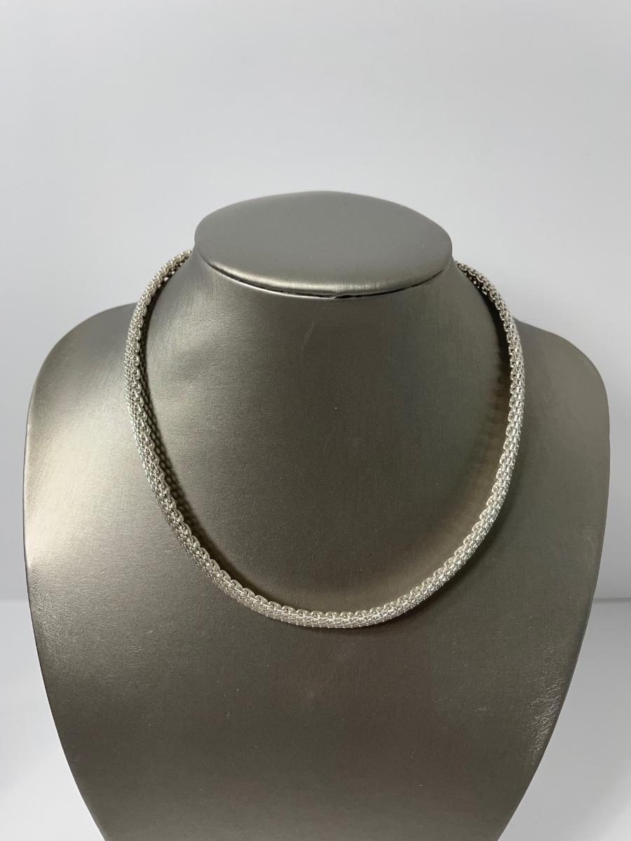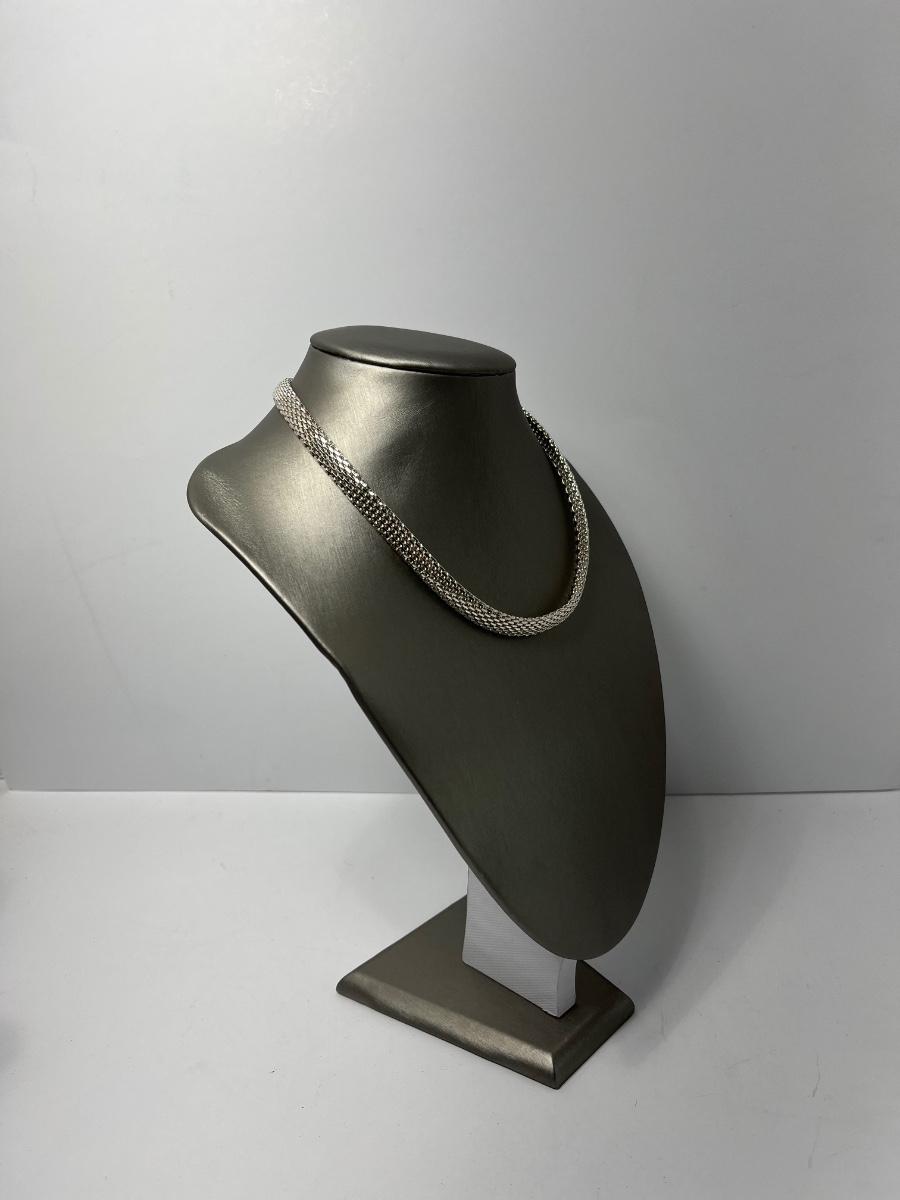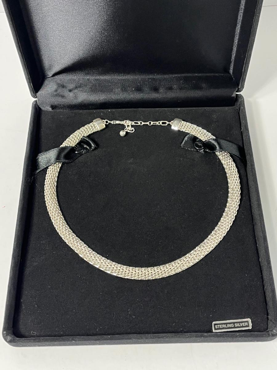 LOTJ96: New in box Thick 39g Sterling Silver Domed Mesh Adjustable Collar Necklace 16"-18"