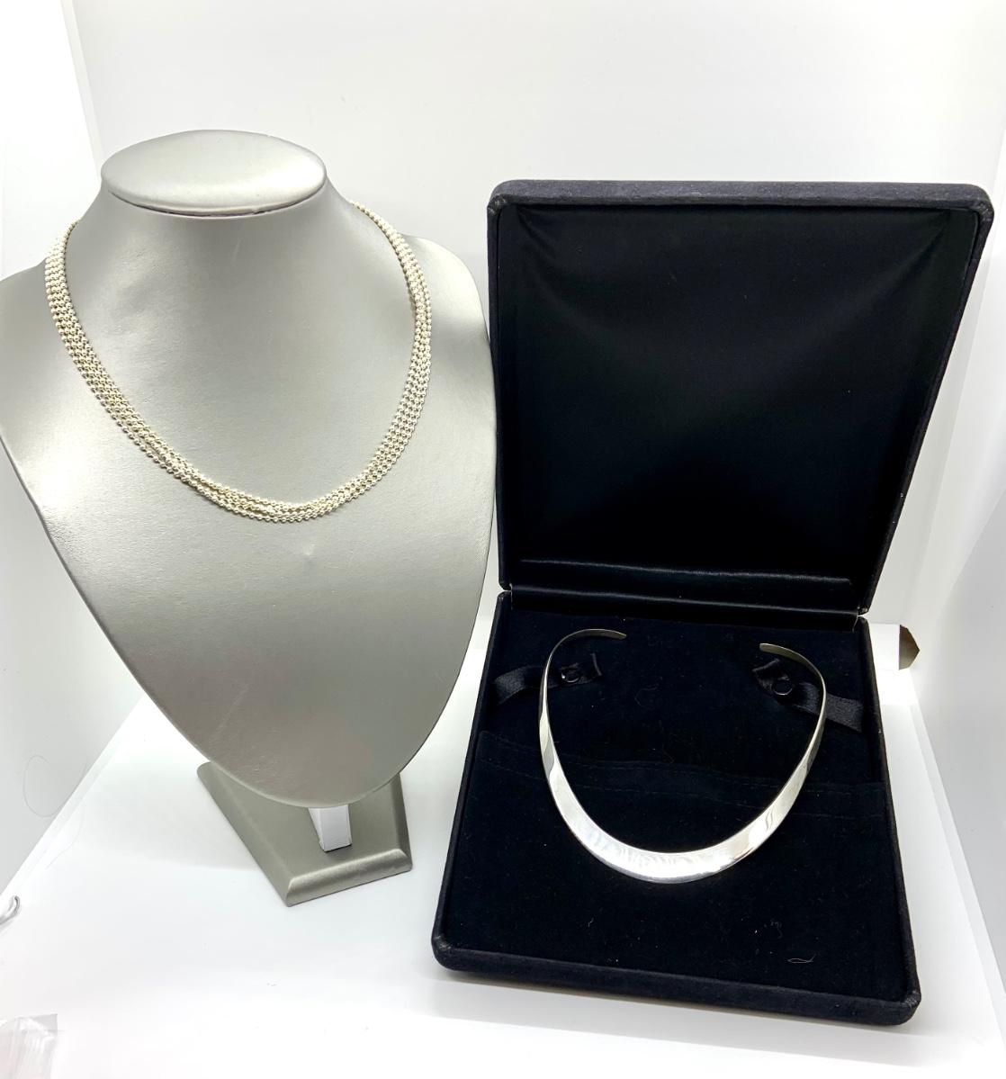LOTJ99: Sterling Graduated u collar Necklace and  Sterling 4 strand 18" Necklace Milor, Italy