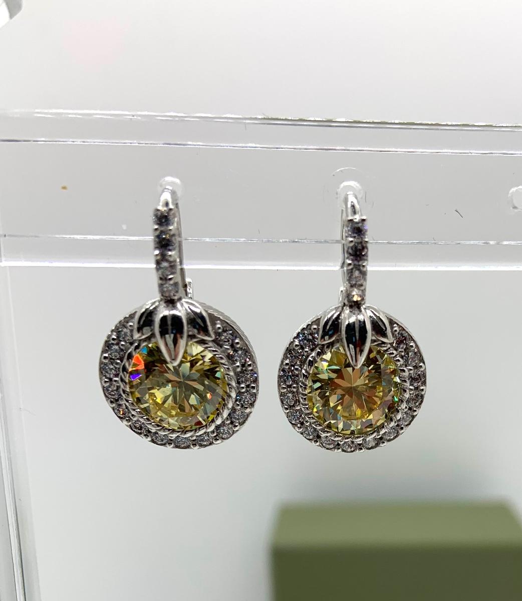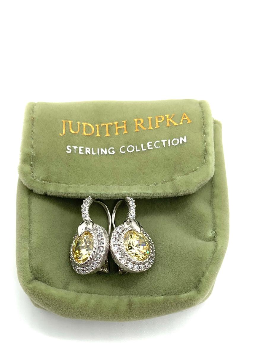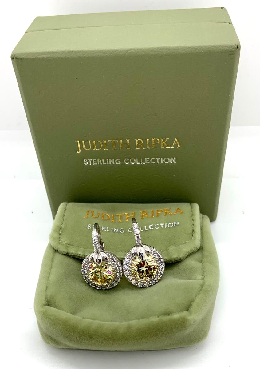 LOTJ105: New in box Judith Ripka Sterling Yellow & White Diamonique Lotus Pierced Earrings