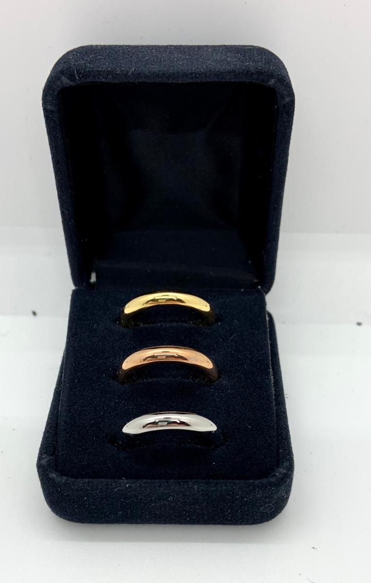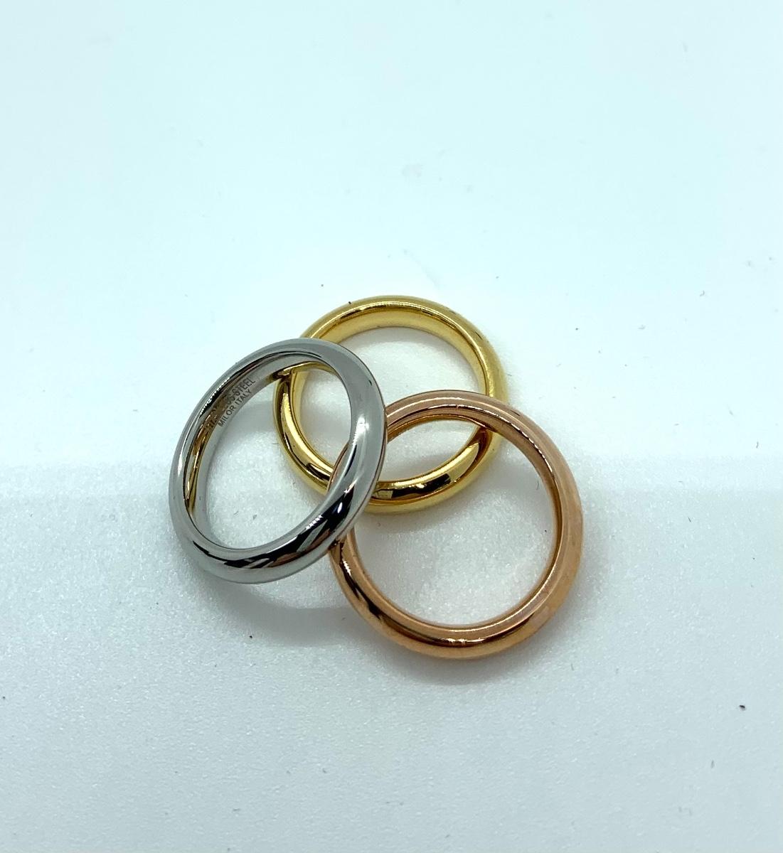 LOTJ106: New in Box Steel by Design Set of Three Silk Fit Rings Stainless/18k Clad Size 6