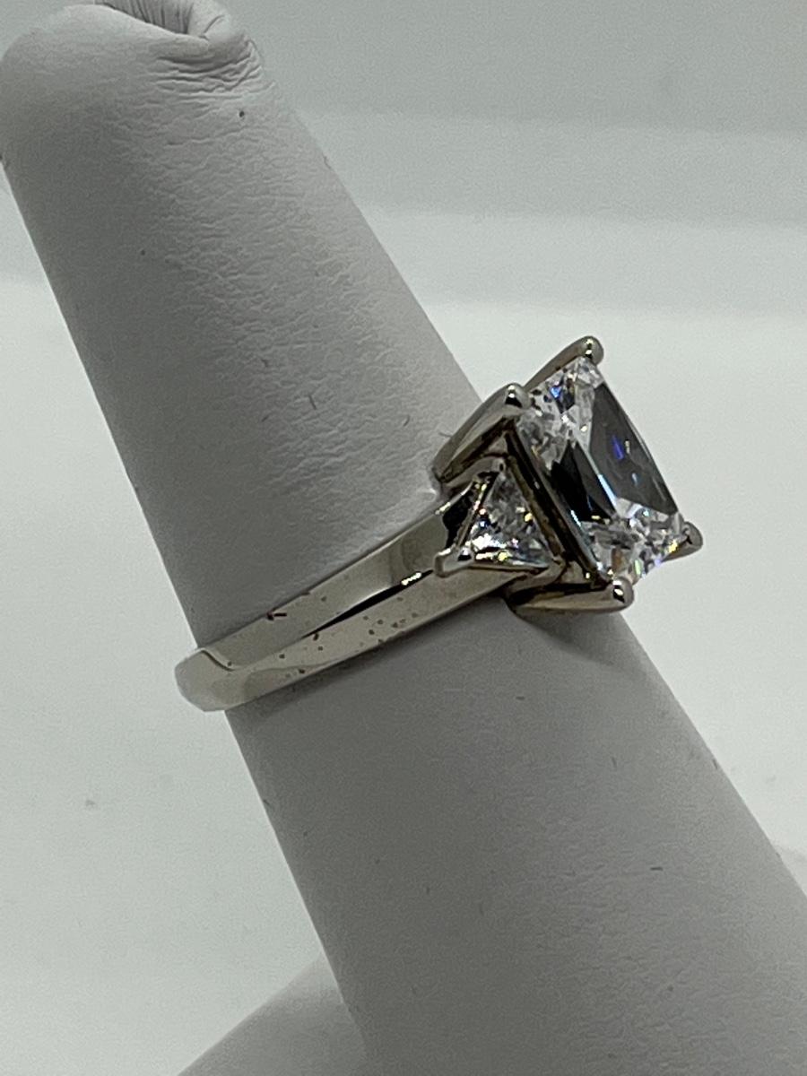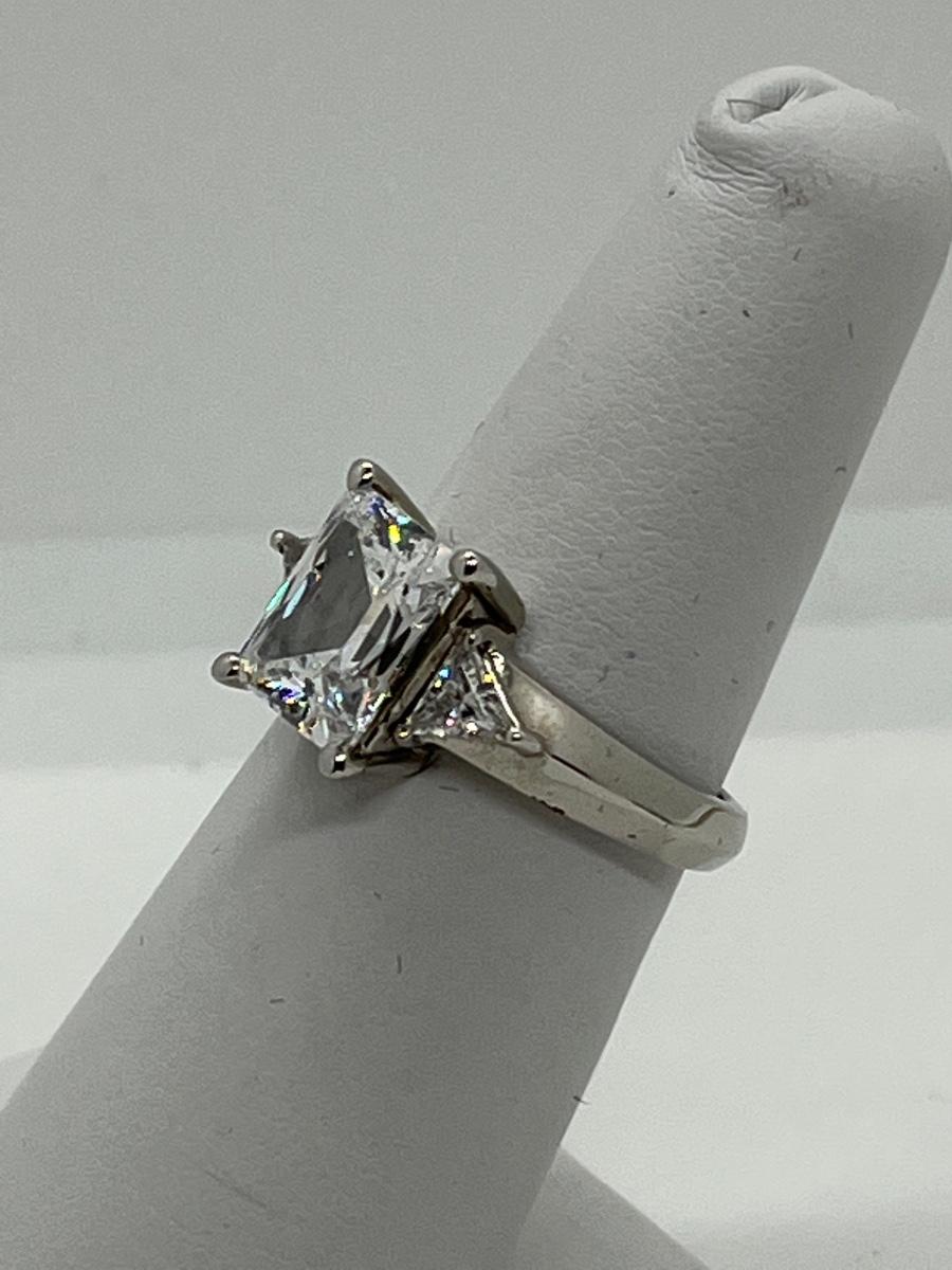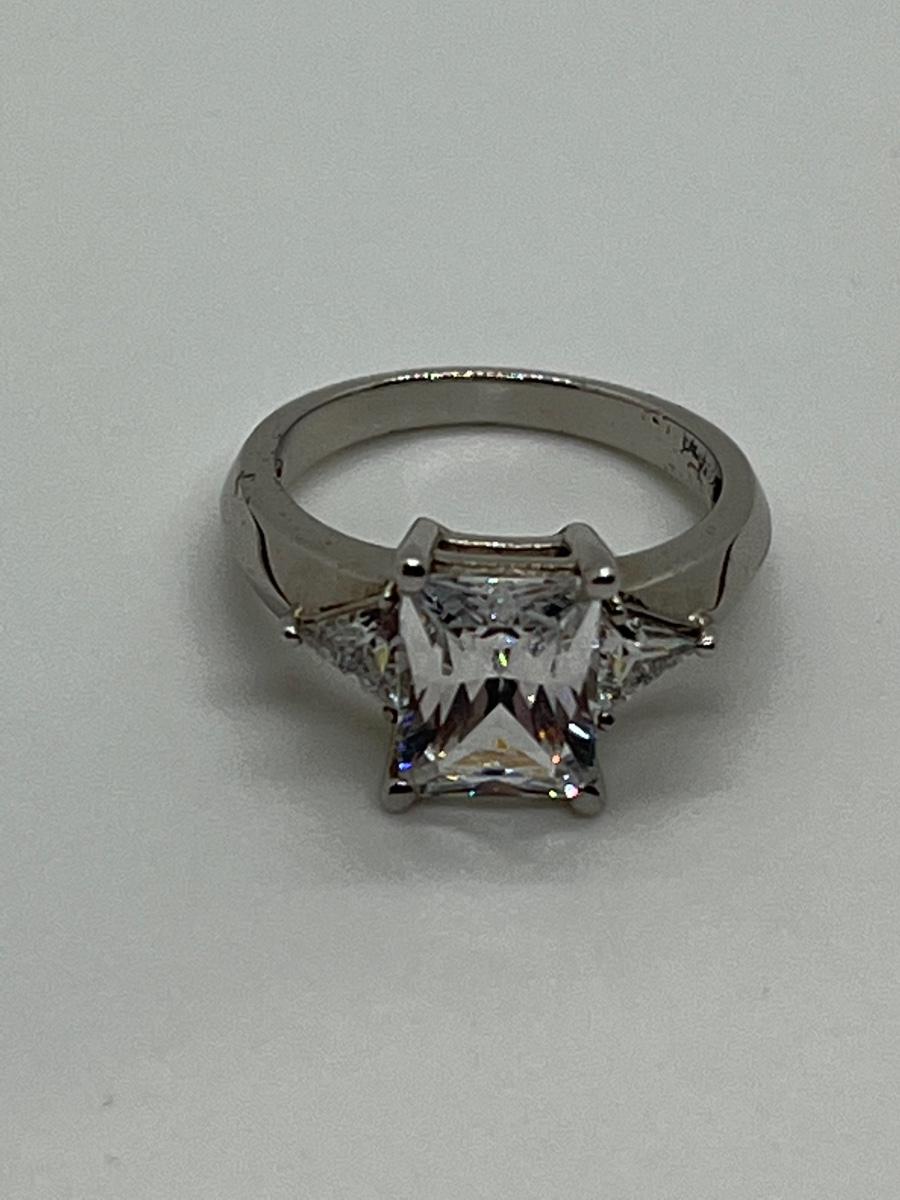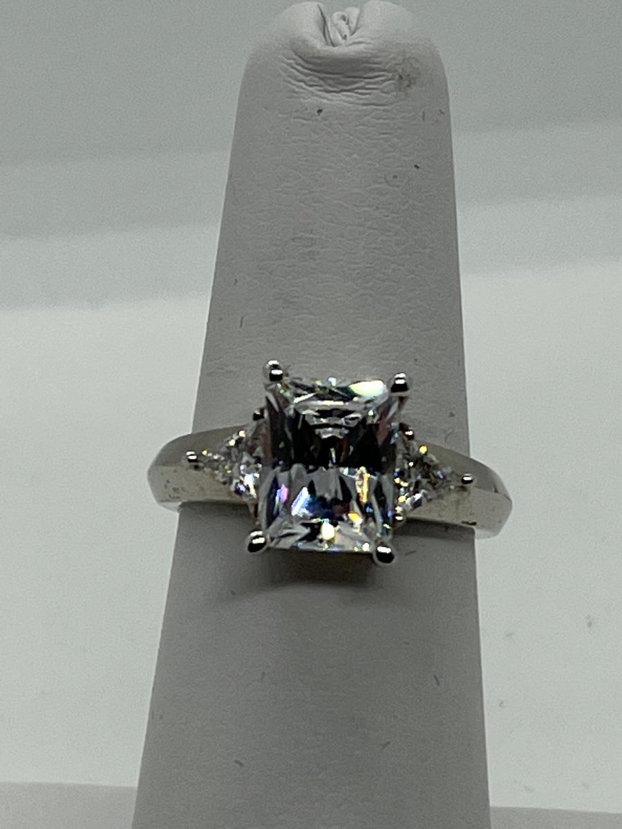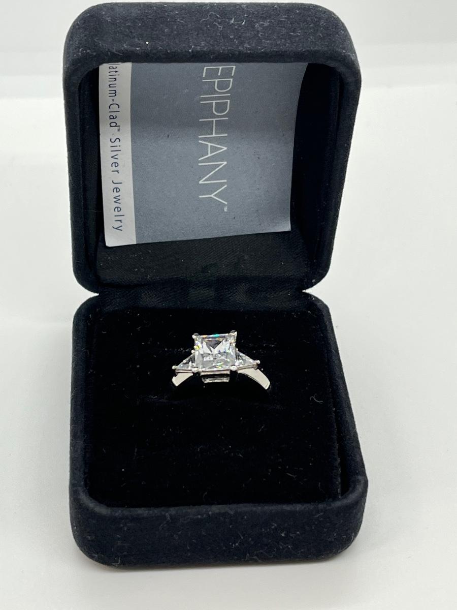 LOTJ114: Epiphany Platinum Clad Diamonique Radiant Cut Ring sz. 6