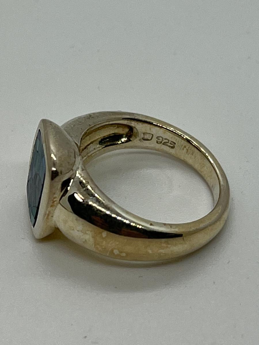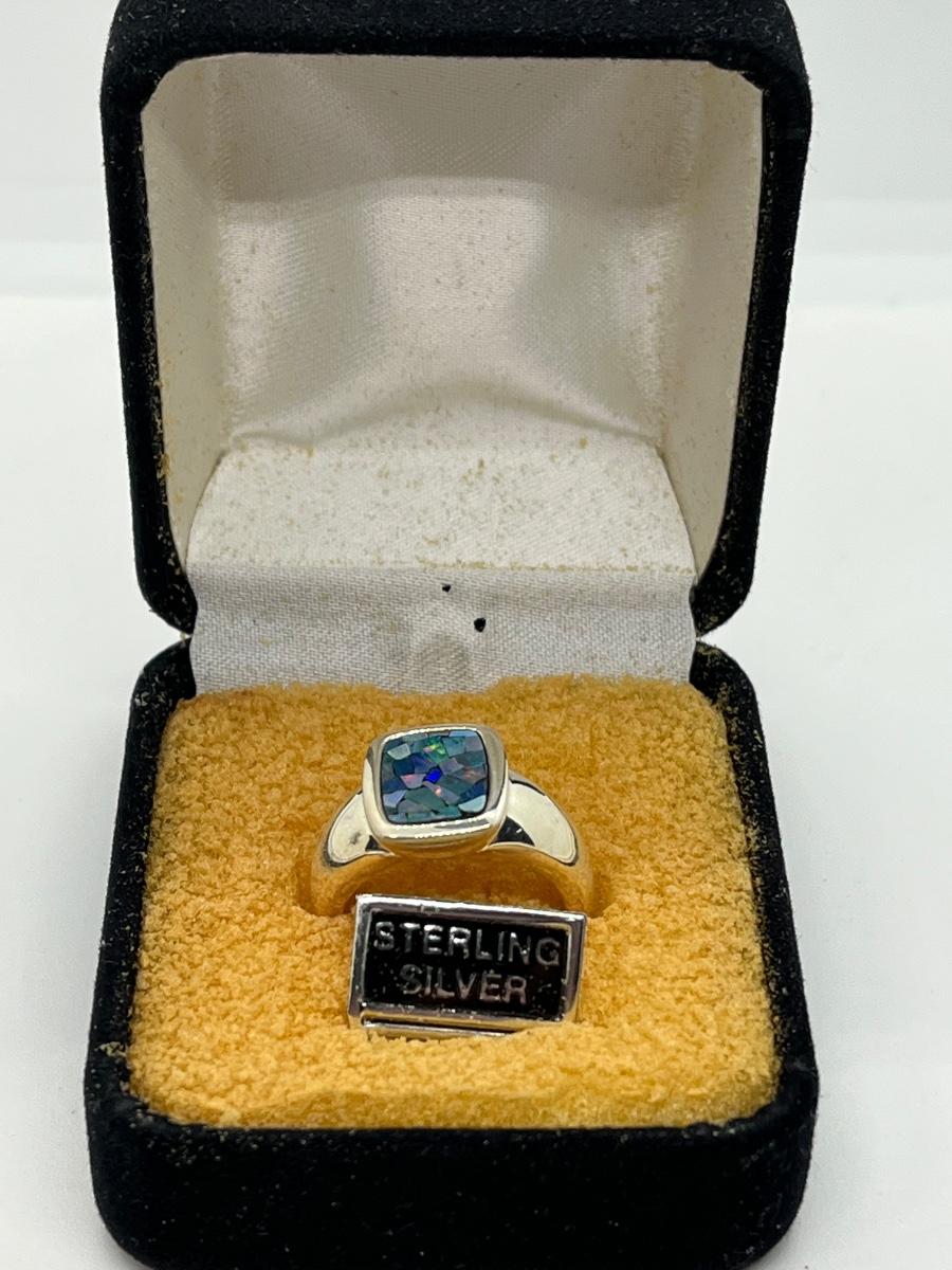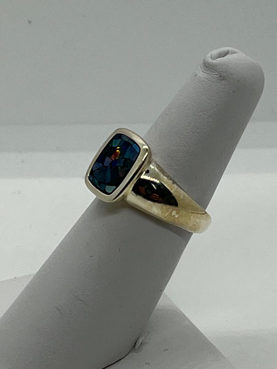 LOTJ115: Sterling Australian Opal Mosaic Doublet Cushion Ring sz. 6