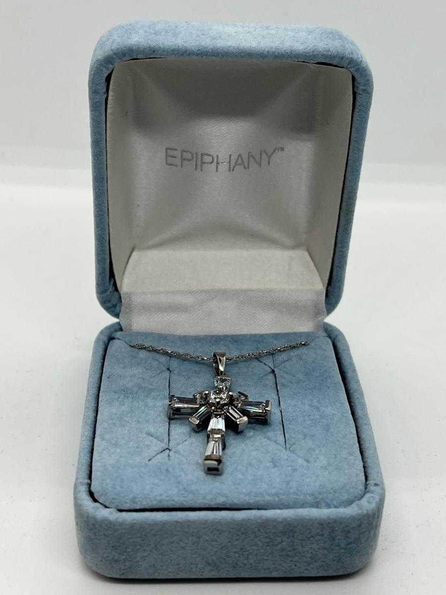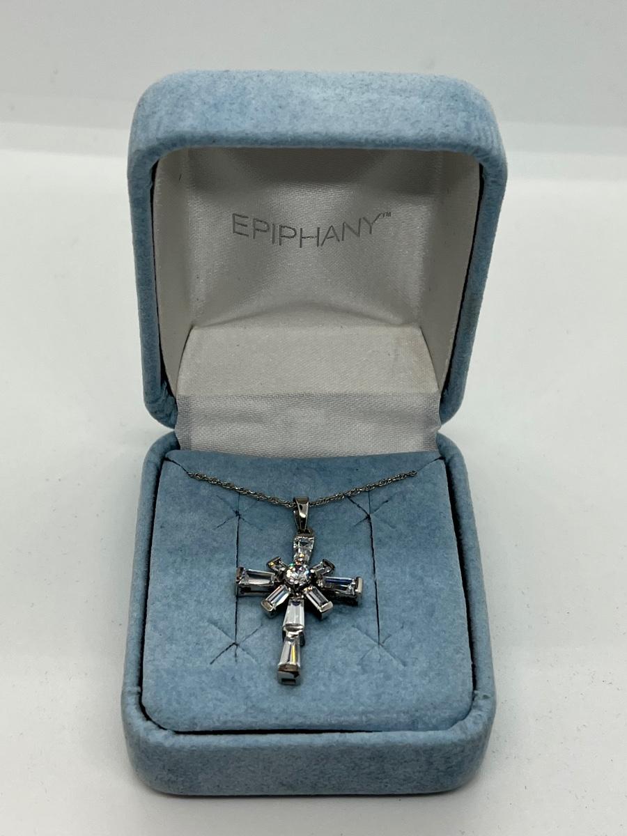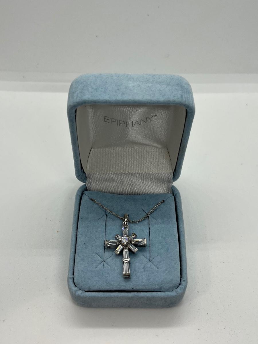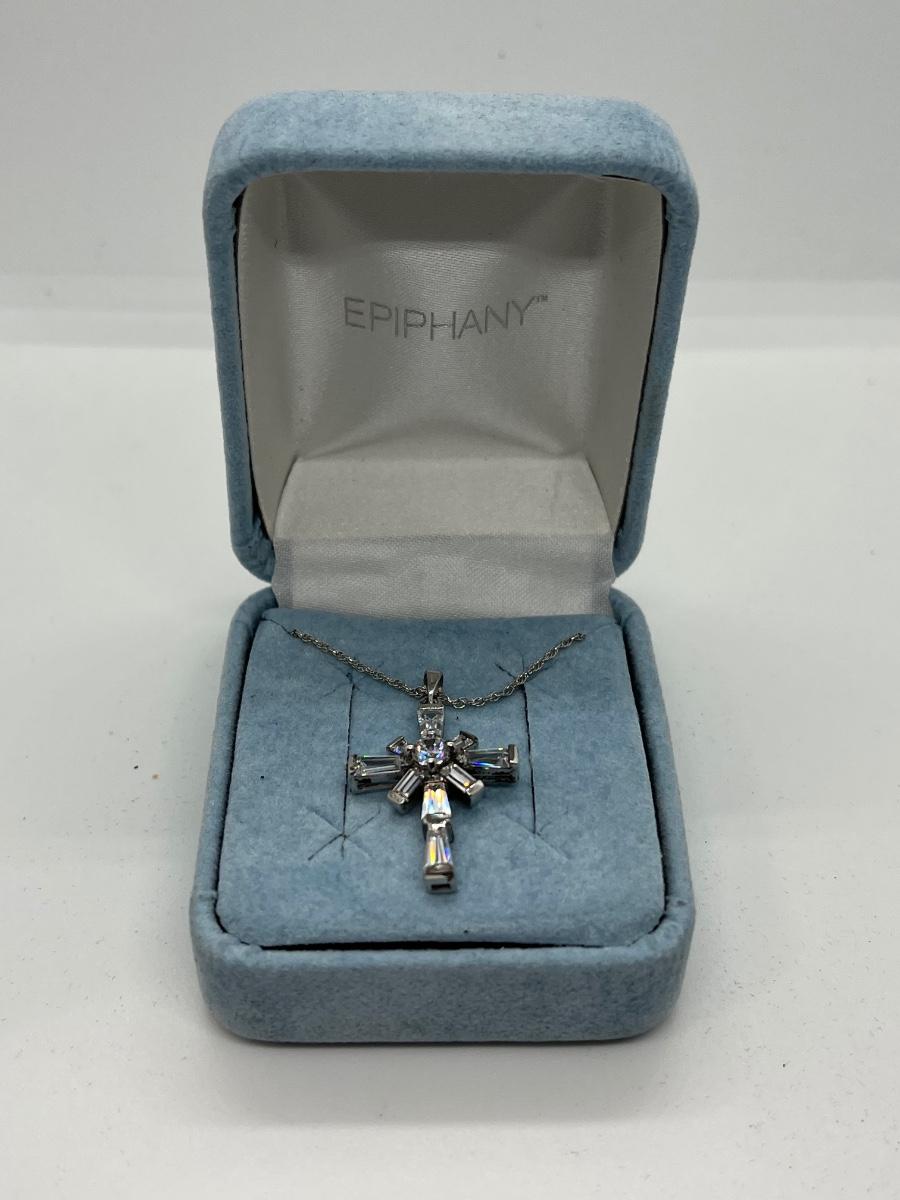 LOTJ120: New in box Epiphany Platinum Clad Diamonique Cross