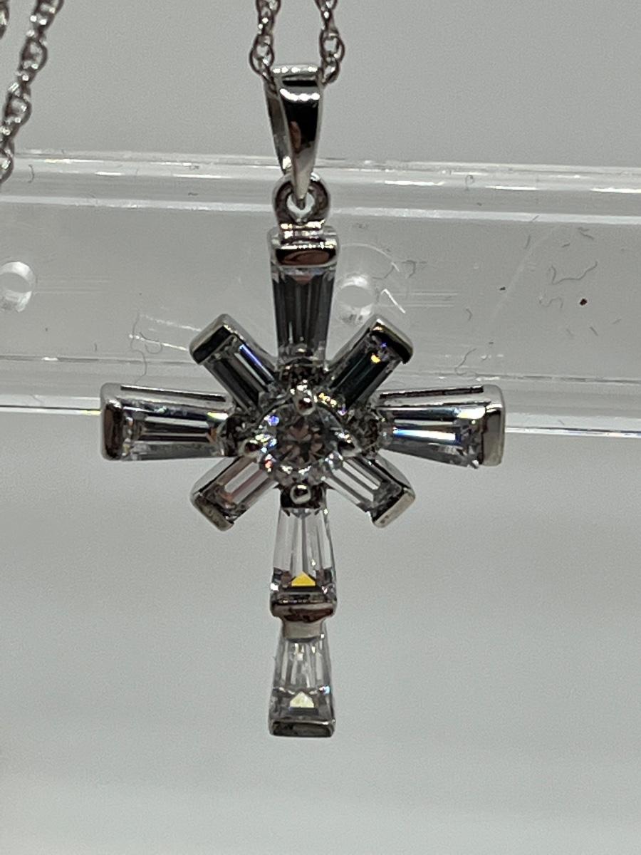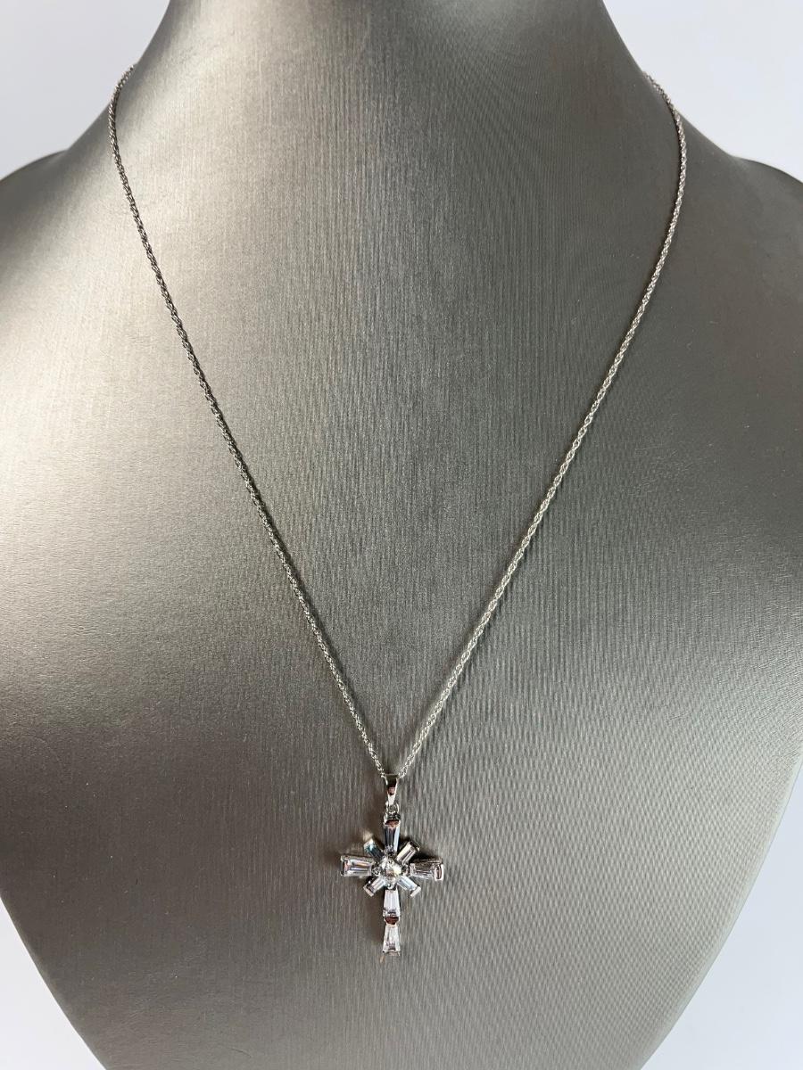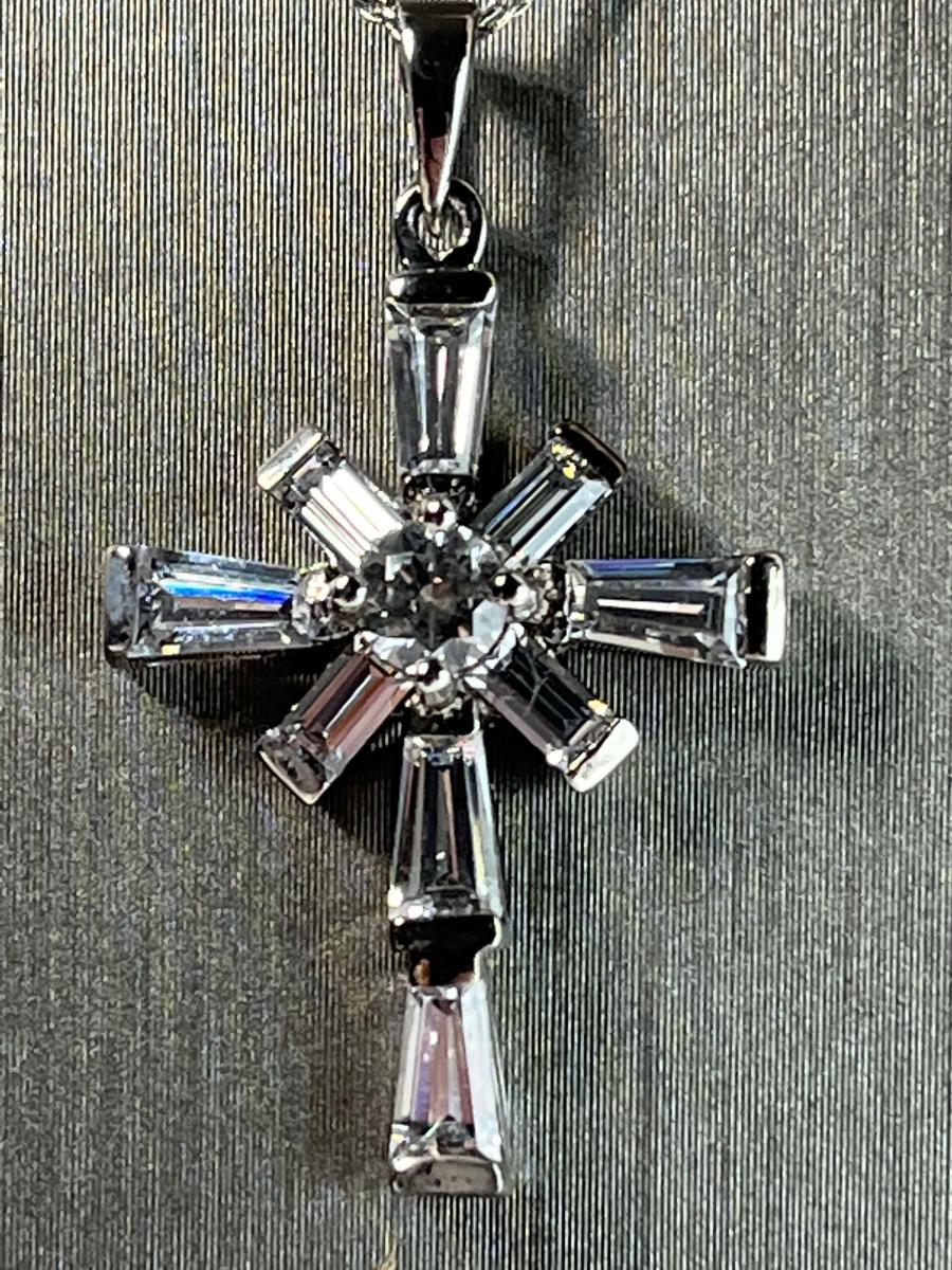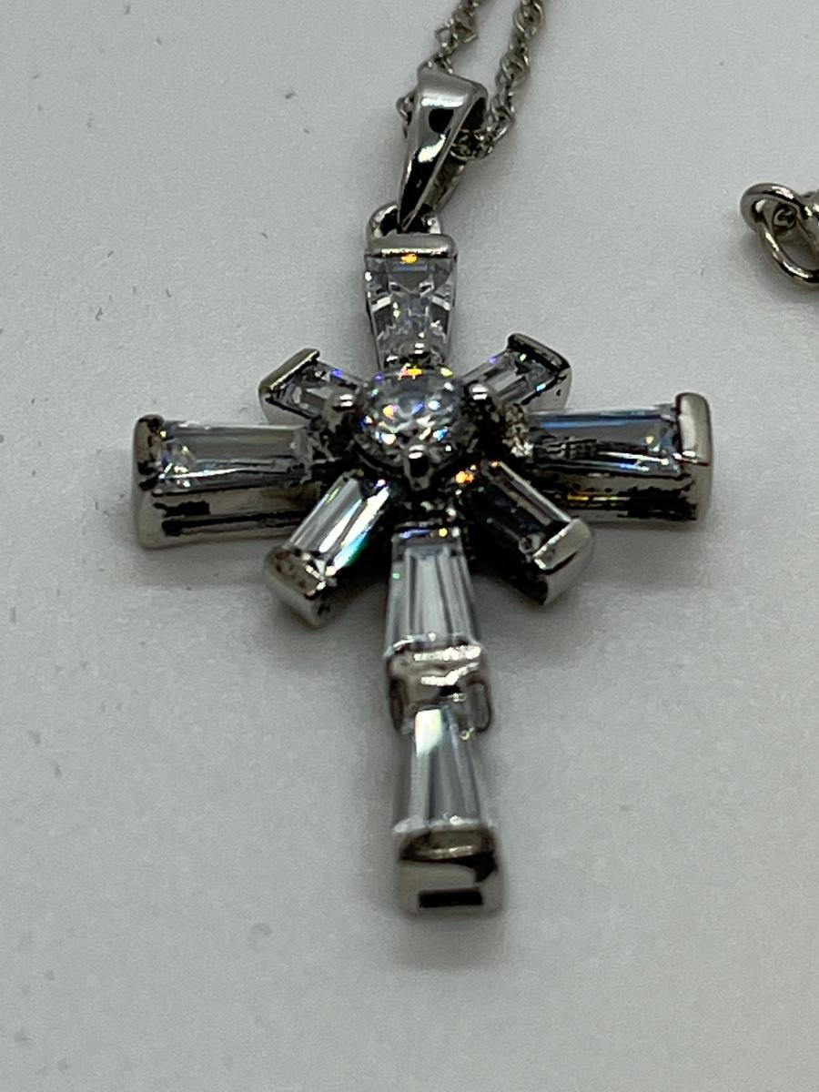 LOTJ120: New in box Epiphany Platinum Clad Diamonique Cross
