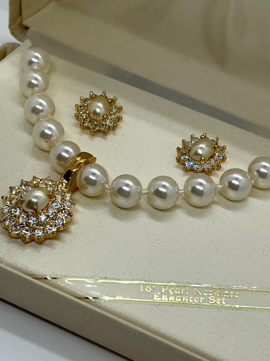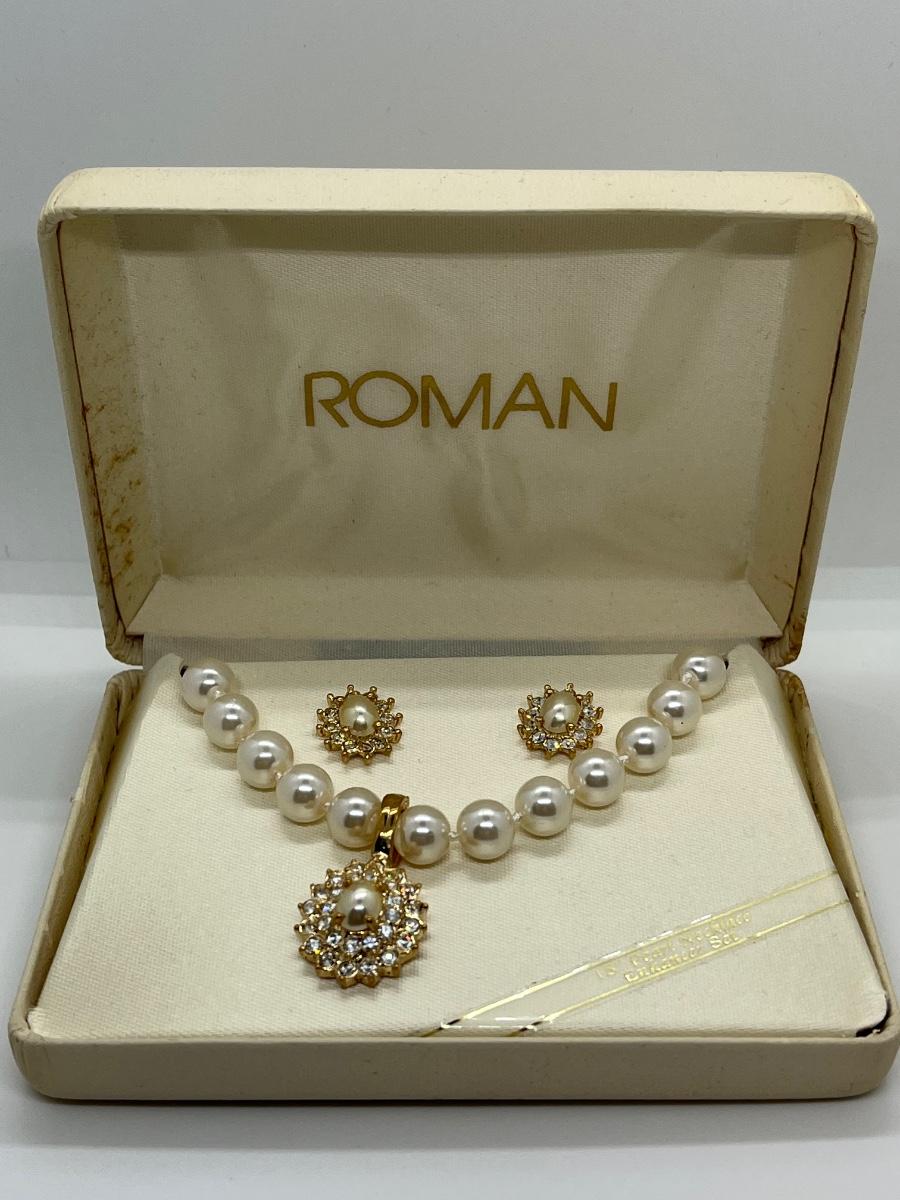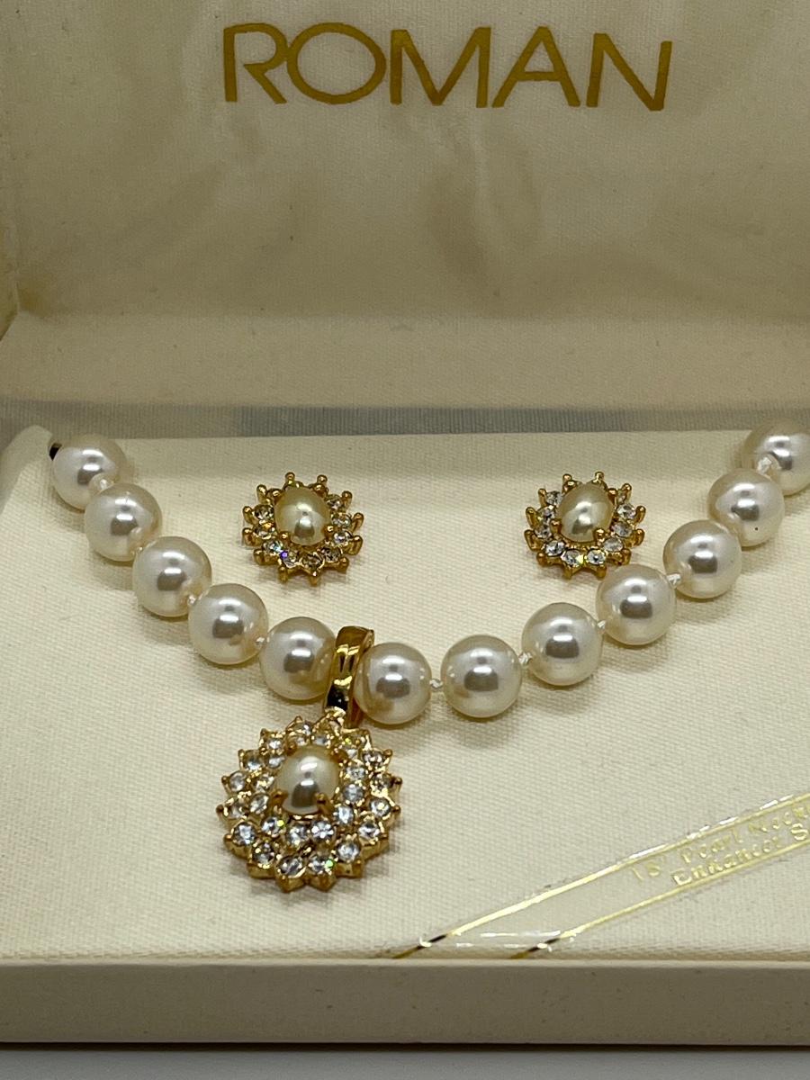 LOTJ125: New in Box Roman's Simulated Pearl Enhancer 18"L Necklace and Pierced Earrings Set