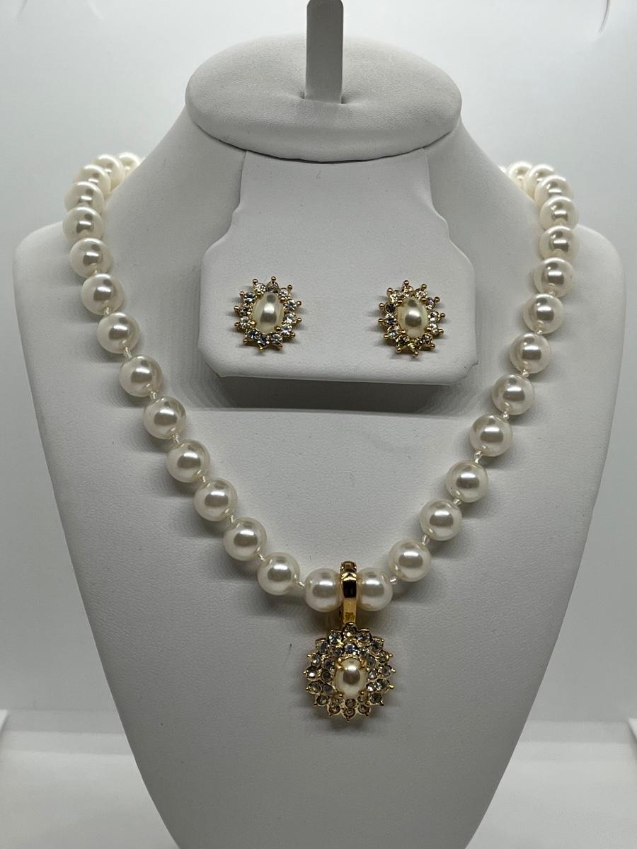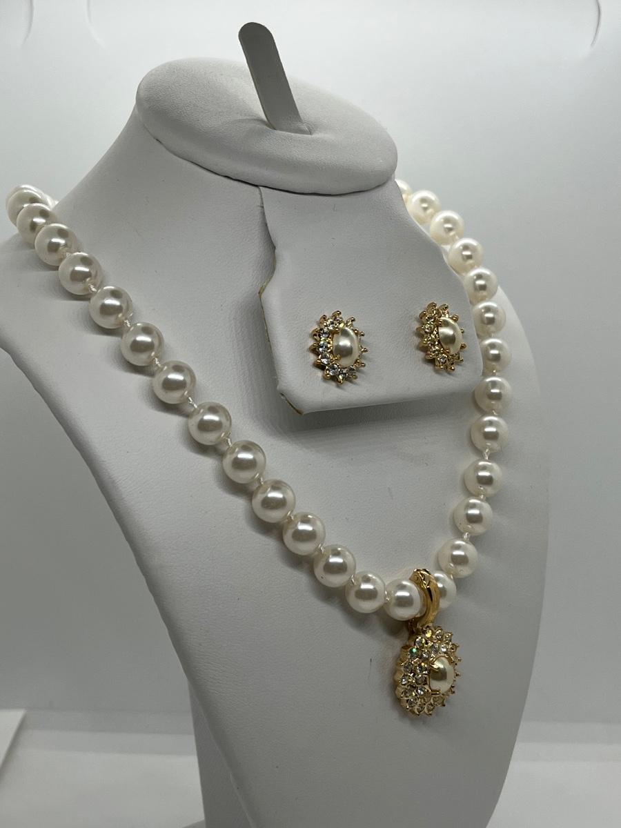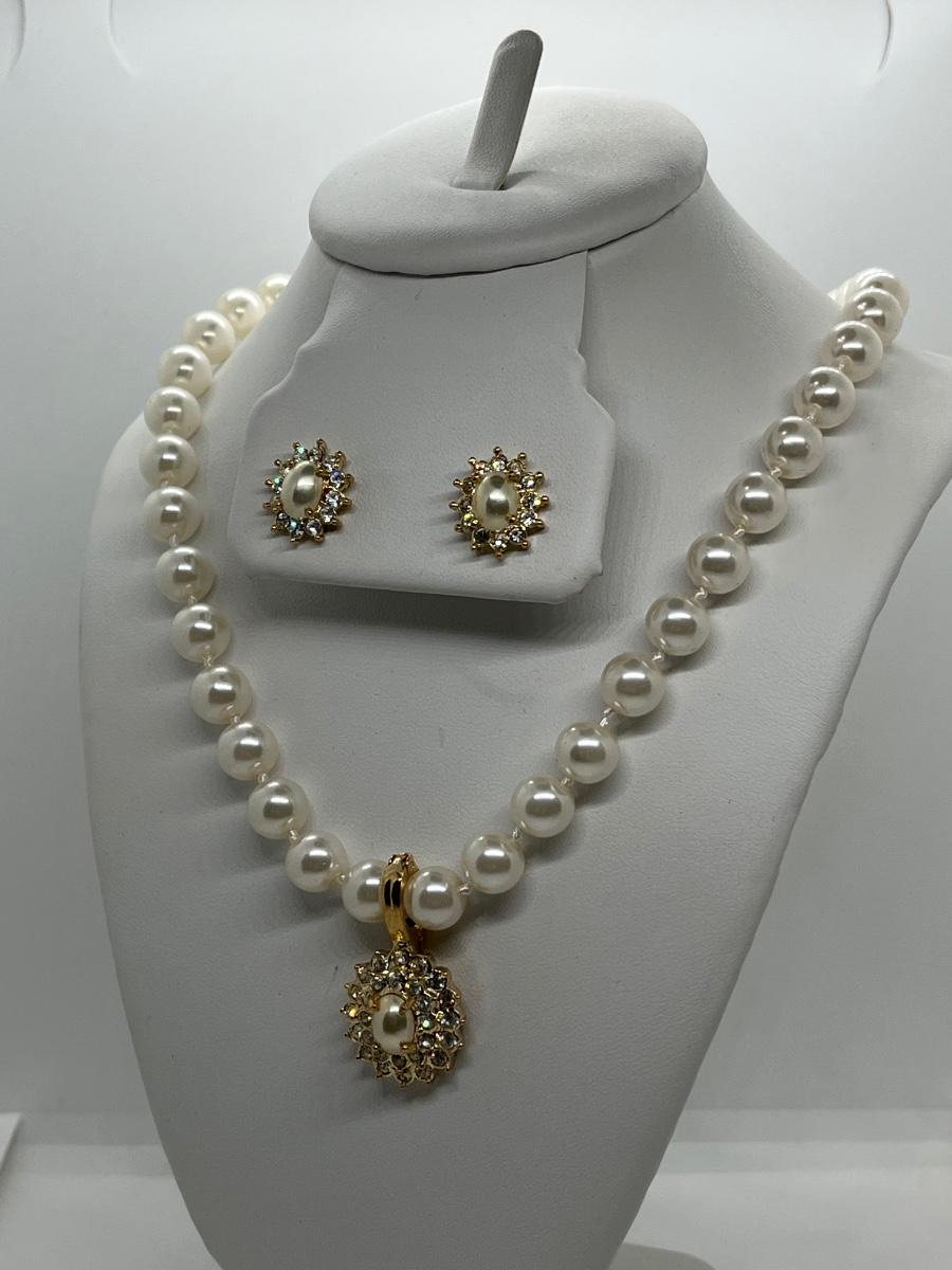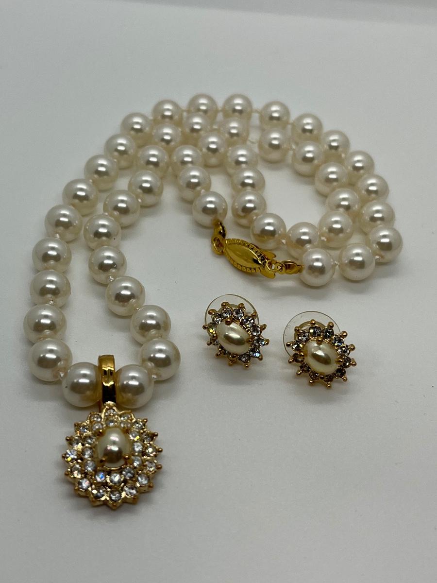 LOTJ125: New in Box Roman's Simulated Pearl Enhancer 18"L Necklace and Pierced Earrings Set