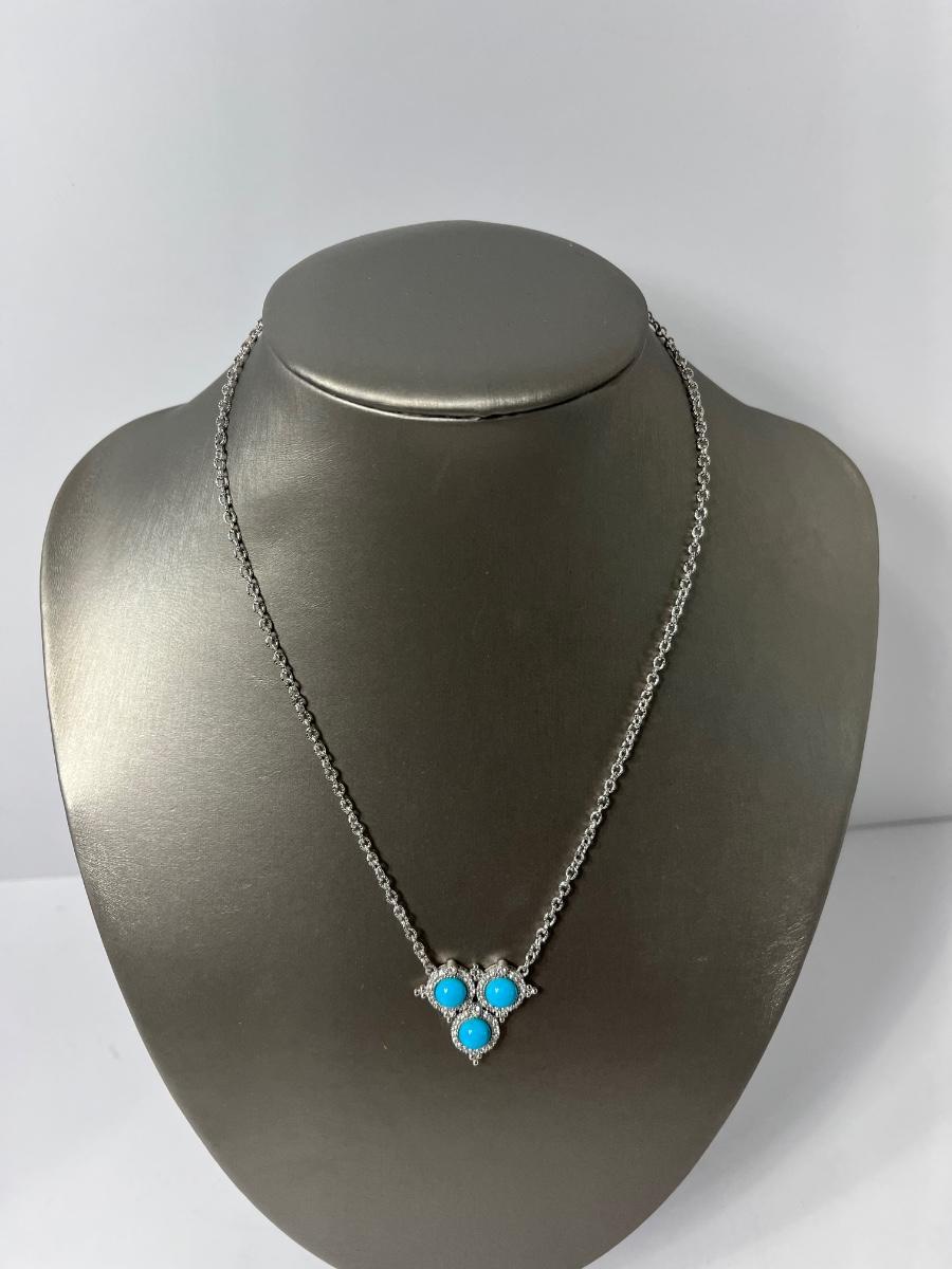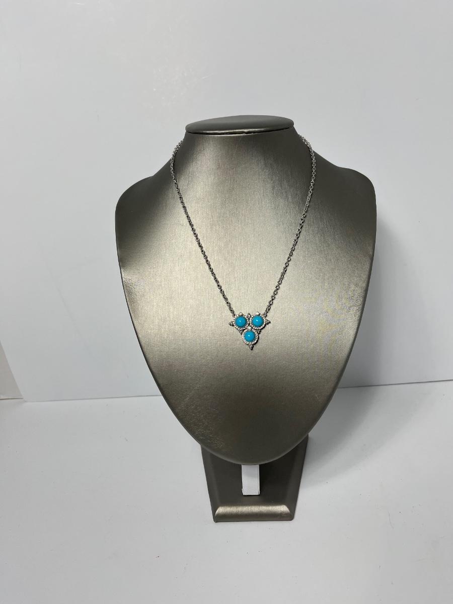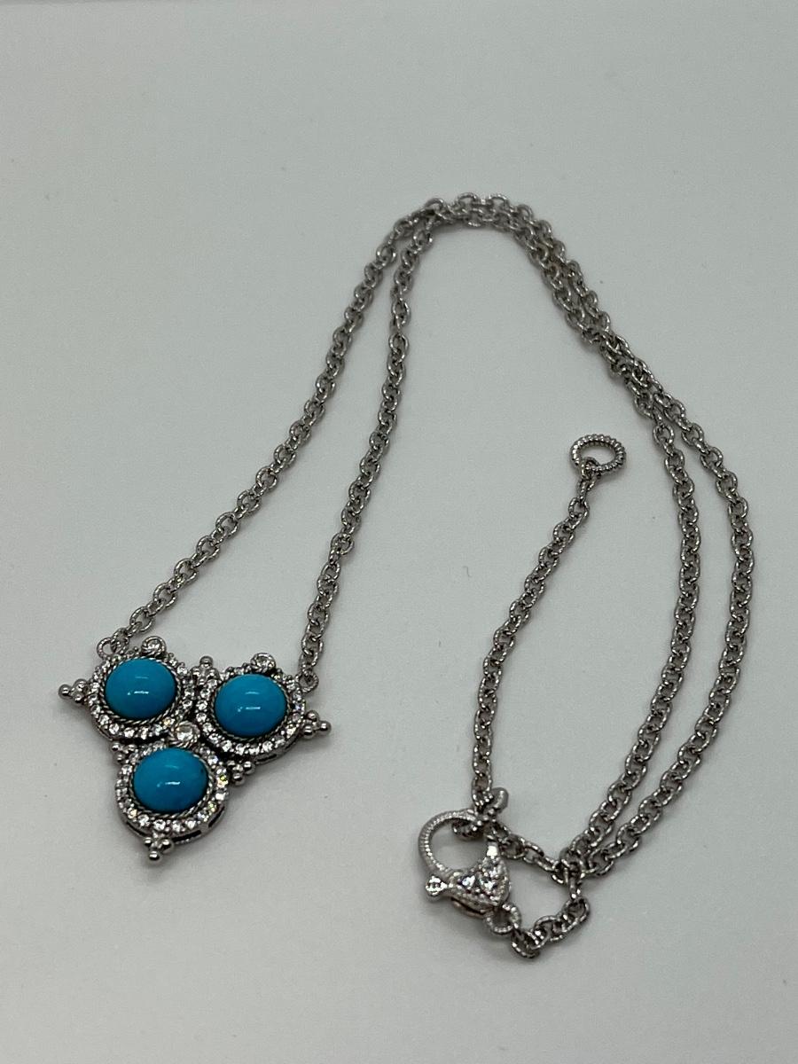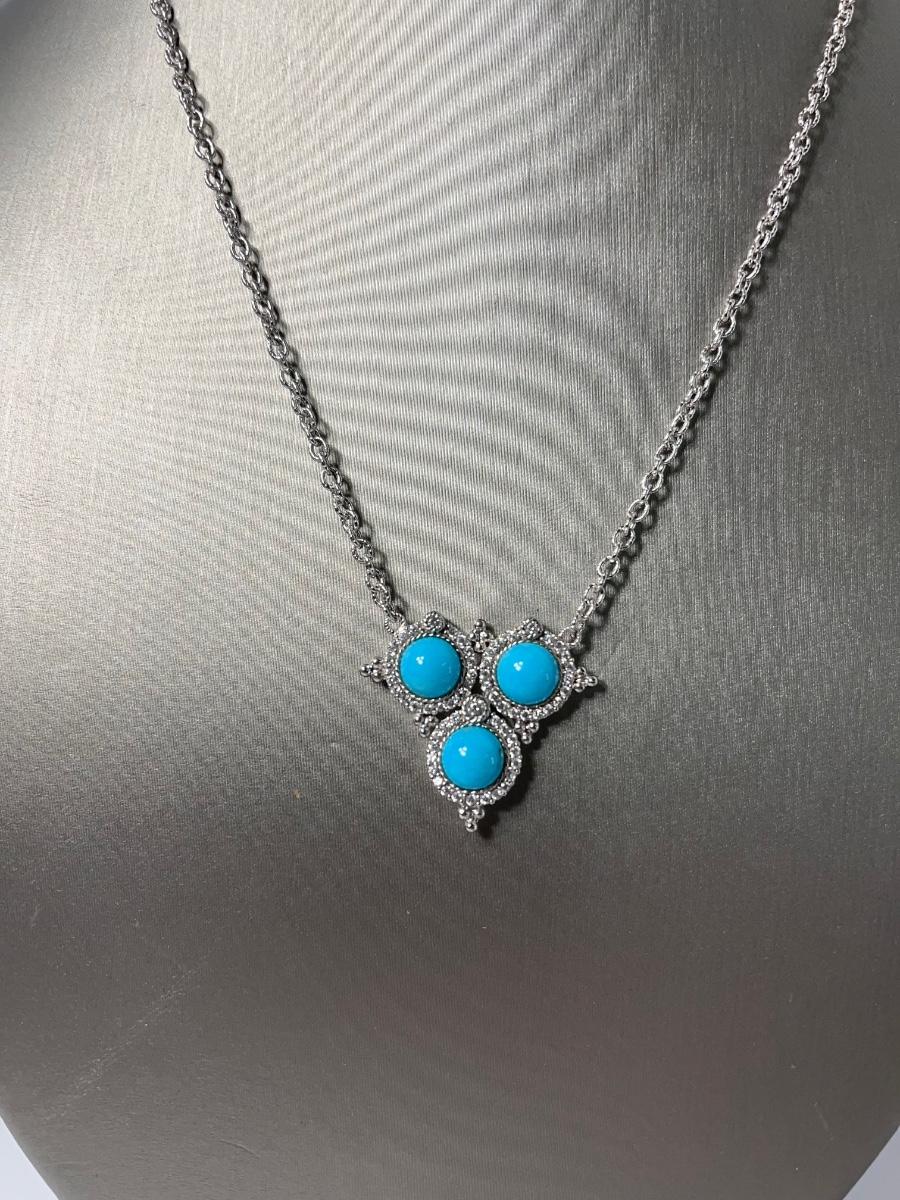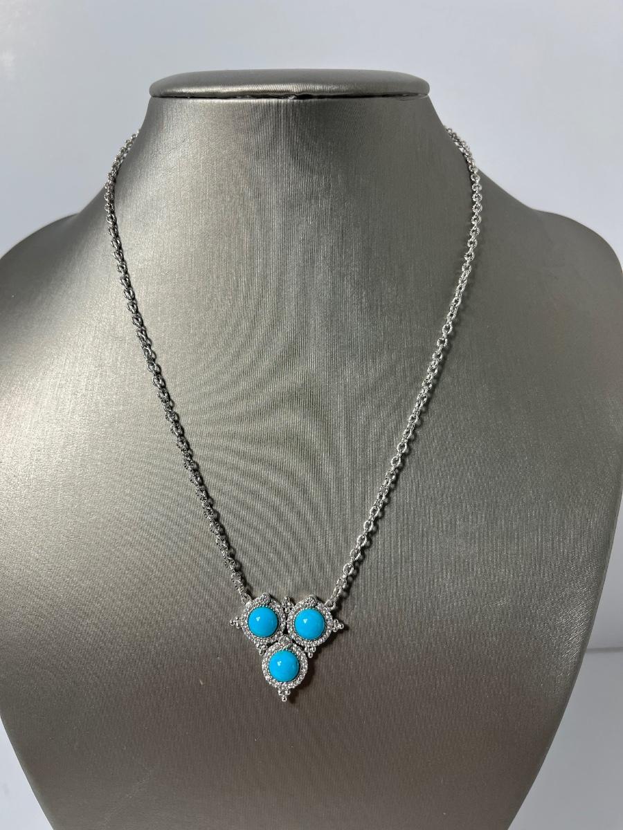 LOTJ126: New in box Judith Ripka Sterling Turquoise & Diamonique Necklace 16" w/2" extender