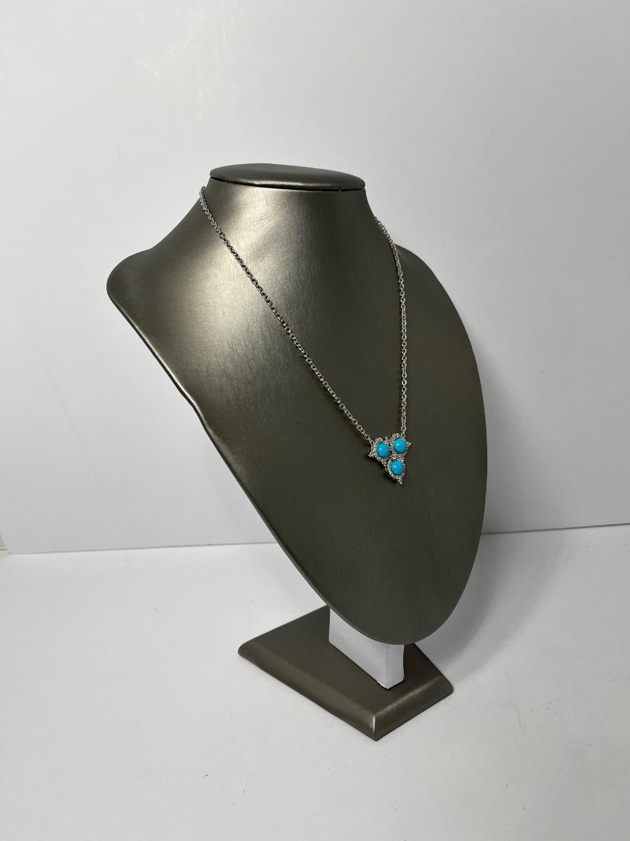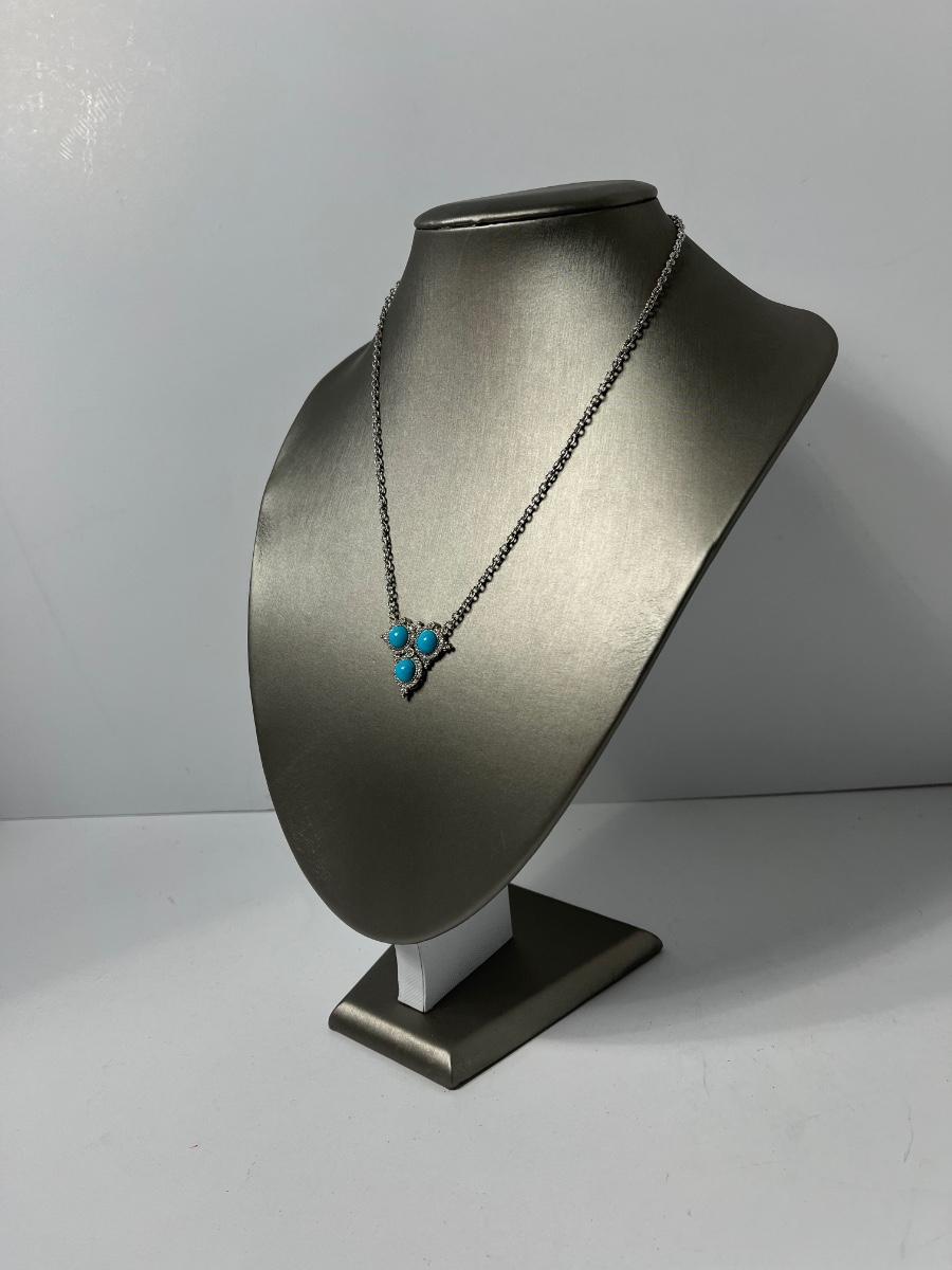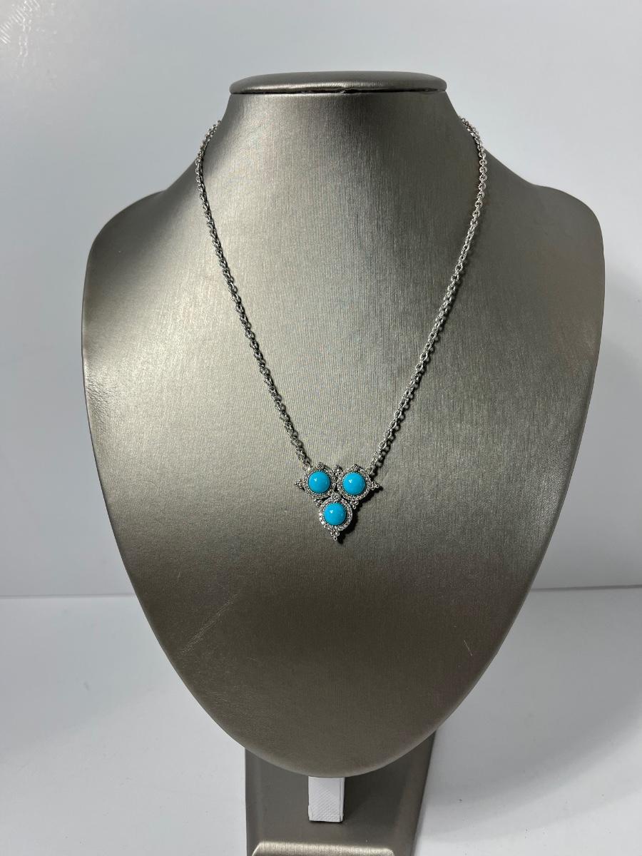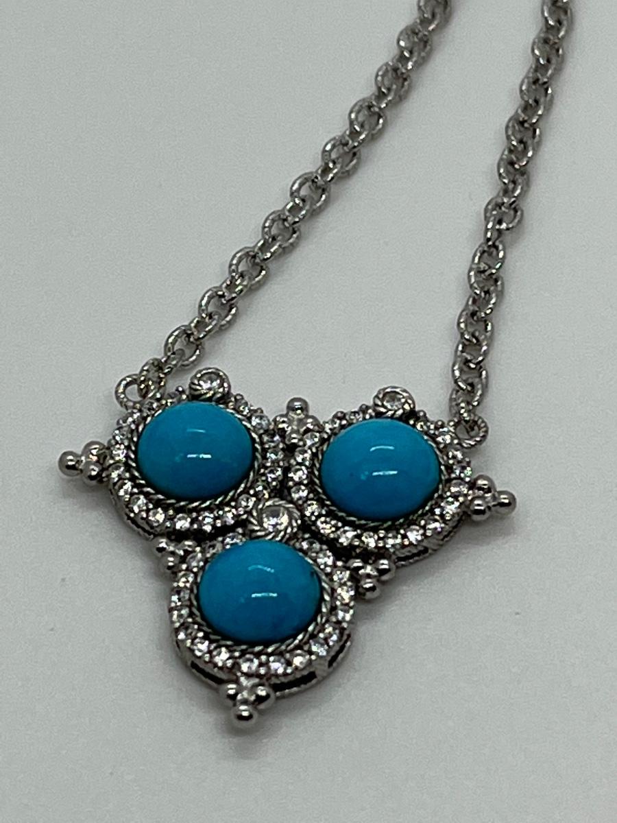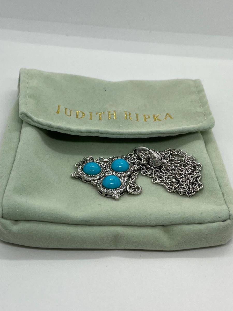 LOTJ126: New in box Judith Ripka Sterling Turquoise & Diamonique Necklace 16" w/2" extender