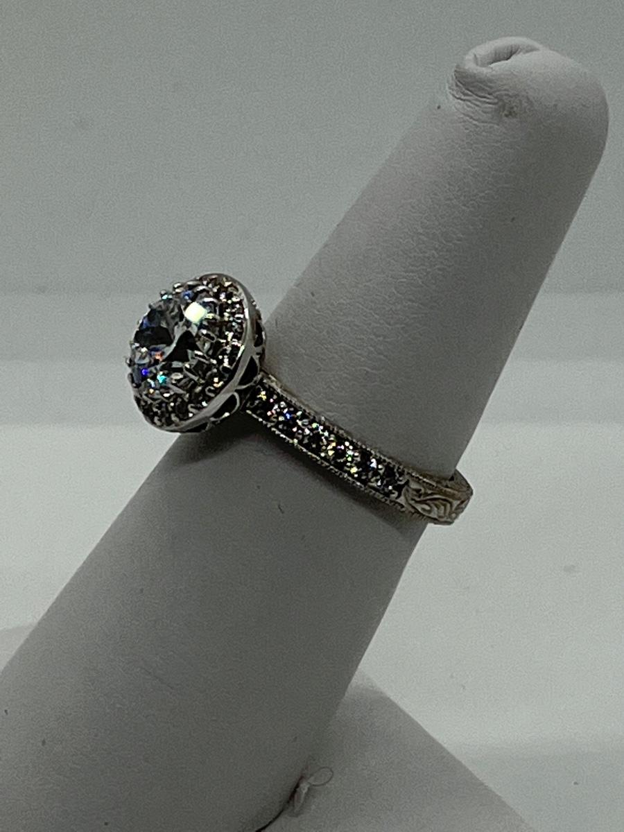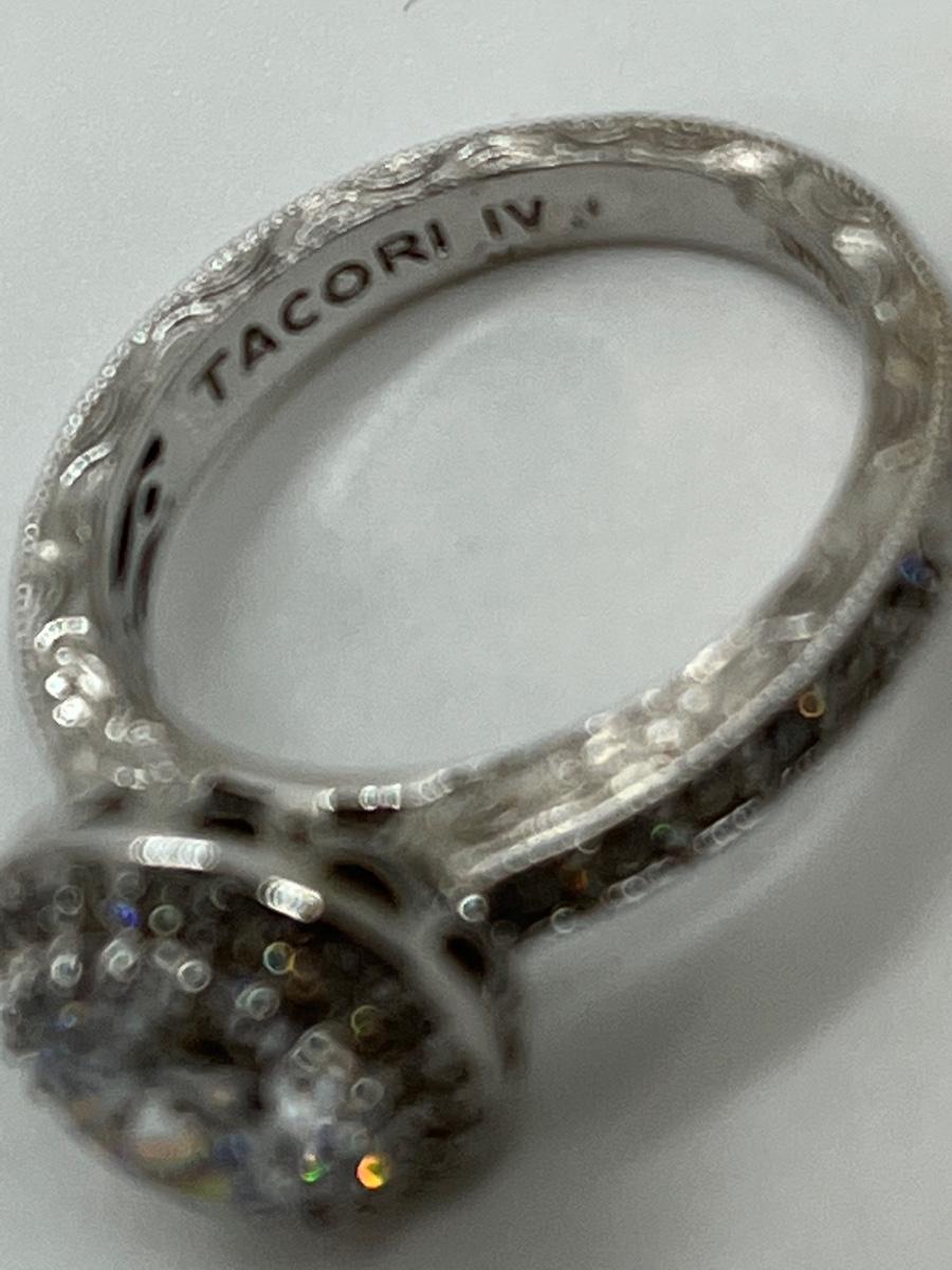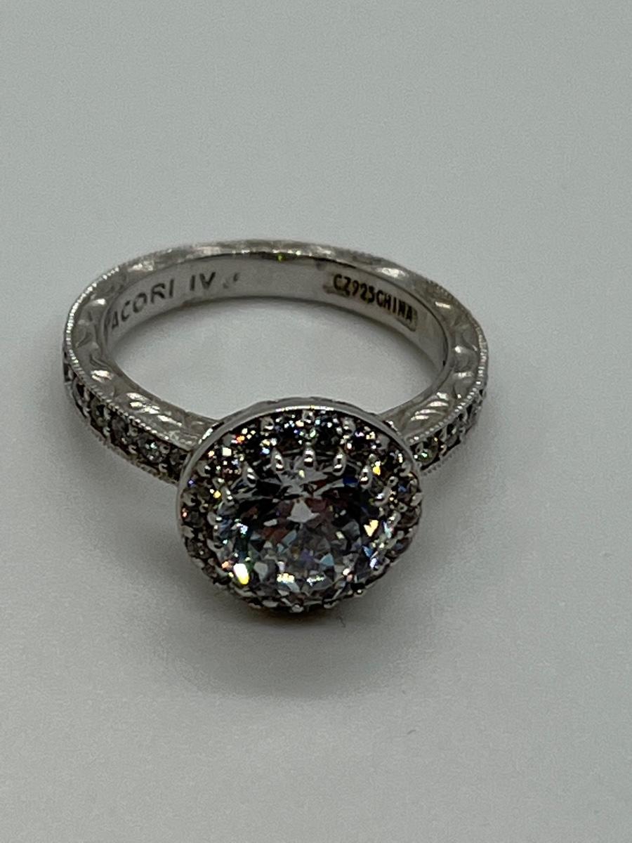 LOTJ127: New in box Tacori IV Diamonique Sterling Epiphany 2.50 ct tw Halo Bloom Cut Ring Sz. 6