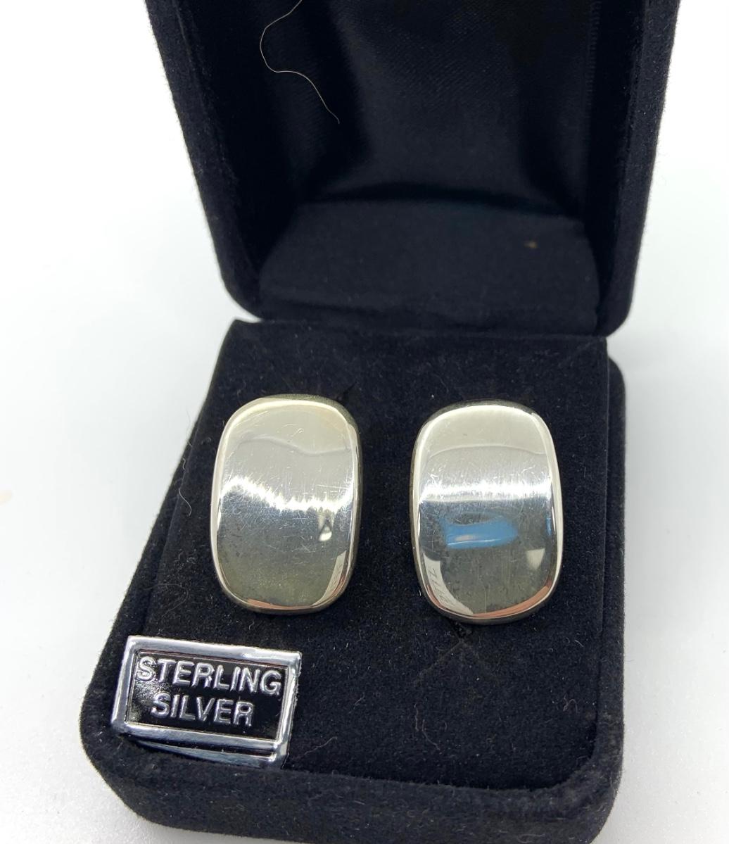 LOTJ131: New in box Sterling Silver Sculpted Rectangular Clip-on Earrings