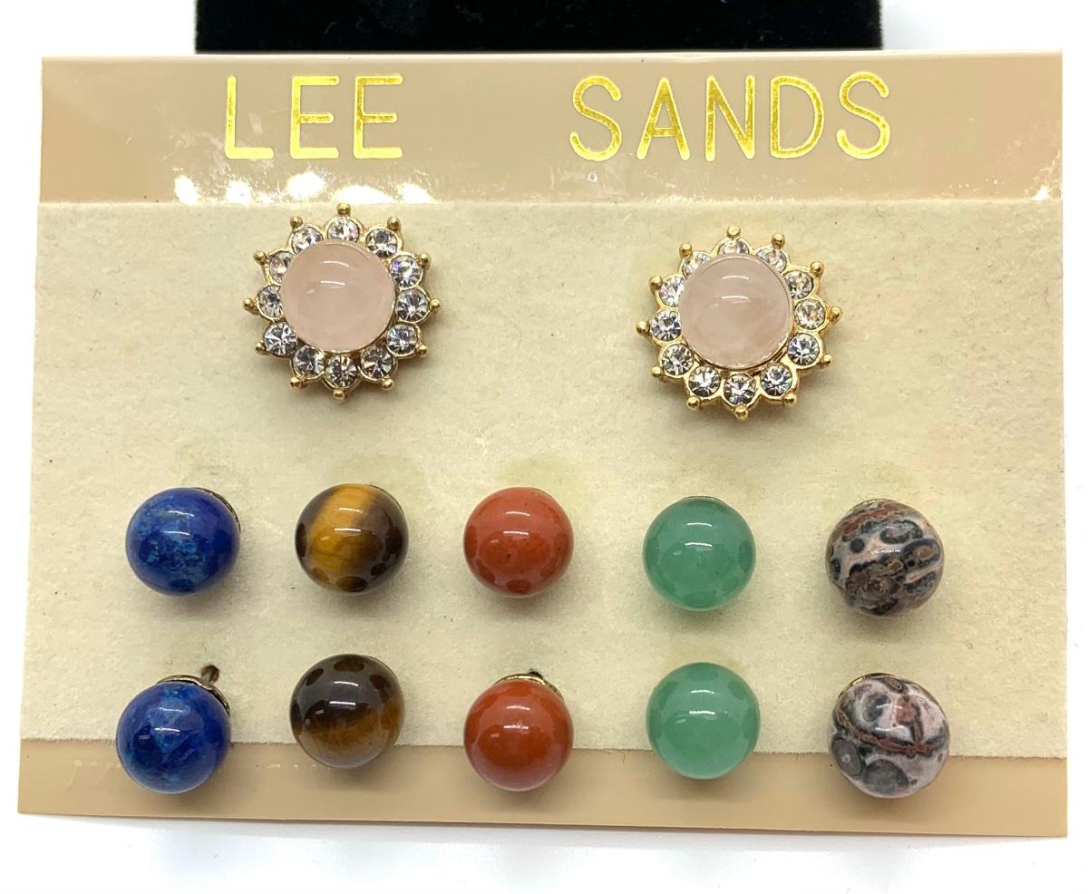 LOTJ133: New in box Lee Sands Changeable Genuine Gemstone Bead Pierced Earrings Set