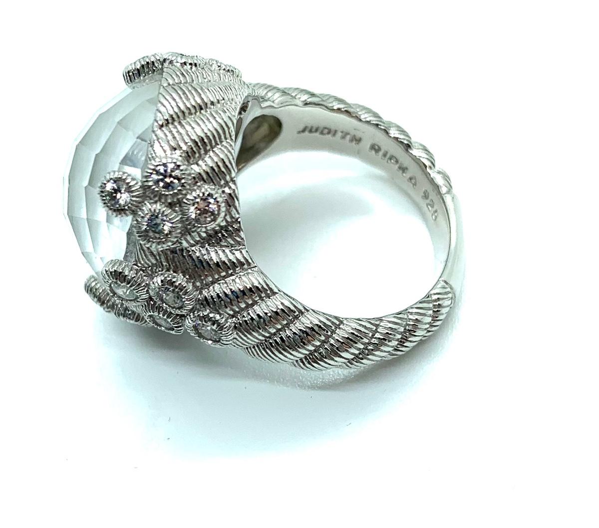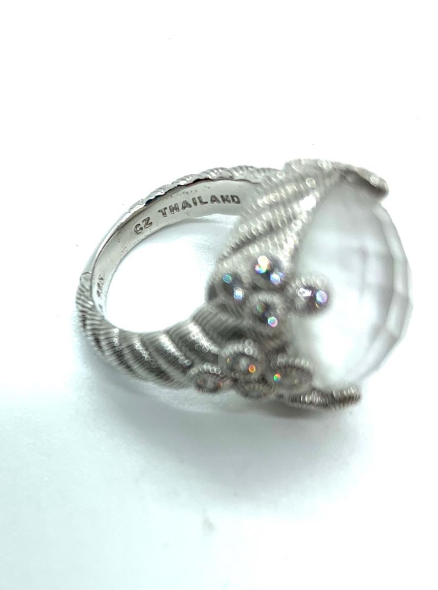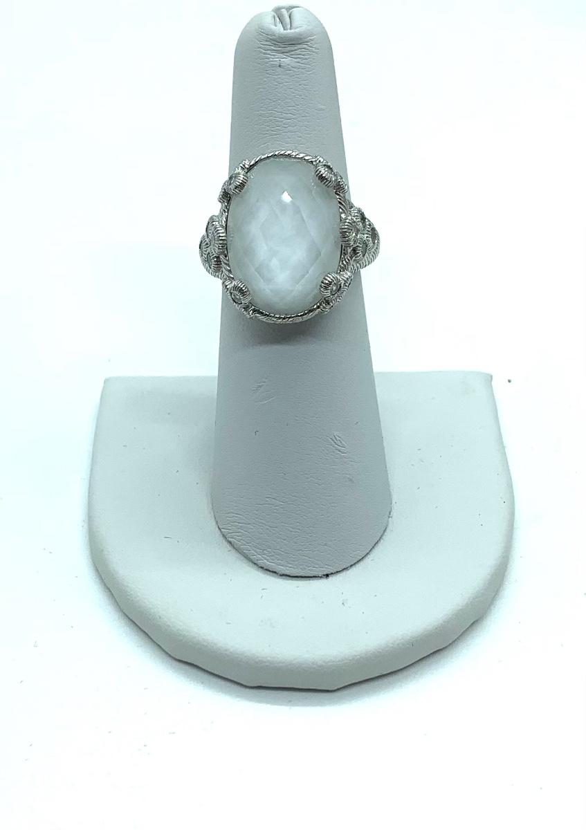 LOTJ138: New in box Judith Ripka Sterling Diamonique and White Agate Doublet Ring sz. 6