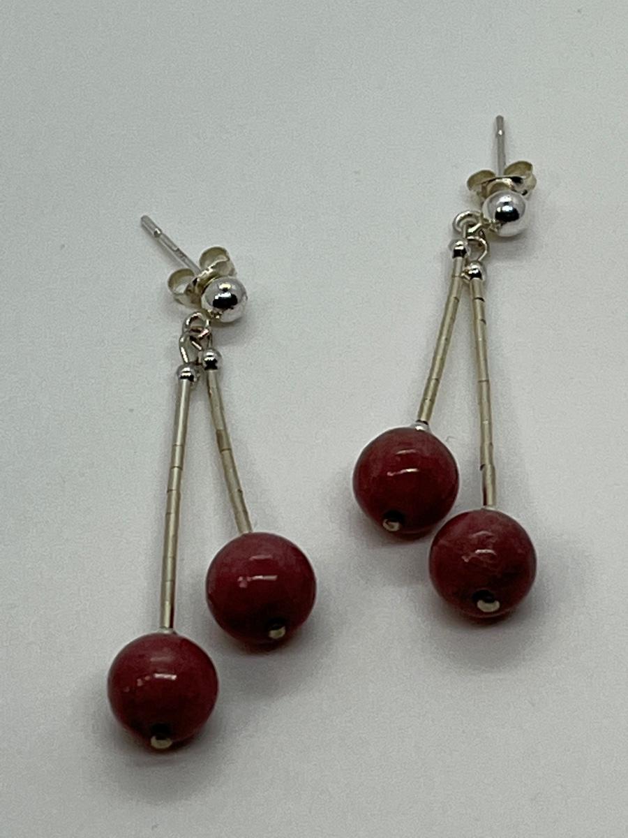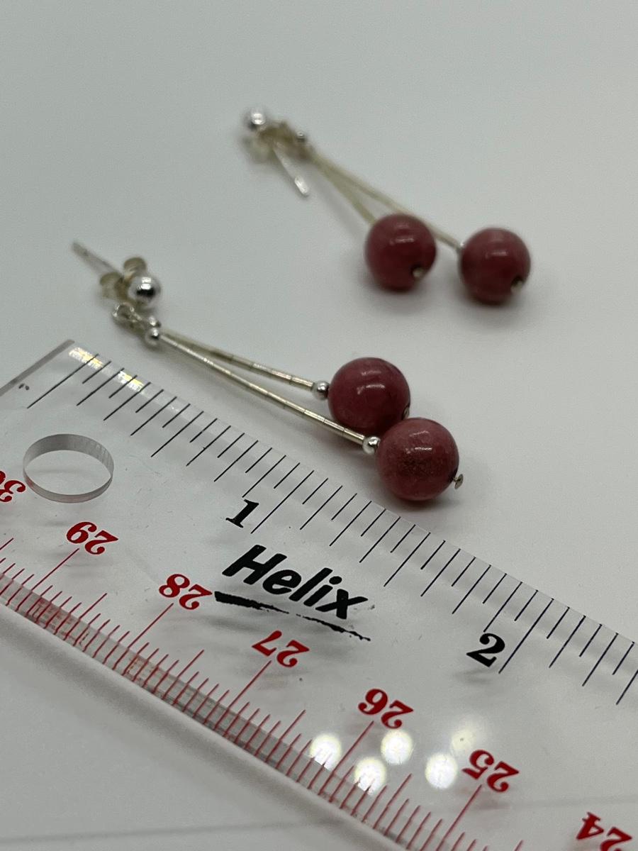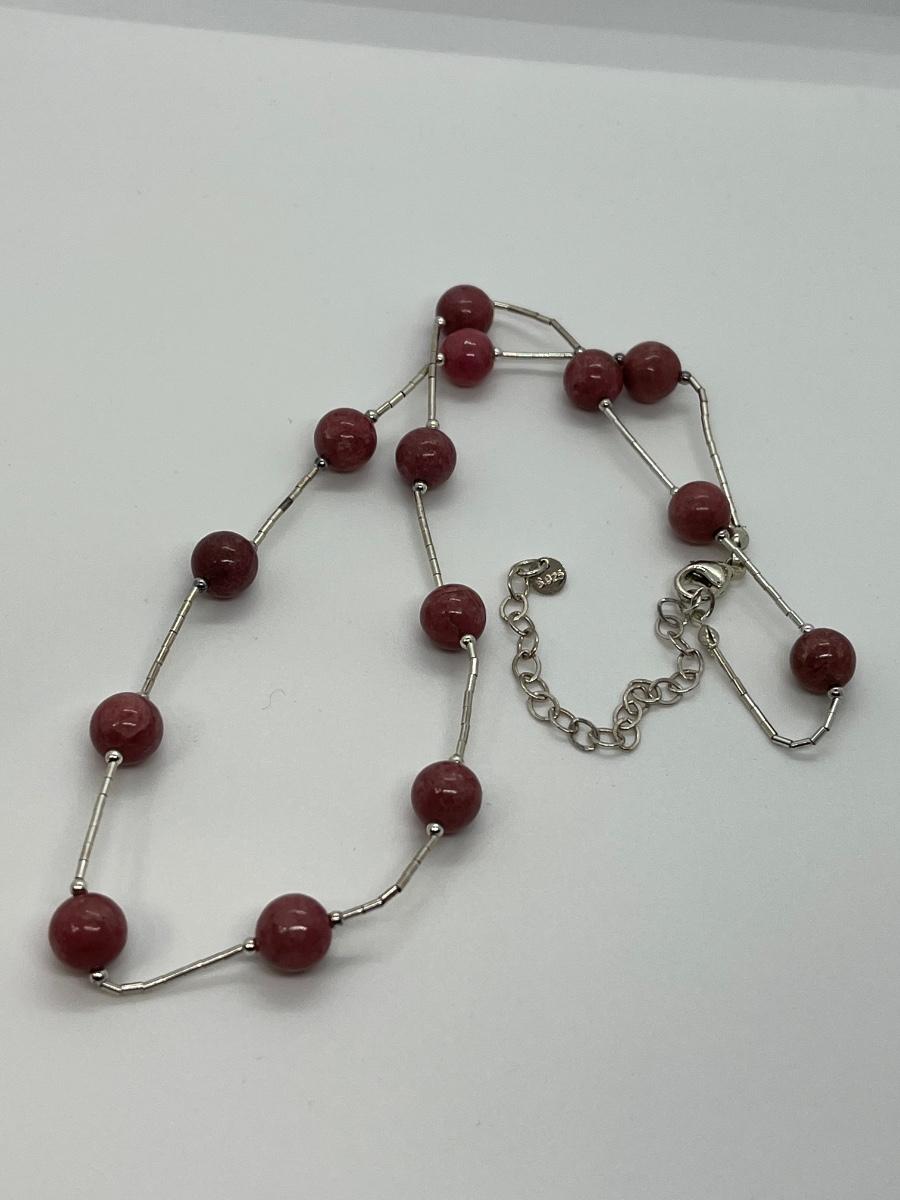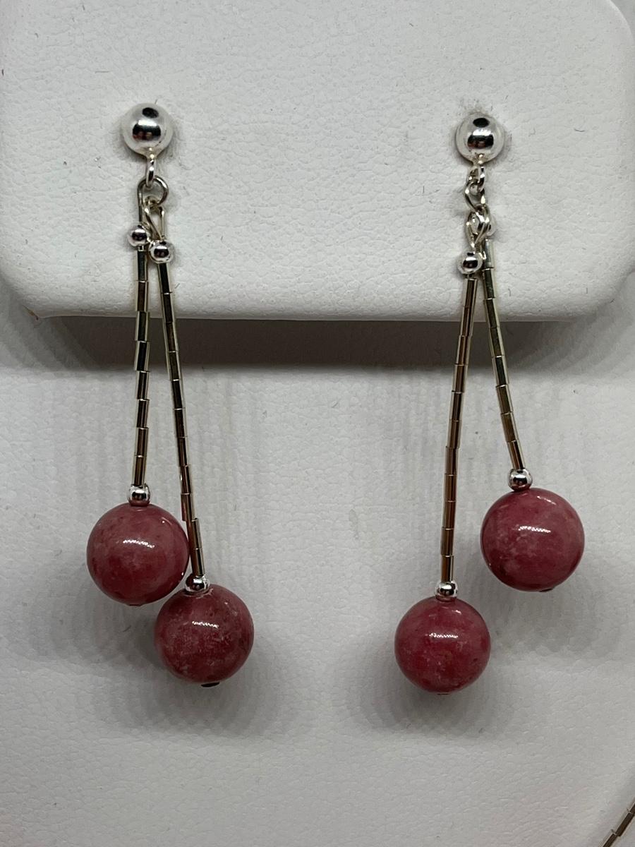 LOTJ143: New in box Southwestern Liquid silver and Rhodonite Gem Sterling Necklace(17"L w/3" extender) and Matching Pierced Earrings Set